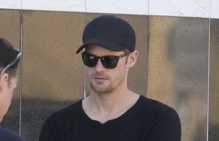 Sænski leikarinn Alexander Skarsgård var glaður í bragði er hann rölti um Hollywood á föstudaginn og leitaði sér að nýju húsi. Þessi 36 ára hjartaknúsari, sem er hvað þekktastur úr sjónvarpsþáttaseríunni True Blood, keypti hús í Hollywood á síðasta ári. Það kostaði hann 1,85 milljónir dollara, um 235 milljónir króna, en nú vill hann greinilega bæta öðru við í safnið.Nóg að gera.Það er allt á uppleið hjá Alexander því það var tilkynnt nýlega að umboðsskrifstofa hans Principal Entertainment hafi sameinast umboðsskrifstofunni The Gotham Group. Það þýðir bara meiri umsvif hjá þessum geðþekka leikara.Tók af sér sólgleraugun í smá stund.Þú gætir unnið - vertu með okkur á Facebook.