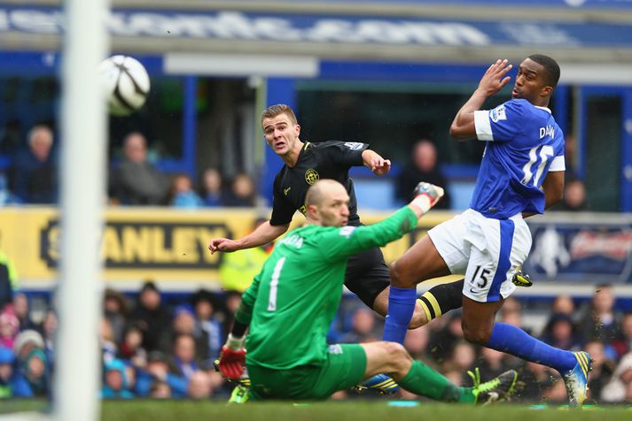Wigan skellti Everton og fer á Wembley 9. mars 2013 12:15 Mynd/Nordic Photos/Getty Wigan er komið í undanúrslit ensku bikarkeppninnar í fótbolta eftir öruggan 3-0 sigur á Everton á Goodison Park í Liverpool. Wigan skoraði öll mörk leiksins á þriggja mínútna kafla í fyrri hálfleik. Wigan hefur ekki átt góðu gengi að fagna í ensku úrvalseildinni á tímabilinu og er aðeins markamun frá því að vera í fallsæti en Everton er í sjötta sæti á góðu róli. Það skiptir ekki máli þegar í bikarkeppnina er komið og Wigan sýndi hvað í liðinu býr og gerði út um leikinn á þriggja mínútna kafla í fyrri hálfleik. Maynor Figueroa skoraði fyrstur á 30. mínútu. Mínútu síðar bætti Callum McManaman við marki og á 33. mínútu gerði Jordi Gómez út um leikinn þó enn ætti eftir að spila í tæpa klukkustund. Fleiri mörk voru ekki skoruð og Wigan því fyrsta liðið til að tryggja sér ferð á Wembley þar sem undanúrslitin verða leikin. Enski boltinn Mest lesið Hneysklaður á ósönnum orðrómum Fótbolti Þreytt á umræðu um líkamann sinn: „Á ekki að tjá sig um það“ Sport Ekkja Jota þakklát: „Hefur meiri þýðingu en orð geta lýst“ Enski boltinn Yfirgefur Keflavík vegna komu Martins Körfubolti Enn kvarnast úr liði Blika Íslenski boltinn Ótrúleg tölfræði Jokic Körfubolti Dagskráin í dag: Pílukast og Íslandsmeistarar Sport Hafnaði 34 milljónum: „Vil ekki styðja kerfi sem býr til fíkn og eyðileggur líf“ Sport Segir starfið í húfi hjá Alfreð Handbolti Jöfnuðu 128 ára gamalt met Enski boltinn Fleiri fréttir Skynjar stress hjá Arsenal Sjáðu frábært samspil Leeds og Gray tryggja Spurs sigurinn Ekkja Jota þakklát: „Hefur meiri þýðingu en orð geta lýst“ Jöfnuðu 128 ára gamalt met Gray hetja Tottenham Calvert-Lewin skoraði í sjötta leiknum í röð Andy Carroll mætir fyrir dóm eftir að hafa verið handtekinn Villa kvartar til Chelsea vegna flösku sem flaug á bekkinn Sjáðu magnaða vörslu Raya: „Þetta var stórkostlegt“ Sjáðu fyrsta mark Wirtz, laglega sjálfsmarkið og Watkins stúta Chelsea Liverpool-skotmarkið ekki á förum í janúar Aldrei spilað þarna en sagði strax já „Viss um að ég myndi skora einn daginn“ Watkins hélt ótrúlegri sigurgöngu Villa áfram Schade og Jiménez sendu Brentford og Fulham í efri hlutann Arsenal aftur á toppinn Fyrsta mark Wirtz í þriðja sigrinum í röð Cherki aðalmaðurinn í sigri City Úlfarnir heiðruðu minningu Jota Andri Lucas frá í mánuð Sjáðu dönsku þrumuna sem færði United-mönnum öll þrjú stigin Segir að Arsenal stefni á sögulega fernu á þessu tímabili Amorim endaði viðtalið á gamansömum nótum „Við eigum heima í Evrópu“ Daninn skaut Man. United upp fyrir Liverpool Amorim segir strákinn í frystinum vera framtíðin hjá Man. United Martinez með fyrirliðabandið og báðir Fletcher-bræðurnir á bekknum Havertz gæti snúið aftur á næstu dögum Alfons og Willum sáu tvö rauð spjöld fara á loft Synir Diogo Jota leiða leikmenn út á Anfield Sjá meira