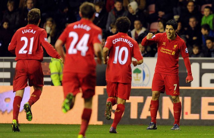 Flottustu mörkin og bestu tilþrifin frá helginni | Allt inn á Vísi Óskar Ófeigur Jónsson skrifar 5. mars 2013 09:45 Mynd/Nordic Photos/Getty Þeir sem misstu af enska boltanum um helgina eða vilja bara horfa á það helst aftur þá er hægt að fá flott yfirlit inn á Vísi. Eins og vanalega er nefnilega hægt að finna margskonar samantektir eftir hverja umferð ensku úrvalsdeildarinnar inn á Sjónvarpsvefnum á Vísi. Tottenham komst upp í þriðja sætið með sigri á nágrönnunum í Arsenal, Luis Suarez er orðinn markahæstur í deildinni eftir enn eina þrennuna og Manchester-liðin unnu bæði sína leiki og því breyttist ekki forskot United á toppnum Inn á Sjónvarpsvefnum á Vísi er nú hægt að sjá val á fimm flottustu mörkum helgarinnar sem og val á besta leikmanninum, liði umferðarinnar, flottustu markvörslunum og atviki helgarinnar. Þar má einnig finna skemmtilegt atvik frá fyrri tímum auk þess sem hægt er að fá stutt yfirlit yfir það helsta sem gerðist í þessari umferð. Hér fyrir neðan eru tenglar á öll þessi myndbönd.Fallegustu mörkinBesti leikmaður helgarinnarLið umferðarinnarFlottustu markvörslurnarAtvik helgarinnarSkemmtilegt sögubrotUmferðin á fimm mínútum Enski boltinn Mest lesið Yfirgefur Keflavík vegna komu Martins Körfubolti Ótrúleg tölfræði Jokic Körfubolti Enn kvarnast úr liði Blika Íslenski boltinn Hafnaði 34 milljónum: „Vil ekki styðja kerfi sem býr til fíkn og eyðileggur líf“ Sport Segir starfið í húfi hjá Alfreð Handbolti „Ég mun ekki keppa við Rússa á meðan stríð er í gangi“ Sport Jafnt í stórleiknum Fótbolti Gray hetja Tottenham Enski boltinn Jöfnuðu 128 ára gamalt met Enski boltinn Spennutryllir eftir tvö burst Sport Fleiri fréttir Jöfnuðu 128 ára gamalt met Gray hetja Tottenham Calvert-Lewin skoraði í sjötta leiknum í röð Andy Carroll mætir fyrir dóm eftir að hafa verið handtekinn Villa kvartar til Chelsea vegna flösku sem flaug á bekkinn Sjáðu magnaða vörslu Raya: „Þetta var stórkostlegt“ Sjáðu fyrsta mark Wirtz, laglega sjálfsmarkið og Watkins stúta Chelsea Liverpool-skotmarkið ekki á förum í janúar Aldrei spilað þarna en sagði strax já „Viss um að ég myndi skora einn daginn“ Watkins hélt ótrúlegri sigurgöngu Villa áfram Schade og Jiménez sendu Brentford og Fulham í efri hlutann Arsenal aftur á toppinn Fyrsta mark Wirtz í þriðja sigrinum í röð Cherki aðalmaðurinn í sigri City Úlfarnir heiðruðu minningu Jota Andri Lucas frá í mánuð Sjáðu dönsku þrumuna sem færði United-mönnum öll þrjú stigin Segir að Arsenal stefni á sögulega fernu á þessu tímabili Amorim endaði viðtalið á gamansömum nótum „Við eigum heima í Evrópu“ Daninn skaut Man. United upp fyrir Liverpool Amorim segir strákinn í frystinum vera framtíðin hjá Man. United Martinez með fyrirliðabandið og báðir Fletcher-bræðurnir á bekknum Havertz gæti snúið aftur á næstu dögum Alfons og Willum sáu tvö rauð spjöld fara á loft Synir Diogo Jota leiða leikmenn út á Anfield Cunha vill skemmta og Howe treystir leikmönnum United horfir til Þýskalands eftir höfnun Semenyo Haaland stóðst vigtun eftir jólin Sjá meira