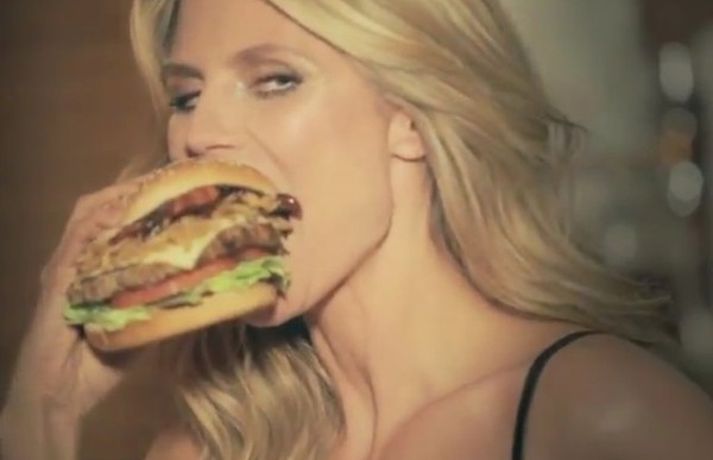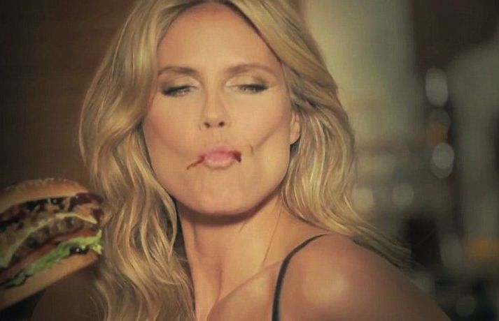 Bandaríska hamborgarastaðakeðjan Carl's Jr. er þekkt fyrir að hafa fallegar leikkonur og fyrirsætur í auglýsingum sínum. Nýjasta andlit keðjunnar er ofurfyrirsætan Heidi Klum sem fer á kostum í auglýsingu fyrir borgarana. Heidi fetar þannig í fótspor kvenna eins og Padma Lakshmi, Kim Kardashian, Audrina Patridge og Kate Upton.Heit með hamborgara.Heidi auglýsir borgara sem hefur hlotið nafnið Jim Beam Bourbon og er óneitanlega afar kynþokkafull með hamborgara í skoltinum.Heidi segist elska hamborgara og franskar.Fyrirmynd auglýsingarinnar er kvikmyndin The Graduate með Dustin Hoffman í aðalhlutverki og bregður Heidi sér í hlutverk Mrs. Robinson sem dregur sér yngri mann á tálar.Heidi með kærasta sínum, Martin Kristen.Þú gætir unnið - vertu með okkur á Facebook.