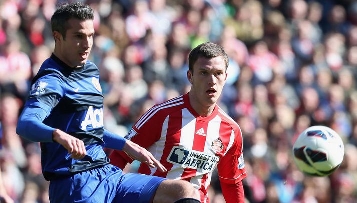 United með skyldusigur gegn Sunderland Stefán Árni Pálsson skrifar 30. mars 2013 00:01 Nordic Photos / Getty Images Manchester United vann hálfgerðan skyldusigur, 1-0, á Sunderland í ensku úrvalsdeildinni í knattspyrnu í dag en eina mark leiksins var sjálfsmark Titus Bramble á 27. mínútu. Manchester United var með öll völd á vellinum alveg frá fyrstu mínútu en voru samt sem áður í vandræðum með að skapa sér hættuleg marktækifæri. Þegar tæplega hálftími var liðin af leiknum fékk Robin van Persie gríðarlega langan tíma með boltann inn í vítateig Sunderland sem endaði með skoti sem hrökk af Bramble og í netið. Staðan var því 1-0 fyrir United í hálfleik. Fleiri mörk voru ekki skoruð í leiknum og niðurstaðan því sigur Manchester United. Liðið styrkti því stöðu sína á toppi deildarinnar og hefur nú 18 stiga forskot á granna sína í Manchester City sem er í öðru sæti. Manchester City getur samt sem áður minnkað forskot United niður í 15 stig þegar liðið mætir Newcastle síðar í dag. Sunderland er í miklum vandræðum í deildinni en liðið er í 16. sæti með 31 stig. Enski boltinn Mest lesið Býst núna við því versta frá áhorfendum Sport Gleymdi Íslendingurinn fékk loks að spila: „Ég er ekki vitlaus“ Fótbolti Fótboltaþjálfari og þrjú börn hans létust í jólafríinu Fótbolti Klúðraði gullgreininni sinni: „Ég er enn í áfalli“ Sport Jokic lá þjáður eftir og tímabilið í hættu Körfubolti „Enginn vildi að ég myndi vinna“ Sport „Ég hélt ég myndi deyja“ Enski boltinn „Þetta er skrýtið fyrir alla“ Sport Arnar vill læra af mistökum gullkynslóðarinnar og gera landsliðið sjálfbærara Fótbolti Nottingham Forest vill fá að heyra samtöl dómaranna Enski boltinn Fleiri fréttir Þjálfari Liverpool í föstum leikatriðum látinn fara „Fróðari menn segja að maður eigi ekki að láta tilfinningarnar ráða“ „Ég hélt ég myndi deyja“ Nottingham Forest vill fá að heyra samtöl dómaranna Vildi ekki láta undan pressu frá fjölmiðlamönnum Man Utd samdi við fyrrum liðsfélaga Glódísar Perlu hjá Bayern Gefur í skyn að Arsenal opni veskið í janúar „Einn mesti hugsuðurinn í boltanum“ Semenyo vill að allt verði klárt fyrir nýársdag „Knattspyrnustjórar eru ekki töframenn“ Segja að Wirtz græði á fjarveru Salah: „Sé hann fljúga í gang“ Skynjar stress hjá Arsenal Sjáðu frábært samspil Leeds og Gray tryggja Spurs sigurinn Ekkja Jota þakklát: „Hefur meiri þýðingu en orð geta lýst“ Jöfnuðu 128 ára gamalt met Gray hetja Tottenham Calvert-Lewin skoraði í sjötta leiknum í röð Andy Carroll mætir fyrir dóm eftir að hafa verið handtekinn Villa kvartar til Chelsea vegna flösku sem flaug á bekkinn Sjáðu magnaða vörslu Raya: „Þetta var stórkostlegt“ Sjáðu fyrsta mark Wirtz, laglega sjálfsmarkið og Watkins stúta Chelsea Liverpool-skotmarkið ekki á förum í janúar Aldrei spilað þarna en sagði strax já „Viss um að ég myndi skora einn daginn“ Watkins hélt ótrúlegri sigurgöngu Villa áfram Schade og Jiménez sendu Brentford og Fulham í efri hlutann Arsenal aftur á toppinn Fyrsta mark Wirtz í þriðja sigrinum í röð Cherki aðalmaðurinn í sigri City Úlfarnir heiðruðu minningu Jota Sjá meira