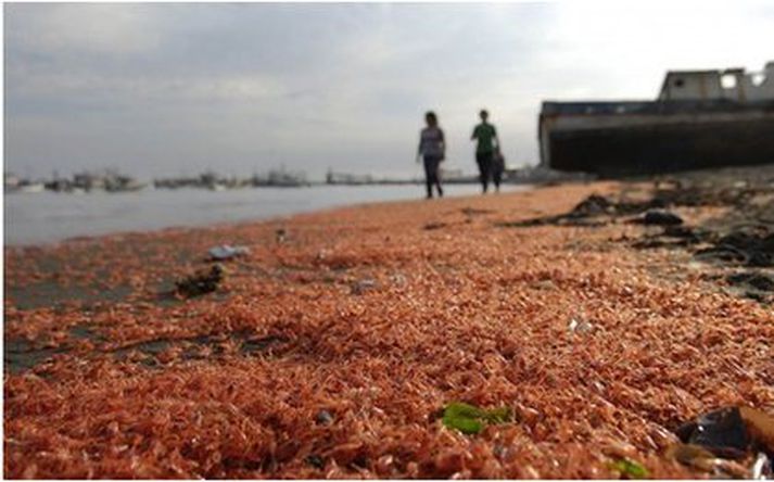 Vísindamenn í Chile rannsaka hvernig á því stóð að fleiri tonn af dauðum rækjum og töluverður fjöldi af dauðum kröbbum rak á land á strönd við Coronel flóann sem liggur í rúmlega 500 kílómetra fjarlægð frá höfuðborginni Santiago. Sjómenn á þessum slóðum telja að kælivatn frá nærliggjandi orkuverum hafi drepið rækjurnar. Aðrir telja að þetta séu afleiðingar af hlýnandi veðurfari á þessum slóðum. Í frétt um málið á vefsíðu BBC segir að sjómennirnir hafi miklar áhyggjur af þessum rækjudauða enda hafi þeir lifibrauð sitt af rækjuveiðum.