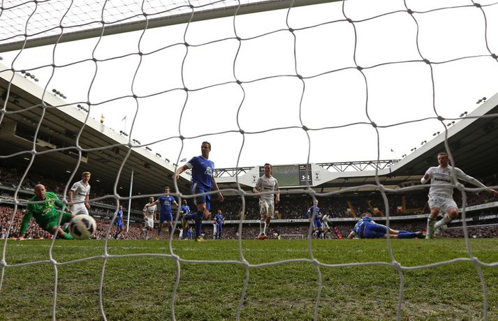 Gylfi tryggði Tottenham jafntefli annan leikinn í röð Óskar Ófeigur Jónsson skrifar 7. apríl 2013 12:30 Mynd/Nordic Photos/Getty Gylfi Þór Sigurðsson tryggði Tottenham jafntefli í öðrum leiknum í röð þegar hann skoraði þremur mínútum fyrir leikslok í 2-2 jafntefli á heimavelli á móti Everton í ensku úrvalsdeildinni í fótbolta. Gylfi skoraði markið á 87. mínútu þegar hann fylgdi á eftir skoti Emmanuel Adebayor sem fór í stöngina og fyrir markið. Gylfi var á réttum stað í markteignum og skoraði örugglega. Gylfi tryggði Tottenham 2-2 jafntefli á móti svissneska liðinu Basel í Evrópudeildinni á fimmtudagskvöldið. Hann hefur nú skorað sex mörk á tímabilinu þar af tvö þeirra í deildinni. Tottenham fékk algjöra draumabyrjun í leiknum. Emmanuel Adebayor kom nefnilega Tottenham í 1-0 eftir 34 sekúndur en Everton kom til baka og komst yfir áður en Gylfi tryggði Tottenham eitt stig. Emmanuel Adebayor skoraði í fyrstu sókn leiksins þegar hann afgreiddi fyrirgjöf Jan Vertonghen frá vinstri kanti. Phil Jagielka jafnaði metin á 15. mínútu þegar hann skallaði inn hornspyrnu Leighton Baines. Kevin Mirallas kom Everton yfir á 53. mínútu eftir laglega einleik í gegnum vörn Tottenham. Frábært mark sem leit lengi út fyrir að ætlaði að verða sigurmarkið í leiknum eða þar til að Gylfi reddaði sínum mönnum í lokin. Enski boltinn Mest lesið Grafalvarleg staða: „Þurfum að fara í sársaukafullar aðgerðir“ Handbolti Ógeðslega erfitt og ógeðslega vont en brosir oft í viku á eftir Sport Fram þvertekur fyrir metnaðarleysi og leitar að nýjum þjálfurum Íslenski boltinn „Nú er nóg komið“ Fótbolti Nefna greinar Íslandsmótsins í CrossFit í höfuðið á íslenskum íþróttakonum Sport Skortir Liverpool breidd þrátt fyrir gríðarleg fjárútlát síðasta sumar? Enski boltinn Arnór Snær snýr aftur heim Handbolti Besta handboltadeild heims missir aðalstyrktaraðila sinn Handbolti Gísli semur við Skagamenn Íslenski boltinn Félagið í greiðslustöðvun en borgaði öll laun degi fyrr Enski boltinn Fleiri fréttir Mikilvægt fyrir United að hamra járnið meðan það er heitt Félagið í greiðslustöðvun en borgaði öll laun degi fyrr Skortir Liverpool breidd þrátt fyrir gríðarleg fjárútlát síðasta sumar? Hetja Englands á EM sleit krossband Lofar frekari fjárfestingum Fantasýn: „Þessi vörn er eitthvað skrímsli“ Scholes hættir og setur einhverfan son sinn í fyrsta sætið Carrick í einkaviðtali: Sigurinn á Anfield stór stund fyrir Man. Utd Hefur spilað 16 mínútur og fengið tvö rauð spjöld Slot: Engin auka pressa við þetta tap Vísar slúðrinu til föðurhúsanna Palace neitar að sleppa takinu á Liverpool Arteta fyrstur stjóranna á fætur Litu á hann sem risaeðlu en sjáið hvað er í tísku núna Búið að finna leiðina til að pirra og vinna Liverpool Arteta óttast ekki að keppinautarnir steli undrabarninu frá honum Hákon Rafn hélt hreinu þegar Brentford flaug áfram Segir að Slot verði að taka tvo leikmenn út úr Liverpool-liðinu Enska úrvalsdeildin í jólaköttinn Segir sitt fyrrum lið í krísu Fylltu í eyðurnar: Vanmetnasti leikmaður deildarinnar? Einkaviðtal við Carrick: „Hálfgerð tískubylgja sem einkennir fótboltann í dag“ Besta liðið aðeins í sautjánda sæti í mörkum í opnum leik „Varnarleikurinn er bara stórslys“ Guardiola: Of snemmt til að hafa áhyggjur af Arsenal Hárið í hættu hjá United manninum Mark úr horni, klippa Eze og punghögg Haalands Aldrei meiri aldursmunur Matty Cash afgreiddi City Eitt mark dugði og Skytturnar enn á toppnum Sjá meira