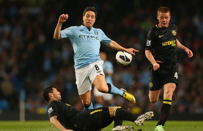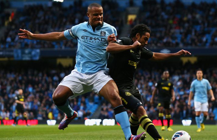 Tevez hetja City Eiríkur Stefán Ásgeirsson skrifar 17. apríl 2013 16:53 Mynd/Nordic Photos/Getty Carlos Tevez skoraði eina mark Manchester City sem vann 1-0 sigur á Wigan í ensku úrvalsdeildinni. City minnkaði þar með muninn á granna sína í Manchester United í þrettán stig auk þess að eiga leik til góða. City átti þó nokkuð erfitt uppdráttar í kvöld og má þakka markverðinum Joe Hart fyrir að hafa ekki lent undir þegar að Franco Di Santo komst í gott færi í fyrri hálfleik. Tevez komst svo framhjá Paul Scharner og Jordi Gomez á 83. mínútu og afgreiddi knöttinn í netið. Wigan er því enn þremur stigum frá öruggu sæti en liðið er í átjánda sæti með 31 stig. Enski boltinn Mest lesið „Feginn að þú lifðir krabbameinið af svo þú gætir séð skítaliðið þitt fara niður“ Handbolti Farin frá Braga eftir aðeins hálft ár Fótbolti Segir dómarana bara hafa verið að giska Enski boltinn „Mér var bara tjáð að þeir ætluðu að leita eitthvað annað“ Íslenski boltinn Réttlætti Zirkzee-skiptinguna: „Stundum sækirðu betur með færri framherja“ Enski boltinn Neyðarlegt jafntefli United gegn Úlfunum Enski boltinn Mest lesið í innlenda sportinu: Danskar bullur, oddaleikur á Króknum og miskátir hlauparar Sport Alls ekki síðasti leikur Semenyo Enski boltinn Alveg sama um úrvalsdeildina og ætlar í veiði eftir HM Sport Segir Ísland eiga tvo af tíu bestu í heimi Handbolti Fleiri fréttir Alls ekki síðasti leikur Semenyo Segir dómarana bara hafa verið að giska Sjáðu Arsenal rúlla yfir Villa og Úlfana ná í stig á Old Trafford Réttlætti Zirkzee-skiptinguna: „Stundum sækirðu betur með færri framherja“ Arsenal rústaði Villa og náði fimm stiga forskoti Neyðarlegt jafntefli United gegn Úlfunum Welbeck skoraði úr einu víti og brenndi af öðru Fékk á sig víti í mögulegum kveðjuleik „Þetta er rebbabragð sem ég vissi nú reyndar ekki að hann kynni“ Liðið sem gerir stólpagrín að xG Þjálfari Liverpool í föstum leikatriðum látinn fara „Fróðari menn segja að maður eigi ekki að láta tilfinningarnar ráða“ „Ég hélt ég myndi deyja“ Nottingham Forest vill fá að heyra samtöl dómaranna Vildi ekki láta undan pressu frá fjölmiðlamönnum Man Utd samdi við fyrrum liðsfélaga Glódísar Perlu hjá Bayern Gefur í skyn að Arsenal opni veskið í janúar „Einn mesti hugsuðurinn í boltanum“ Semenyo vill að allt verði klárt fyrir nýársdag „Knattspyrnustjórar eru ekki töframenn“ Segja að Wirtz græði á fjarveru Salah: „Sé hann fljúga í gang“ Skynjar stress hjá Arsenal Sjáðu frábært samspil Leeds og Gray tryggja Spurs sigurinn Ekkja Jota þakklát: „Hefur meiri þýðingu en orð geta lýst“ Jöfnuðu 128 ára gamalt met Gray hetja Tottenham Calvert-Lewin skoraði í sjötta leiknum í röð Andy Carroll mætir fyrir dóm eftir að hafa verið handtekinn Villa kvartar til Chelsea vegna flösku sem flaug á bekkinn Sjáðu magnaða vörslu Raya: „Þetta var stórkostlegt“ Sjá meira