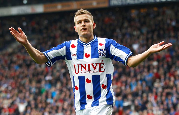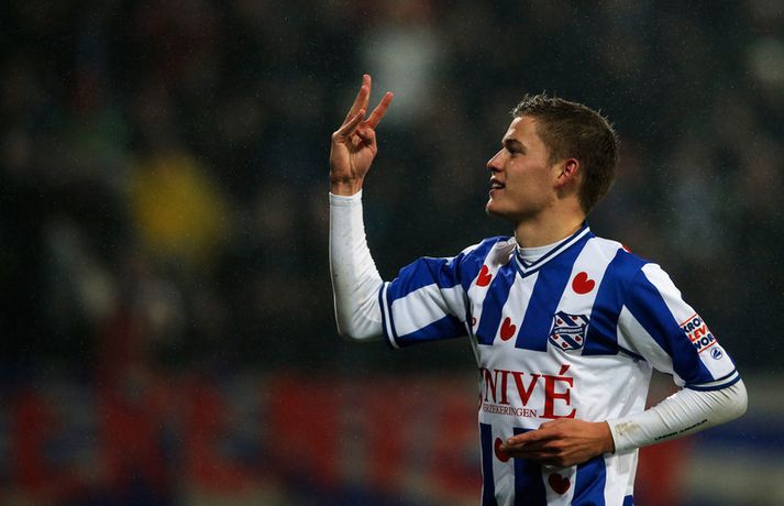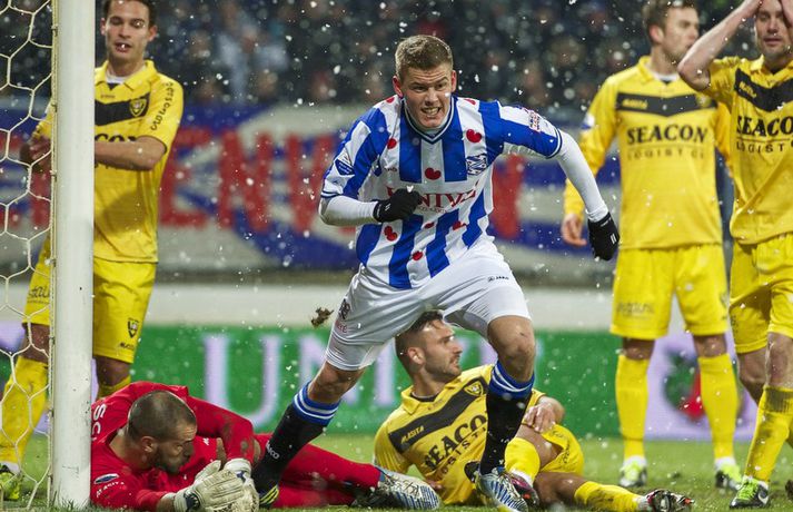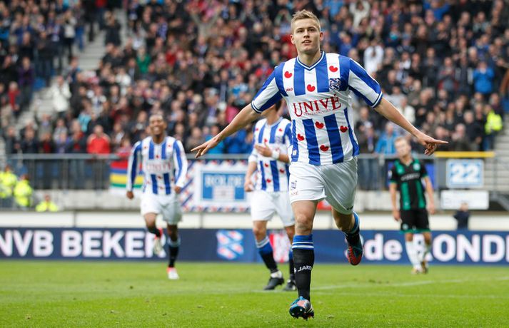 Alfreð Finnbogason er kominn með 23 mörk í hollensku deildinni og enn eru eftir fjórir leiki á tímabilinu. Alfreð viðurkennir samt í viðtali á heimasíðu Heerenveen að hann eigi ekki möguleika á því að verða markahæstur í deildinni í ár. „Nei, líklega ekki," svarar Alfreð Finnbogason aðspurður um möguleikanna á því að verða markakóngur. Wilfried Bony hjá Vitesse hefur skoraði 30 mörk og hefur því sjö marka forskot á Alfreð. „Það eru bara fjórir leikir eftir og það væri afar erfitt. Ég tel að hvorki ég né nokkur annar muni ná Bony. Ég er hvort sem er ekki að hugsa um Bony eða markakóngstitilinn. Ég einbeiti mér að því að spila vel og hjálpa mínu liði," sagði Alfreð. Alfreð átti ekki góðan leik á móti Willem II en skoraði mörkin í lokin sem færðu liðinu þrjú mikilvæg stig. „Ég reyni bara að halda einbeitingu í næsta færi. Stundum spila ég vel en næ ekki að skora. Það er mikilvægasta er að ná að skora en auðvitað væri best að spila bæði vel og skora," sagði Alfreð.