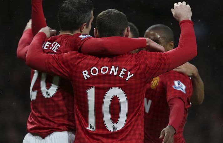 Ætla sér að taka stigametið af Chelsea Óskar Ófeigur Jónsson skrifar 16. apríl 2013 07:45 Wayne Rooney og Robin van Persie. Mynd/Nordic Photos/Getty Wayne Rooney og Robin van Persie framherjar Manchester United ætla ekki að slaka neitt á þótt að félagið sé nánast búið að tryggja sér Englandsmeistaratitilinn og sé úr leik í öllum öðrum keppnum. Stigamet Chelsea getur enn fallið og United-liðið hefur sett stefnuna á það. Manchester United vann 2-0 sigur á Stoke City um helgina og þarf nú sjö stig úr síðustu sex leikjum sínum til þess að gulltryggja endanlega meistaratitilinn. Liðið þarf hinsvegar sextán stig til þess að bæta stigamet Chelsea frá 2004-05. „Við erum í frábærri stöðu. Stjórinn talaði um það fyrir Stoke-leikinn að nýtt tímabil væri að byrja og við eigum sex leiki eftir. Við ætlum að vinna þá alla og ef það tekst þá náum við metinu sem er flott markmið fyrir okkur. Það væri gott að ná þessu meti," sagði Rooney. „Við viljum ekki bara ná í þau stig sem duga til að vinna titilinn. Við viljum ná í öll stigin sem eru í pottinum. Það er mikilvægt að halda áfram á sigurbraut og við höfum sett stefnuna á það," sagði Robin van Persie. Robin van Persie hefur skorað 20 deildarmörk á tímabilinu en Wayne Rooney er með 12 mörk. Engin framherja-tvenna í ensku úrvalsdeildinni hefur skorað fleiri mörk saman. Enski boltinn Mest lesið „Feginn að þú lifðir krabbameinið af svo þú gætir séð skítaliðið þitt fara niður“ Handbolti Farin frá Braga eftir aðeins hálft ár Fótbolti „Mér var bara tjáð að þeir ætluðu að leita eitthvað annað“ Íslenski boltinn Réttlætti Zirkzee-skiptinguna: „Stundum sækirðu betur með færri framherja“ Enski boltinn Segir dómarana bara hafa verið að giska Enski boltinn Neyðarlegt jafntefli United gegn Úlfunum Enski boltinn Segir Ísland eiga tvo af tíu bestu í heimi Handbolti Mest lesið í innlenda sportinu: Danskar bullur, oddaleikur á Króknum og miskátir hlauparar Sport Alls ekki síðasti leikur Semenyo Enski boltinn Arsenal rústaði Villa og náði fimm stiga forskoti Enski boltinn Fleiri fréttir Alls ekki síðasti leikur Semenyo Segir dómarana bara hafa verið að giska Sjáðu Arsenal rúlla yfir Villa og Úlfana ná í stig á Old Trafford Réttlætti Zirkzee-skiptinguna: „Stundum sækirðu betur með færri framherja“ Arsenal rústaði Villa og náði fimm stiga forskoti Neyðarlegt jafntefli United gegn Úlfunum Welbeck skoraði úr einu víti og brenndi af öðru Fékk á sig víti í mögulegum kveðjuleik „Þetta er rebbabragð sem ég vissi nú reyndar ekki að hann kynni“ Liðið sem gerir stólpagrín að xG Þjálfari Liverpool í föstum leikatriðum látinn fara „Fróðari menn segja að maður eigi ekki að láta tilfinningarnar ráða“ „Ég hélt ég myndi deyja“ Nottingham Forest vill fá að heyra samtöl dómaranna Vildi ekki láta undan pressu frá fjölmiðlamönnum Man Utd samdi við fyrrum liðsfélaga Glódísar Perlu hjá Bayern Gefur í skyn að Arsenal opni veskið í janúar „Einn mesti hugsuðurinn í boltanum“ Semenyo vill að allt verði klárt fyrir nýársdag „Knattspyrnustjórar eru ekki töframenn“ Segja að Wirtz græði á fjarveru Salah: „Sé hann fljúga í gang“ Skynjar stress hjá Arsenal Sjáðu frábært samspil Leeds og Gray tryggja Spurs sigurinn Ekkja Jota þakklát: „Hefur meiri þýðingu en orð geta lýst“ Jöfnuðu 128 ára gamalt met Gray hetja Tottenham Calvert-Lewin skoraði í sjötta leiknum í röð Andy Carroll mætir fyrir dóm eftir að hafa verið handtekinn Villa kvartar til Chelsea vegna flösku sem flaug á bekkinn Sjáðu magnaða vörslu Raya: „Þetta var stórkostlegt“ Sjá meira