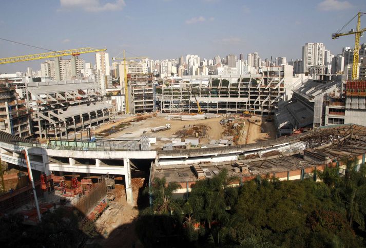 Einn lést þegar að steypt súla féll á knattspyrnuleikvangi í Sau Paulo í Brasilíu. Vinna stendur nú yfir við að reisa nýjan 45 þúsund manna leikvang í borginni en hann verður heimavöllur Palmeiras. Hann var reistur á sama stað og hýsti heimavöll liðsins frá 1917 til 2010. Starfsmaður verktaka lést í slysinu auk þess sem einn til viðbótar slasaðist. Fleiri tíðindi bárust frá dauðsföllum í tengslum við knattspyrnuna í Brasilíu í gær en þá voru tveir stuðningsmenn skotnir til bana, í grennd við Arena Castelao-völlinn í Fortaleza. Talið er að áhangendur annars liðs stæðu á bak við verknaðinn en margir hafa áhyggjum af glæpatíðni í landinu, ekki síst í aðdraganda bæði HM í knattspyrnu, sem haldið verður í Brasilíu á næsta ári, og Ólympíuleikanna í Ríó árið 2016.