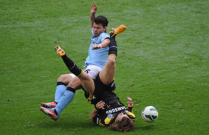 David Luiz hjá Chelsea hefur fyrirgefið Sergio Aguero hjá Manchester City fyrir það hann kallar „fimm sekúndur af reiði" en argentínski framherjinn komst upp með það að traðka á rassi Brasilíumannsins í í undanúrslitaleik enska bikarsins á Wembley í gær. Atvikið gerðist undir lok leiksins eftir að þeir félagar fóru í tæklingu. Chris Foy, dómari leiksins, missti af því þegar Aguero lét báða sóla vaða í afturendann á David Luiz. Það er hægt að sjá myndband af atvikinu með því að smella hér fyrir ofan. „Ég sá ekki alveg hvað gerðist því ég lá á bakinu en margir hafa nefnt þetta við mig," sagði David Luiz og bætti við: „Ég fann samt aðeins fyrir þessu. Stundum missa menn sig í fimm sekúndur þegar þeir reiðast og gera sig þá seka um hluti sem þeir ætluðu aldrei að gera. Ég held að þetta hafi verið þannig," sagði David Luiz. „Aguero er frábær leikmaður en hann verður að koma hreint fram og segja að hann sé ekki hrifinn af ljótum tæklingum. Þetta voru samt bara fimm sekúndur af reiði og ég fyrirgef honum," sagði David Luiz. Það má einnig sjá myndband af mörkunum úr leiknum með því að smella hér.