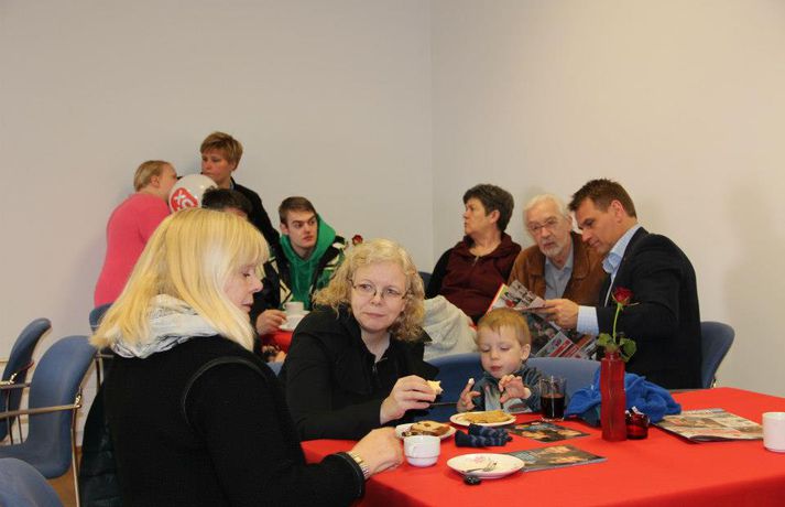 Sjálfboðaliðar stóðu vaktina Ellý Ármanns skrifar 27. apríl 2013 21:31 Meðfylgjandi myndir voru teknar í kosningakaffi Samfylkingarinnar í Mosfellsbæ, Kópavogi, Hafnarfirði og Reykjavík í dag, kjördag. Hundruðir ef ekki þúsundir sjálfboðaliða stóðu vaktina í dag og buðu gestum og gangandi kaffi og með því. Frambjóðendur slógu heldur ekki slöku við. Smelltu á efstu mynd í frétt til að skoða albúmið. Mest lesið Þessi smurðu mest á reikning Jommunnar Lífið Brúðkaup ársins 2025 Lífið Cooper bað móðurina um hönd Hadid Lífið Einhverfir kaþólikkar um allan heim heita Þorlákur Lífið „Mér finnst gaman að láta sjokkera mig“ Lífið Heitt í hamsi hjá gestum á „helvíti á jörðu“ í Breiðholti Lífið Helvíti á jörðu: Emmsjé Gauti minnti á líkamsræktarþjálfara í maníu Gagnrýni Hefur misst vini og kunningja vegna skoðana sinna Lífið Veikindi eyðilögðu líka stóru stund Manúelu Lífið Glænýr bóksölulisti: Ólafur Jóhann skákar Arnaldi Menning Fleiri fréttir Þessi smurðu mest á reikning Jommunnar Einhverfir kaþólikkar um allan heim heita Þorlákur Cooper bað móðurina um hönd Hadid „Mér finnst gaman að láta sjokkera mig“ Brúðkaup ársins 2025 Heitt í hamsi hjá gestum á „helvíti á jörðu“ í Breiðholti Chris Rea hefur ekið heim um jólin í síðasta skipti Saga jarðaði alla við borðið Vísa ásökunum Skinner um kosningasvindl á bug Kimmel ávarpar bresku þjóðina: Frábært ár fyrir fasisma „Ég hugsa til þín á hverjum einasta degi“ Stjörnulífið: Óskar tíkunum gleðilegra jóla Veikindi eyðilögðu líka stóru stund Manúelu Hefur misst vini og kunningja vegna skoðana sinna Leitin á Svínafellsjökli sem hefur enn ekki skilað árangri Krakkatía vikunnar: Ísskápastríð, Eivör og Grafarvogur „Við byrjuðum að hlusta á jólalög í júlí“ Frægir fundu ástina 2025 Íslenska stelpan sem gerðist mormóni Fréttatía vikunnar: Rob Reiner, Dóra Björt og fullir unglingar 500 Esjuferðir á árinu: „Sumir hrista bara hausinn og lygna augunum“ Útgefandi Walliams lætur hann róa Fáklæddir barþjónar þegar Regnboginn opnaði í Bíó Paradís Þriðja stigs krabbameinið það besta sem kom fyrir hann Dúnninn bakaður í fjóra sólarhringa til að drepa allt í honum Heilsu krónprinsessunnar hrakar gríðarlega Pete orðinn pabbi Nýkominn úr meðferð og „sjaldan verið betur nýsleginn túskildingur“ Laufey á lista Obama „Ég heyrði þá kalla á mig en gat engu svarað“ Sjá meira