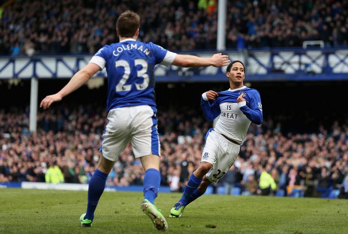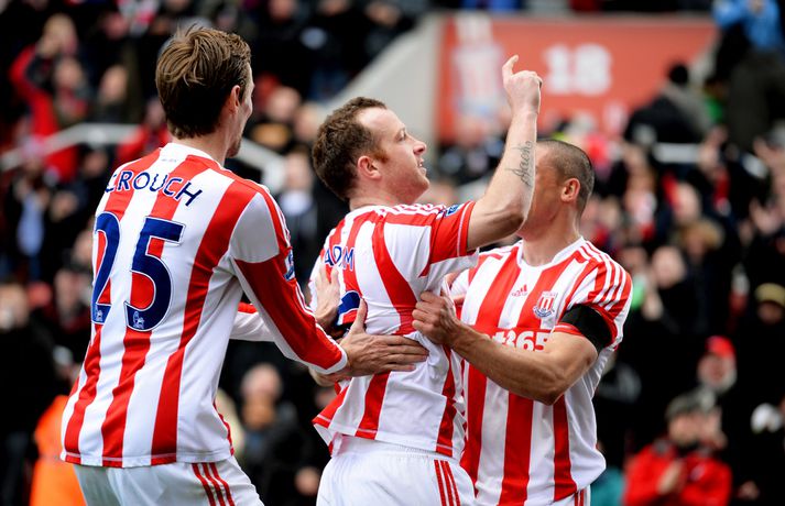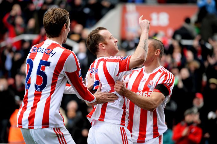 Tottenham gaf eftir í baráttunni um Meistaradeildarsæti í ensku úrvalsdeildinni í dag en bjargaði þó jafntefli gegn Wigan. Alls er fjórum leikjum nú nýlokið í deildinni en Everton vann góðan sigur á Fulham, 1-0, og er nú aðeins tveimur stigum á eftir Tottenham í fimmta sætinu. Stoke hafði betur gegn Norwich, 1-0, og þá vann West Brom 3-0 útisigur á Southampton þar sem þrjú rauð spjöld fóru á loft.Wigan - Tottenham 2-2 0-1 Gareth Bale (9.) 1-1 Emmerson Boyce (11.) 2-1 Callum McManaman (49.) 2-2 Emmerson Boyce, sjálfsmark (89.). Wigan hefði komist upp úr fallsæti með sigri á Tottenham í dag en liðið er nú tveimur stigum frá öruggu sæti. Það byrjaði þó ekki vel fyrir Wigan því liðið gaf hreinlega Tottenham 1-0 forystu. Maynor Figueroa gaf boltann aftur á markvörðinn Joel Robles sem reyndi að hreinsa frá marki. Hann sparkaði þó beint í Gareth Bale en af honum fór boltinn í markið. Emmerson Boyce var þó aðeins tvær mínútur að jafna metin fyrir Wigan þegar hann skoraði með skalla á elleftu mínútu og Callum McManaman kom liðinu yfir með fallegu skoti í upphafi síðari hálfleiks. Allt leit út fyrir að Wigan myndi vinna góðan sigur þegar að sjálfsmarkið kom. Aaron Lennon á sendingu fyrir markið og varð Boyce fyrir því óláni að senda knöttinn í eigið net úr þvögunni. Tottenham fékk svo tækifæri til að skora í uppbótartíma en allt kom fyrir ekki. Gylfi Þór Sigurðsson var allan leikinn á varamannabekk Tottenham.Everton - Fulham 1-0 1-0 Steven Pienaar (16.) Steven Pienaar skoraði sigurmark Everton gegn Fulham í dag en það gerði hann eftir fyrirgjöf Seamus Coleman. Fulham hefur nú tapað fjórum af síðustu fimm leikjum sínum í deildinni. Aðeins fjögur stig skilja að liðin í 3.-6. sæti en fjögur efstu liðin komast í Meistaradeildina.Southampton - West Brom 0-3 0-1 Marc-Antoione Fortune (6.) 0-2 Romelu Lukaku (67.) 0-3 Shane Long (77.) West Brom vann sinn fyrsta sigur síðan í byrjun síðasta mánaðar er liðið gerði góða ferð á St. Mary's-leikvanginn í Southampton. Þrjú rauð spjöld fóru á loft. Gaston Ramirez kom inn á sem varamaður og fékk að líta rautt í stöðunni 2-0. Stuttu síðar fór Fortune sömu leið. Danny Fox, leikmaður Southampton, fékk svo rautt fyrir tveggja fóta tæklingu á Steven Reid undir lok leiksins.Stoke - Norwich 1-0 1-0 Charlie Adam (46.) Charlie Adam tryggði Stoke 1-0 sigur á Norwich og er nú með 40 stig. Norwich er í fjórtánda sæti með 38 stig - sex stigum frá fallsæti.
