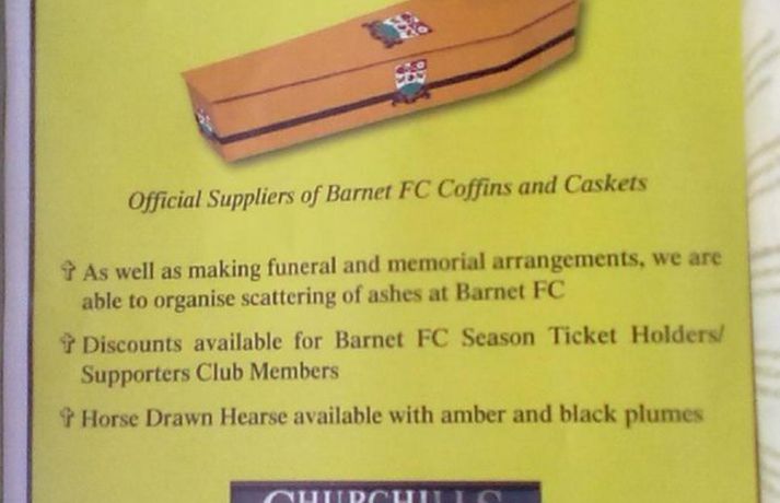 Eflaust hafa einhverjir eldheitir stuðningsmenn knattspyrnuliða látið sig dreyma um að láta jarða sig í kistu merktri félaginu sem það styður. Stuðningsmenn Barnet geta nú látið verða af því. Churchills Family Funeral útfararstofan er komin með einkaleyfi á líkkistum í litum félagsins og með merki þess. Var það auglýst á síðasta heimaleik félagsins. Ekki er vitað til þess að þetta hafi verið gert áður og verður áhugavert að fylgjast með því hvort einhverjir nýti sér þessa þjónustu. Barnet-liðið er undir stjórn Hollendingsins Edgar Davids um þessar mundir og hann hefur ekki gefið álit sitt á kistunum.
