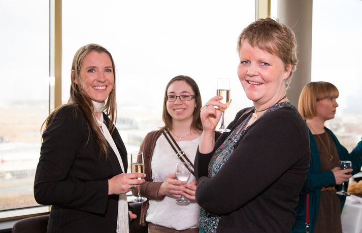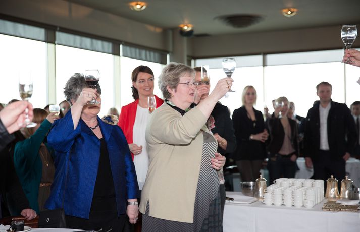 Meðfylgjandi myndir voru teknar á föstudaginn var þegar Grillið, veitingahúsið sem er á efstu hæð Hótel Sögu, var formlega opnað eftir gagngerar endurbætur á húsnæðinu. Eins og sjá má var fjölmennt og ekki síður góðmennt á opnuninni. Það voru þau Leifur Welding og Berglind Berndsen innanhússarkitekt sem önnuðust hönnun á framkvæmdinni sem hófst í byrjun ársins en unnið var hörðum höndum við að fara áratugi aftur í tímann og leita upprunans í hönnun sem var stórglæsileg þegar hótelið var reist á sínum tíma. Útgangspunkturinn var að koma Grillinu sem næst sínu upprunalega útliti.Smelltu á efstu mynd í frétt ef þú vilt skoða allar myndirnar.Leifur Welding og Berglind Berndsen.