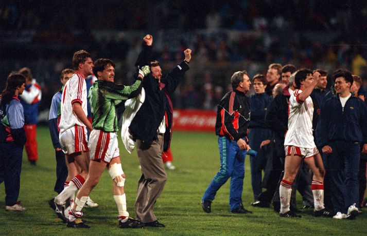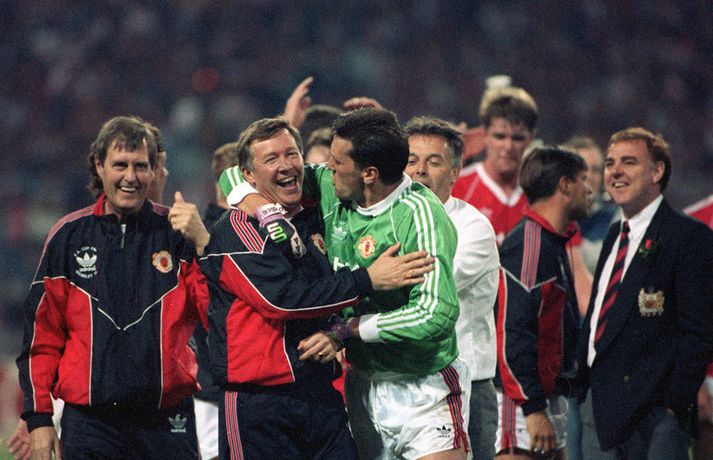 Sir Alex Ferguson lætur af störfum sem knattspyrnustjóri Manchester United í lok leiktíðar eftir einstakan feril. Ferguson tók við liði Manchester United árið 1986. Áður hafði hann stýrt St. Mirren og Aberdeen í Skotlandi þar sem hann er fæddur. Hann gerði Aberdeen þrívegis að skoskum meisturum en sigur í Evrópukeppni bikarhafa árið 1983 stóð upp úr. Ferguson tók við landsliði Skota fyrir heimsmeistaramótið 1986 vegna skyndilegs andláts Jock Stein. Ferguson var meðal annars boðið stjórastarfið hjá Tottenham áður en Manchester United kom inn í myndina. Ron Atkinson var rekinn vegna dapurs árangurs í nóvember 1986 og Skotinn ákveðni var fenginn í hans stað. Þrjú og hálft ár liðu þar til fyrsti bikarinn kom loksins í hús. Þá lagði United lið Crystal Palace í endurteknum bikarúrslitaleik á Wembley. Stíflan var brostin. Sigur í Evrópukeppni bikarhafa kom ári síðar, svo sigur í enska deildabikarnum og loksins, vorið 1993, kom fyrsti Englandsmeistaratitillinn í hús eftir 26 ára þurrkatíð. Síðan hefur United orðið meistari 13 sinnum og 20 sinnum alls. Stjórinn fór alltaf sínar eigin leiðir og ef leikmenn fóru yfir strikið að mati Skotans þurftu þeir að yfirgefa félagið. Þannig yfirgáfu Roy Keane, Jaap Stam og fleiri herbúðir United eftir ósætti við stjórann. Þrátt fyrir að lykilmenn hyrfu á braut tókst honum alltaf að byggja upp nýtt lið og titlarnir héldu áfram að streyma inn. Hér að ofan má sjá fjölmargar myndir frá litríkum ferli Skotans.Sportið á Vísi er komið á Facebook. Fylgstu með.Sir Alex með Evrópumeistaratitilinn í Mosvku árið 2008.Nordicphotos/GettyFred the Red, stuðningsmannadýr Rauðu djöflanna, ræðir við Sir Alex.Nordicphotos/GettySir Alex og Sir Bobby Charlton fara yfir málin á Carrington æfingasvæðinu.Nordicphotos/GettyMeð Evrópumeistararitilinn sem vannst á elleftu stundu í Barcelona 1999.Nordicphotos/GettySir Alex fagnar sem stjóri Aberdeen.Nordicphotos/GettySir Alex, Mark Hughes og Sir Bobby Charlton með Englandsmeistaratitilinn langþráða árið 1993.Nordicphotos/GettyMeð löndum sínum Gordon Strachan og Jim Leighton.Nordicphotos/GettySigri fagnað í Evrópukeppni bikarhafa í Rotterdam 1991.Nordicphotos/GettyNordicphotos/GettyNordicphotos/GettyNordicphotos/GettyNordicphotos/GettyNordicphotos/GettyNordicphotos/GettyNordicphotos/GettyNordicphotos/GettyNordicphotos/GettyNordicphotos/Getty
