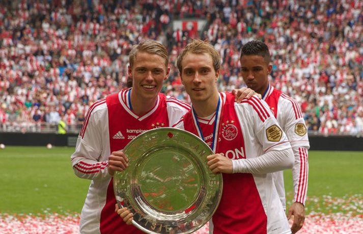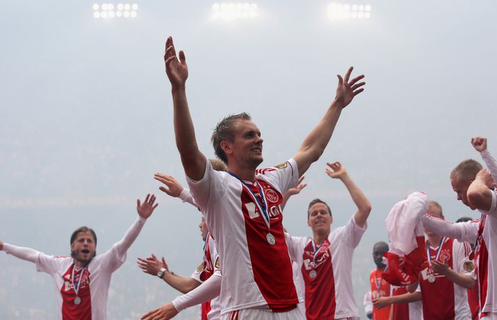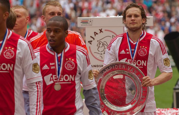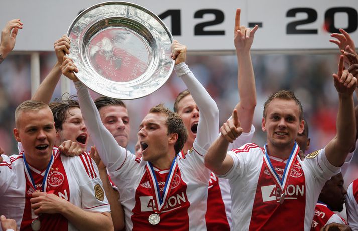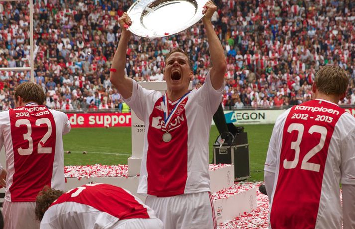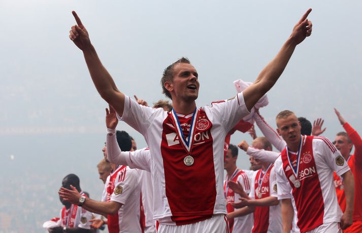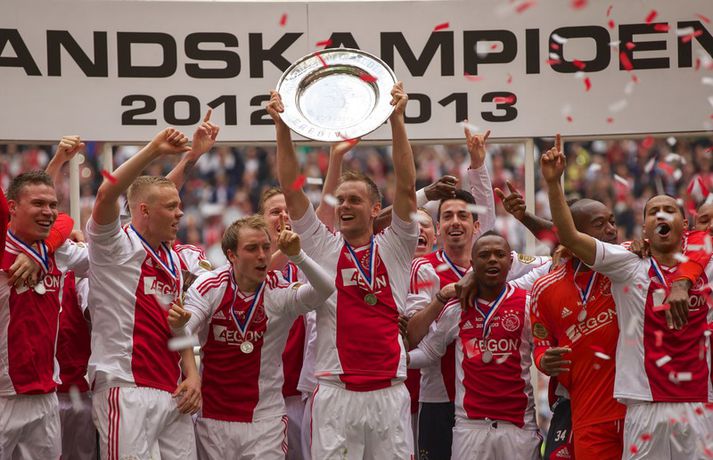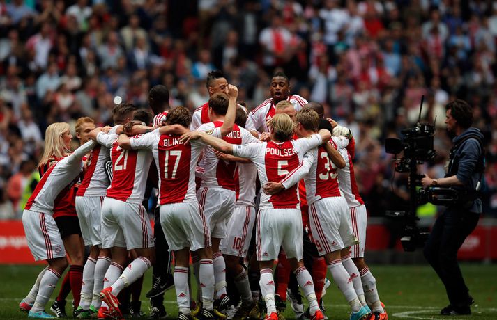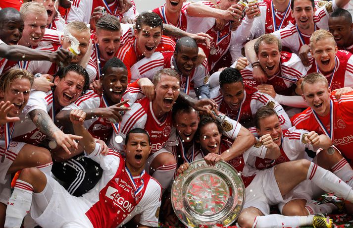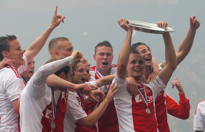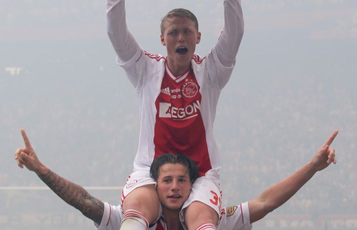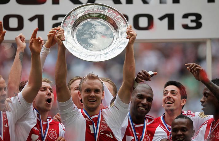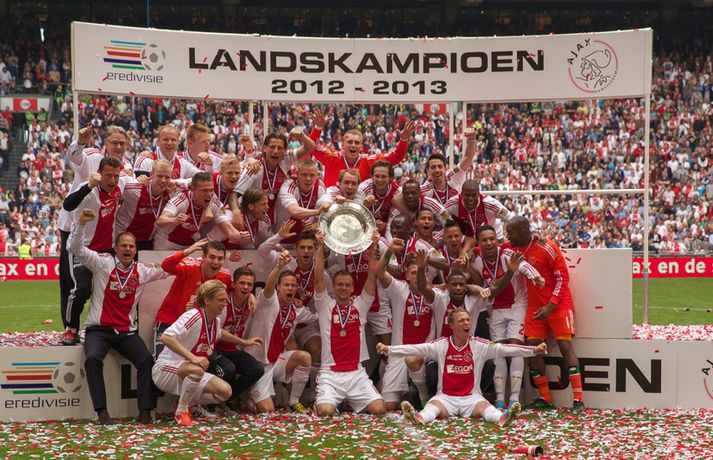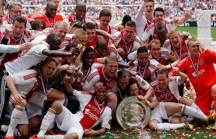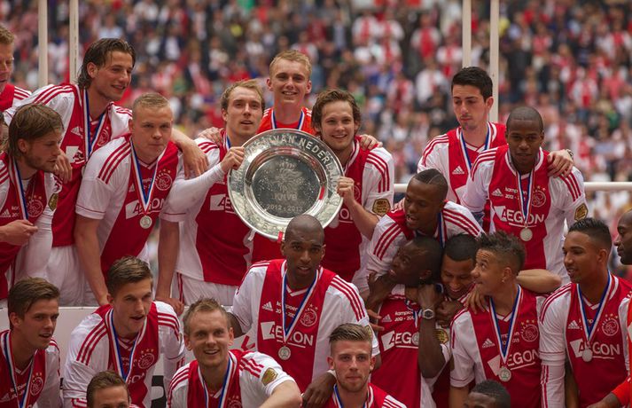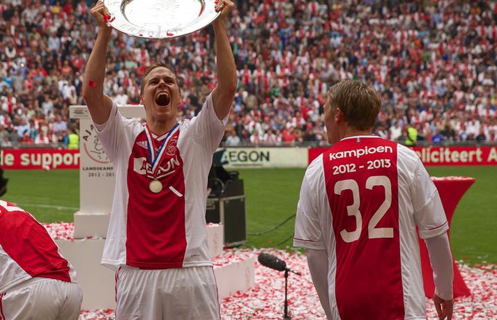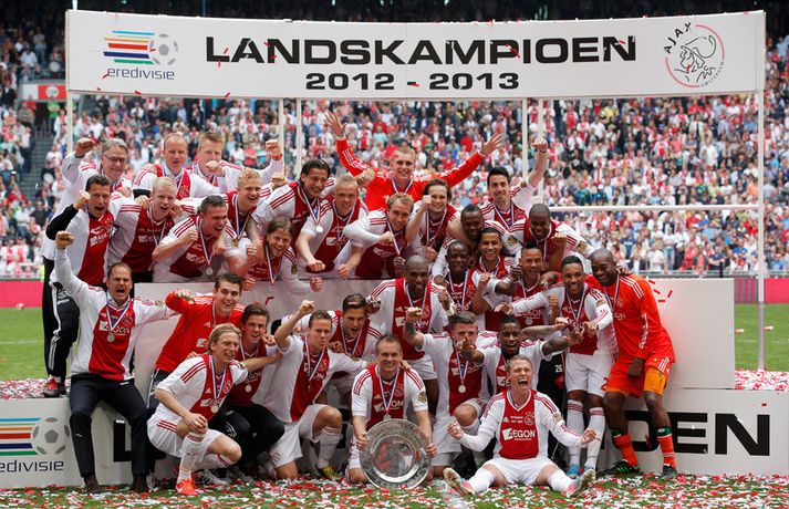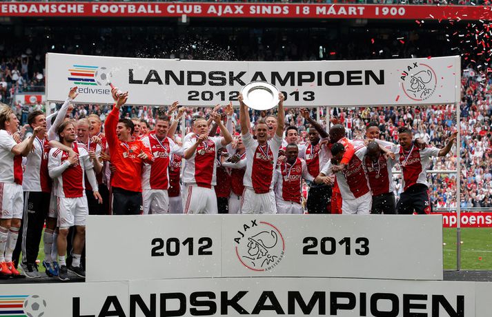 Kolbeinn og félagar fögnuðu titlinum vel - myndir Óskar Ófeigur Jónsson skrifar 5. maí 2013 21:06 Kolbeinn Sigþórsson varð í dag hollenskur meistari með félögum sínum í Ajax en liðið tryggði sér titilinn með því að bursta lið Willem II 5-0 á heimavelli. Kolbeinn byrjaði markaveisluna með því að skora fyrsta markið í leiknum. Kolbeinn hefur skorað fimm mörk í síðustu átta leikjum liðsins en hann skoraði markið sitt með laglegum skalla strax á 12. mínútu leiksins. Það var mikil gleði í leikslok þegar Ajax-menn tóku við meistaraskildinum en Kolbeinn hefur nú orðið meistari á fyrstu tveimur árum sínum hjá félaginu. Hann hefur missti úr mikið vegna meiðsla bæði tímabilin en hefur skorað reglulega þegar hann er heill. Hér fyrir ofan má sjá bæði ljósmyndir af Kolbeini og félögum hans fagna titlinum í dag sem og svipmyndir frá leiknum í dag. Fótbolti Mest lesið Giftu sig á gamlársdag Handbolti Chelsea búið að reka Enzo Maresca Enski boltinn Hvað á Liverpool að gera með Mo Salah og Alexander Isak? Enski boltinn Áfall fyrir Heimi Hallgríms og drauminn um að komast á HM Fótbolti Varar íþróttafólk við ákveðinni tegund áfengis Sport Dæmd úr leik vegna skósóla Sport Slá því upp að Maresca gæti verið rekinn frá Chelsea í dag Enski boltinn Enginn getur slökkt á þungarokkinu á HM í pílu Sport Dagskráin í dag: Stórleikir í enska boltanum og átta manna úrslit í pílunni Sport Fjölskylda skíðakappans fær ekki svör fyrr en í mars Sport Fleiri fréttir Ríkisstjórn Gabon setti fótboltalandsliðið sitt í bann Andri Lucas missti af þriðja leiknum í röð og áfram markaleysi án hans Aganefndin í fríi og Romero fær að spila í dag Áfall fyrir Heimi Hallgríms og drauminn um að komast á HM Chelsea búið að reka Enzo Maresca Roberto Carlos sendur í hjartaaðgerð Slá því upp að Maresca gæti verið rekinn frá Chelsea í dag Hvað á Liverpool að gera með Mo Salah og Alexander Isak? Fílabeinsstrendingar tryggðu toppsætið í uppbótartíma Sjáðu allt það besta úr enska boltanum á árinu 2025 Fyrirliðinn áreitti dómara og mátti ekki spila lokaleikinn „Hann sér framtíðina fyrir sér hjá Napoli“ Mbappé þurfti að játa sig sigraðan Alls ekki síðasti leikur Semenyo Segir dómarana bara hafa verið að giska Stuðningsmaður stendur heilu leikina eins og stytta „Mér var bara tjáð að þeir ætluðu að leita eitthvað annað“ Sjáðu Arsenal rúlla yfir Villa og Úlfana ná í stig á Old Trafford Farin frá Braga eftir aðeins hálft ár Réttlætti Zirkzee-skiptinguna: „Stundum sækirðu betur með færri framherja“ Arsenal rústaði Villa og náði fimm stiga forskoti Neyðarlegt jafntefli United gegn Úlfunum Welbeck skoraði úr einu víti og brenndi af öðru Fékk á sig víti í mögulegum kveðjuleik Senegal vann riðilinn en missti Koulibaly í bann Nígeríumenn snöggir að nýta sér liðsmuninn og fengu fullt hús „Þetta er rebbabragð sem ég vissi nú reyndar ekki að hann kynni“ Elsti atvinnumaður heims fer í nýtt lið Nýi þjálfarinn fær strax að njóta krafta Orra Liðið sem gerir stólpagrín að xG Sjá meira