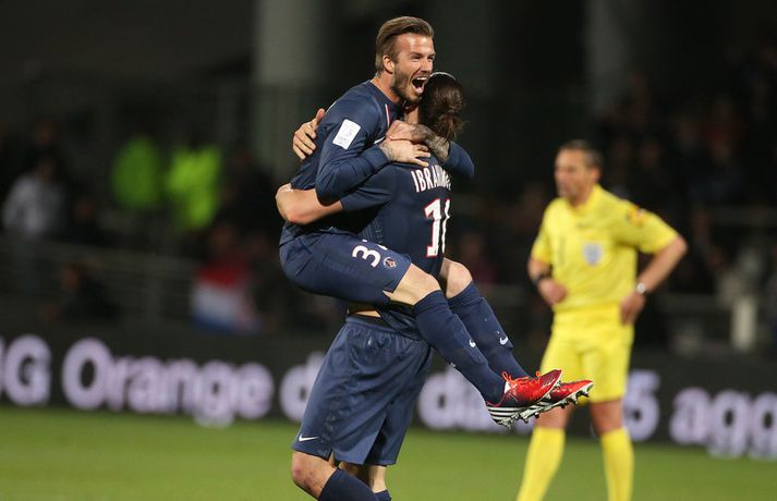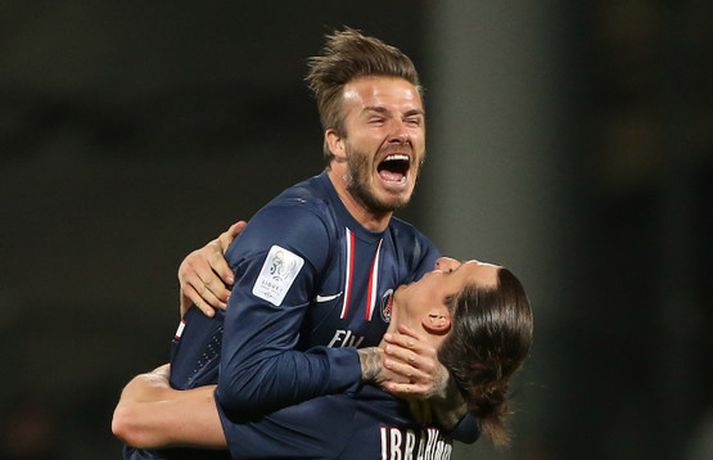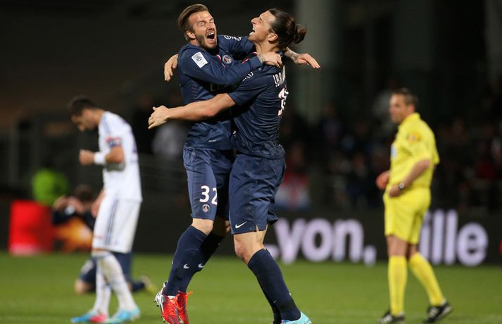 Zlatan og Beckham meistarar í fjórða landinu á ferlinum Óskar Ófeigur Jónsson skrifar 12. maí 2013 22:05 David Beckham fagnar í leikslok. Mynd/Nordic Photos/Getty Paris St Germain varð í kvöld franskur meistari í fótbolta í fyrsta sinn í 19 ár þegar liðið vann 1-0 útisigur á Olympique Lyon. PSG er með sjö stiga forystu þegar aðeins tvær umferðir eru eftir. Zlatan Ibrahimovic og David Beckham voru báðir að verða meistarar í sínu fjórða landi. Jeremy Menez skoraði eina mark leiksins á 53. mínútu leiksins eftir sendingu frá Thiago Motta. Markið tryggði ekki bara PSG meistaratitilinn heldur sér það einnig til þess að Marseille endar í öðru sætinu og er því búið að tryggja sér sæti í Meistaradeildinni á næsta ári. Zlatan Ibrahimovic tókst ekki að skora í kvöld en hann er markahæsti leikmaður deildarinnar með 27 mörk. Zlatan hefur nú orðið meistari í fjórum löndum en hann varð einnig meistari í Hollandi (Ajax), á Ítalíu (Juventus, Inter, AC Milan) og á Spáni (Barcelona). David Beckham kom inn á sem varmaður í lokin en hann hefur eins og Zlatan orðið meistari í fjórum löndum eða í Englandi (Manchester United), á Spáni (Real Madrid) og í Bandaríkjunum (Los Angeles Galaxy). Fótbolti Mest lesið Sumir hneykslast á hegðun heimsmeistarans Sport Mourinho grætti Cristiano Ronaldo í klefanum Fótbolti Giftu sig á gamlársdag Handbolti Van Veen síðastur inn í undanúrslit: „Hætti ekki að brosa næstu 24 tímana“ Sport Varar íþróttafólk við ákveðinni tegund áfengis Sport Áfall fyrir Heimi Hallgríms og drauminn um að komast á HM Fótbolti Kemst bakdyramegin inn í sína bestu grein á Ólympíuleikunum Sport „Mjög svekkjandi“ Enski boltinn Arsenal græddi á mistökum dómarans í 1-0 sigrinum á Everton Enski boltinn Sunderland hjálpaði Arsenal með því að taka stig af Man. City Enski boltinn Fleiri fréttir Mourinho grætti Cristiano Ronaldo í klefanum Sunderland hjálpaði Arsenal með því að taka stig af Man. City „Mjög svekkjandi“ Líklegast að Chelsea ráði stjóra Strassborg Fyrsta mark Mateta í langan tíma dugði ekki Palace til að taka öll stigin Bitlausir meistarar byrjuðu árið á því að tapa stigum á heimavelli Arsenal græddi á mistökum dómarans í 1-0 sigrinum á Everton Sjáðu Mateta skora fyrsta mark ársins 2026 Biðin mikla hjá Unai Emery tók aðeins nokkrar sekúndur Tók báða Íslendingana út af í hálfleik „Ekki jólin sem ég bjóst við“ Ríkisstjórn Gabon setti fótboltalandsliðið sitt í bann Andri Lucas missti af þriðja leiknum í röð og áfram markaleysi án hans Aganefndin í fríi og Romero fær að spila í dag Áfall fyrir Heimi Hallgríms og drauminn um að komast á HM Chelsea búið að reka Enzo Maresca Roberto Carlos sendur í hjartaaðgerð Slá því upp að Maresca gæti verið rekinn frá Chelsea í dag Hvað á Liverpool að gera með Mo Salah og Alexander Isak? Fílabeinsstrendingar tryggðu toppsætið í uppbótartíma Sjáðu allt það besta úr enska boltanum á árinu 2025 Fyrirliðinn áreitti dómara og mátti ekki spila lokaleikinn „Hann sér framtíðina fyrir sér hjá Napoli“ Mbappé þurfti að játa sig sigraðan Alls ekki síðasti leikur Semenyo Segir dómarana bara hafa verið að giska Stuðningsmaður stendur heilu leikina eins og stytta „Mér var bara tjáð að þeir ætluðu að leita eitthvað annað“ Sjáðu Arsenal rúlla yfir Villa og Úlfana ná í stig á Old Trafford Farin frá Braga eftir aðeins hálft ár Sjá meira