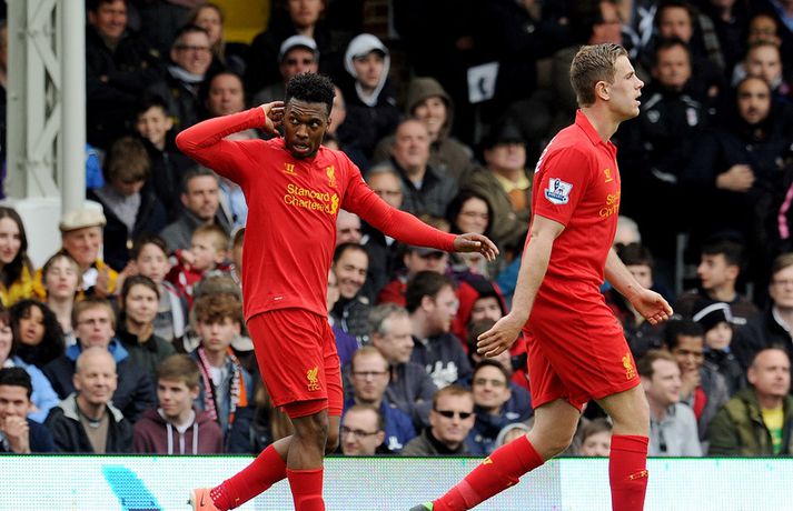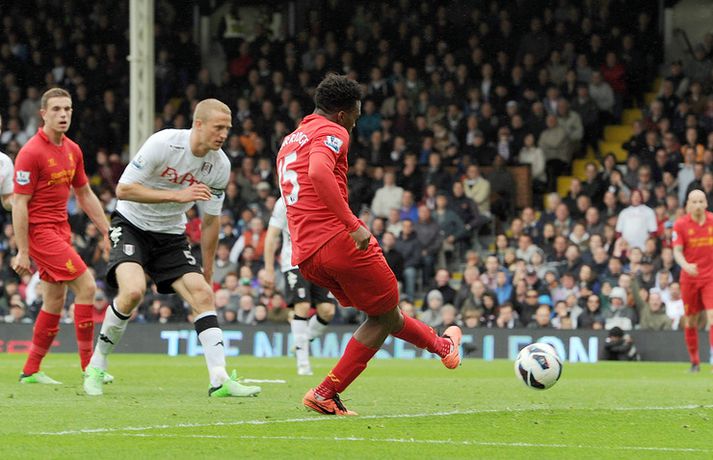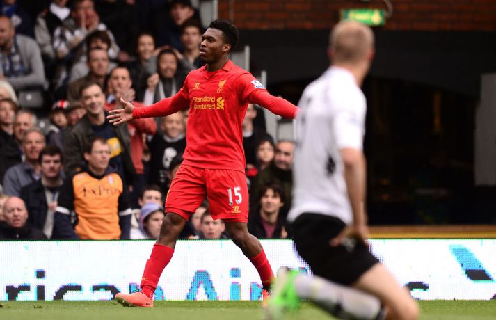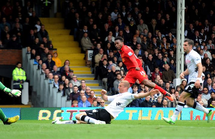 Sturridge með fyrstu þrennuna á ferlinum Óskar Ófeigur Jónsson skrifar 12. maí 2013 13:30 Daniel Sturridge Mynd/Nordic Photos/Getty Daniel Sturridge skoraði öll mörk Liverpool í 3-1 sigri á Fulham á Craven Cottage í ensku úrvalsdeildinni í dag en þetta er fyrsta þrennan hans í ensku úrvalsdeildinni. Liverpool lék án Luis Suarez (í banni) og Steven Gerrard (meiddur) en það kom ekki að sök. Philippe Coutinho lagði upp tvö markanna og er heldur betur að finna sig í Liverpool-búningnum. Daniel Sturridge hefur þar með skorað 11 mörk í 20 deildarleikjum síðan að Liverpool keypti hann í janúarglugganum og Philippe Coutinho er búinn að leggja upp sjö mörk í fyrstu 12 deildarleikjum sínum. Liverpool-menn geta því ekki kvarað yfir þessum kaupum. Dimitar Berbatov kom Fulham í 1-0 á 33. mínútu með sínu fyrsta marki síðan 1. apríl en Daniel Sturridge var búinn að jafna eftir þrjár mínútur. Sturridge tók þá við langri sendingu fram frá Andre Wisdom og afgreiddi færið snildarlega. Daniel Sturridge skoraði annað markið sitt á 62. mínútu þegar skot Philippe Coutinho barst til hans frá varnarmanni. Sturridge átti ekki í miklum vandræðum með að skora af markteig. Sturridge innsiglaði síðan þrennuna á 85. mínútu með því að lyfta boltanum yfir markvörð Fulham eftir að Philippe Coutinho hafði stungið boltannum inn á hann.Staðan í ensku úrvalsdeildinni. Enski boltinn Mest lesið Sumir hneykslast á hegðun heimsmeistarans Sport Mourinho grætti Cristiano Ronaldo í klefanum Fótbolti Giftu sig á gamlársdag Handbolti Van Veen síðastur inn í undanúrslit: „Hætti ekki að brosa næstu 24 tímana“ Sport Varar íþróttafólk við ákveðinni tegund áfengis Sport Áfall fyrir Heimi Hallgríms og drauminn um að komast á HM Fótbolti Kemst bakdyramegin inn í sína bestu grein á Ólympíuleikunum Sport „Mjög svekkjandi“ Enski boltinn Arsenal græddi á mistökum dómarans í 1-0 sigrinum á Everton Enski boltinn Sunderland hjálpaði Arsenal með því að taka stig af Man. City Enski boltinn Fleiri fréttir Sunderland hjálpaði Arsenal með því að taka stig af Man. City „Mjög svekkjandi“ Líklegast að Chelsea ráði stjóra Strassborg Fyrsta mark Mateta í langan tíma dugði ekki Palace til að taka öll stigin Bitlausir meistarar byrjuðu árið á því að tapa stigum á heimavelli Arsenal græddi á mistökum dómarans í 1-0 sigrinum á Everton Sjáðu Mateta skora fyrsta mark ársins 2026 Biðin mikla hjá Unai Emery tók aðeins nokkrar sekúndur Tók báða Íslendingana út af í hálfleik „Ekki jólin sem ég bjóst við“ Andri Lucas missti af þriðja leiknum í röð og áfram markaleysi án hans Aganefndin í fríi og Romero fær að spila í dag Chelsea búið að reka Enzo Maresca Slá því upp að Maresca gæti verið rekinn frá Chelsea í dag Hvað á Liverpool að gera með Mo Salah og Alexander Isak? Sjáðu allt það besta úr enska boltanum á árinu 2025 Alls ekki síðasti leikur Semenyo Segir dómarana bara hafa verið að giska Sjáðu Arsenal rúlla yfir Villa og Úlfana ná í stig á Old Trafford Réttlætti Zirkzee-skiptinguna: „Stundum sækirðu betur með færri framherja“ Arsenal rústaði Villa og náði fimm stiga forskoti Neyðarlegt jafntefli United gegn Úlfunum Welbeck skoraði úr einu víti og brenndi af öðru Fékk á sig víti í mögulegum kveðjuleik „Þetta er rebbabragð sem ég vissi nú reyndar ekki að hann kynni“ Liðið sem gerir stólpagrín að xG Þjálfari Liverpool í föstum leikatriðum látinn fara „Fróðari menn segja að maður eigi ekki að láta tilfinningarnar ráða“ „Ég hélt ég myndi deyja“ Nottingham Forest vill fá að heyra samtöl dómaranna Sjá meira