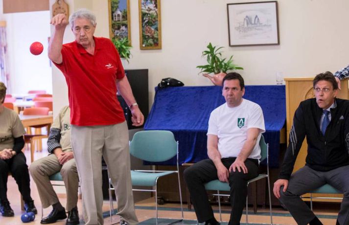 Bæjarstjórn Kópavogs hafði betur í boccia Jón Hákon Halldórsson skrifar 10. maí 2013 15:50 Lið Kópavogs hafði betur þegar bæjarstjórn Kópavogs og bæjarstjórn Garðabæjar öttu kappi í boccia í Gjábakka, félagsheimili aldraðra í Kópavogi, í dag. Athygli vekur að lið Kópavogsbæjar var fullskipað bæjarfulltrúum en lið Garðabæjar var skipað bæjarstjóranum og þremur starfsmönnum bæjarins. Þó er ekkert vitað um það hvaða áhrif það hefur haft á úrslit keppninnar. Gjábakki fagnar 20 ára afmæli um þessar mundir með veglegri dagskrá og er boccia keppnin hluti af henni. Handverkssýningar eldri borgara verða á sínum stað í Gjábakka, Gullsmára og í Boðanum um helgina, eftir því sem fram kemur á vef bæjarins. Liðin voru skipuð svona: Kópavogur: Ármann Kr. Ólafsson Rannveig Ásgeirsdóttir Pétur Ólafsson Ólafur Þór Gunnarsson Garðabær: Gunnar Einarsson Sturla Þorsteinsson Kári Jónsson Margrét Njörk SvavarsdóttirGunnar Einarsson, bæjarstóri Garðabæjar, einbeittur á svip og Ármann Kr. Ólafsson, bæjarstjóri Kópavogs, fylgist áhugasamur með. Mynd/ Vilhelm. Mest lesið Samkomulagið veiti Bandaríkjunum aðgang að auðlindum Grænlands Erlent Viðurkenni nú að hafa beitt Íslendinga efnahagslegri hernaðaraðgerð Innlent Algjörlega óásættanleg staða Innlent Davos-vaktin: „Við fengum allt sem við vildum“ Erlent „Ramma framtíðarsamkomulags“ náð um Grænland og hætt við tolla Erlent Skýrsla Félagsbústaða kolsvört Innlent Hættu við lendingu í miðju aðflugi Innlent Sveitarstjórnin og Penninn Eymundsson saman í eina sæng Innlent Unnu að því að stofna „Vélfag 2.0“ og tölvur með teikningum fjarlægðar Innlent Var á ráðstefnunni í Davos: „Fólk andaði kannski aðeins léttar“ Erlent Fleiri fréttir Viðurkenni nú að hafa beitt Íslendinga efnahagslegri hernaðaraðgerð Algjörlega óásættanleg staða Sveitarstjórnin og Penninn Eymundsson saman í eina sæng Þjóðaröryggisráð boðað til fundar Skýrsla Félagsbústaða kolsvört Formaður Sjálfstæðisflokksins fer yfir þunga stöðu Hættu við lendingu í miðju aðflugi Taldi sig mega birta nektarmyndir af fyrrverandi en dómarinn hélt ekki Unnu að því að stofna „Vélfag 2.0“ og tölvur með teikningum fjarlægðar Drógu dauðan hval lengst út í hafsauga Segir gagnrýni minnihlutans til þess gerða að dreifa athygli Nú má heita Friðálv Gletting Lucíuson Náðu sex byssum úr byssuskáp á Akureyri Parísarheimsókn fjárlaganefndar „mjög fróðleg“ Með 29 kíló af maríjúana í töskunum Brúnni yfir Helluvatn lokað í fimm vikur Stjórnarformaður Vélfags handtekinn í aðgerðum saksóknara „Það er ekki laust við að það fari um mann“ Miðflokkurinn nálgast Samfylkingu Milljarða útspil meirihlutans „fullkomlega ábyrgðarlaust“ og lykti af prófkjörsbaráttu Ákærður fyrir nauðgun á nýársdag Markverð tíðindi í nýrri Maskínukönnun um fylgið á landsvísu Hátt í tíu þúsund manns án atvinnu í desember Sex sagt upp í menntamálaráðuneytinu Hættur í Viðreisn og sækist eftir formennsku í SI Vinnuslys þar sem maður „missti höndina inn í vals“ Baráttan um Framsókn muni snúast um sögulega stöðu Ráðherra segir ríkisvaldið gefa í með framkvæmdir Sverrir Bergmann hættir í bæjarstjórn Norðfirðingar gleðjast að sjá loðnuna birtast Sjá meira