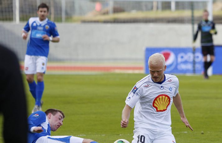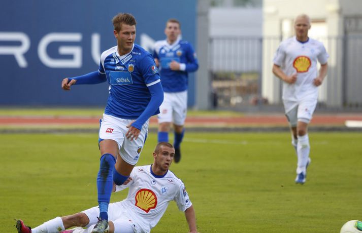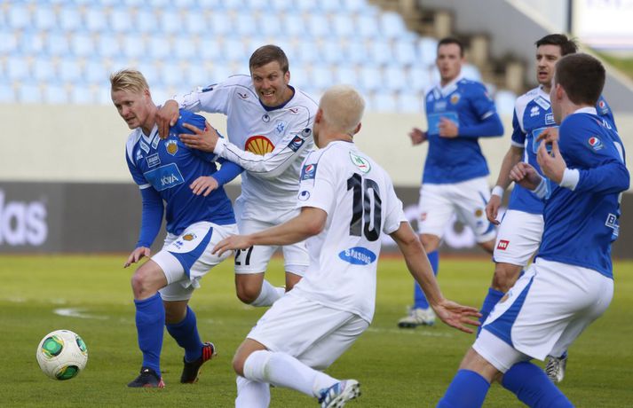 Umfjöllun, viðtöl og myndir: Fram - Stjarnan 0-1 | Eitt mark dugði Eiríkur Stefán Ásgeirsson á Laugardalsvelli skrifar 27. maí 2013 10:35 Stjörnumenn unnu góðan útisigur á Fram í Laugardalnum í kvöld en Robert Sandnes skoraði eina mark leiksins í fyrri hálfleik. Mark Sandnes var einkar laglegt en Framarar geta sjálfum sér um kennt fyrir að nýta ekki eitt þeirra fjölda færa sem liðið fékk í leiknum. Bæði lið fengu góð færi í upphafi leiks sem gaf góð fyrirheit. En leikurinn datt niður áður en að Sandnes, sem kom inn í byrjunarliðið fyrir Atla Jóhannsson í kvöld, skoraði af miklu harðfylgi. Hann fékk boltann frá Ólafi Karli og virtist hafa tapað boltanum. En hann hirti boltann af Ólafi Erni Bjarnasyni strax aftur og skoraði með föstu skoti í markhornið fjær. Nokkuð fjör var í leiknum eftir þetta og voru Framarar mun nær því að jafna metin en Stjörnumenn að bæta við. Svipað var upp á teningnum í síðari hálfleik. Stjörnumenn fengu lítið að vera með boltann og Framarar sóttu nokkuð stíft á köflum en helsta vandmálið var að nokkuð illa gekk að klára sóknirnar með hættulegri marktilraun. Yfirburðir Framara voru þó talsverðir í síðari hálfleik en það var einnig jafn áberandi hversu slakir Stjörnumenn voru fram á við í síðari hálfleik. Liðið hefur verið þekkt fyrir leiftrandi góðan sóknarleik en hann var hvergi að finna í kvöld. Frömurum hefur gengið illa að nýta færin sín í upphafi Íslandsmótsins, eins og sást einna best í leiknum í kvöld. Spilamennska liðsins var á köflum ágæt, sérstaklega hjá Steven Lennon sem var duglegur að skapa færi fyrir sína menn. Stjörnumenn hafa ekki unnið marga 1-0 varnarsigra undanfarin ár en kannski bera úrslit leiksins í kvöld vott um nýja tíma í Garðabænum. Logi: Ekki áhyggjur af bitleysinu Logi Ólafsson, þjálfari Stjörnunnar, var vitanlega mjög sáttur við 1-0 sigur sinna manna á Fram í kvöld. „Ég vissi að þetta yrði erfiður leikur og jafn, enda lið Fram mjög vel mannað og vel spilandi,“ sagði Logi við Vísi eftir leikinn. „Það var ekki sjálfgefið að fara héðan með þrjú stig en varnarleikurinn hélt, þrátt fyrir að þeir hafi náð að skapa sér nokkur færi í leiknum.“ Robert Sandnes kom inn í byrjunarliðið í kvöld í stað Atla Jóhannssonar og þakkaði traustið með því að skora sigurmarkið. „Ég hef lengi vitað að hann er duglegur og fylginn sér, enda var það harðfylgi sem skóp þetta mark hjá honum.“ Sóknarlína Stjörnunnar, með þá Veigar Pál og Garðar í fararbroddi, náði ekki að skapa mörg færi í kvöld. Logi hefur þó ekki áhyggjur af því. „Ekki á meðan við vinnum leiki, þá er gott að vita að við eigum svona góða menn inni. Það kemur, fyrr eða síðar. Á meðan við vinnum leiki þá hef ég ekki áhyggjur.“ Jóhann: Ný tilfinning fyrir okkur „Þetta var vinnsla í níutíu plús sem skilaði þessum stigum í hús að þessu sinni,“ sagði bakvörðurinn Jóhann Laxdal hjá Stjörnunni eftir leik. „Sóknarmenn Fram voru sprækir og fljótir í kvöld. Þeir tóku mig 2-3 sinnum í kvöld sem var ekki nógu gott hjá mér. Við þurftum að vera á tánum í kvöld og sem betur fer heppnaðist það.“ Jóhann segir það nýtt fyrir Stjörnuliðið að upplifa 1-0 sigra sem þessan. „Við erum ekki vanir þessari tilfinningu. Stundum er talað um þessa sem meistarasigra - að skora eitt og halda núllinu. En við erum ánægðir með að við erum farnir að bæta varnarleikinn hjá okkur.“ Hann neitar því ekki að sóknarleikur liðsins hafi oft verið betri en í kvöld. „Við áttum erfitt með að halda boltanum og vera eitthvað að spila í seinni hálfleik. Þetta snerist um að halda haus í vörninni.“ Þorvaldur: Við gáfum þeim markið „Ég var ánægður með leikinn í dag, enda spiluðum við mjög vel,“ sagði Þorvaldur Örlygsson, þjálfari Fram. „Tveir síðustu leikir hafa verið mjög góðir en úrslitin hafa ekki verið eftir því. Ég var því ánægður með allt í dag nema úrslitin.“ „Mark í dag hefði breytt leiknum fyrir okkur, enda vorum við sjaldan í vandræðum með lið Stjörnunnar. Við gerðum klaufaleg mistök sem þeir nýttu sér.“ Það hefur gengið illa hjá Frömurum að nýta færin sín í upphafi Íslandsmótsins. „Það er oft erfitt að nýta færin og í kvöld fengum við nóg af þeim. Stjörnumenn voru svo sem ekki mikið með í leiknum og markið sem þeir skoruðu var í raun gjöf frá okkur.“ „Það er ekkert annað í stöðunni en að halda bara áfram og reyna að vinna fótboltaleiki. Það er líklegra að það sé stutt í sigurleikinn miðað við spilamennskuna.“ Lennon: Strákarnir eru svekktir Steven Lennon var allt í öllu í sóknarleik Fram, sérstaklega í seinni hálfleik, en Fram tapaði engu að síður fyrir Stjörnunni í kvöld, 1-0. „Við vorum meira með boltann og spiluðum fínan sóknarleik, sérstaklega í seinni hálfleik. En það voru þeir sem skoruðu markið og það er það sem telur í lok dags,“ sagði Lennon. „Það eru því nokkur vonbrigði að hafa ekki fengið stig úr þessum leik.“ „Við þurfum að nýta færin okkar betur, fyrst og fremst, til að ná góðum úrslitum í næstu leikjum. Við eigum Val næst í bikarnum og ætlum að vinna þann leik.“ „Strákarnir eru auðvitað svekktir eftir þessi úrslit, enda skiptir spilamennskan engu máli þegar leikir tapast. Við megum sérstaklega ekki við því að tapa heimaleikjum en vonandi breytist það í næsta leik.“ Pepsi Max-deild karla Mest lesið Ungu strákarnir mætast í úrslitaleiknum á HM í pilu Sport Luke „the Nuke“ Littler í úrslitaleikinn þriðja árið í röð Sport Amorim segir að engar viðræður séu í gangi Enski boltinn Skírður í sjónum á s