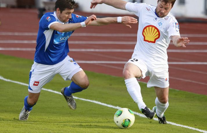 Stjörnumenn unnu góðan útisigur á Fram í Laugardalnum í kvöld en Robert Sandnes skoraði eina mark leiksins í fyrri hálfleik. Mark Sandnes var einkar laglegt en Framarar geta sjálfum sér um kennt fyrir að nýta ekki eitt þeirra fjölda færa sem liðið fékk í leiknum. Bæði lið fengu góð færi í upphafi leiks sem gaf góð fyrirheit. En leikurinn datt niður áður en að Sandnes, sem kom inn í byrjunarliðið fyrir Atla Jóhannsson í kvöld, skoraði af miklu harðfylgi. Hann fékk boltann frá Ólafi Karli og virtist hafa tapað boltanum. En hann hirti boltann af Ólafi Erni Bjarnasyni strax aftur og skoraði með föstu skoti í markhornið fjær. Nokkuð fjör var í leiknum eftir þetta og voru Framarar mun nær því að jafna metin en Stjörnumenn að bæta við. Svipað var upp á teningnum í síðari hálfleik. Stjörnumenn fengu lítið að vera með boltann og Framarar sóttu nokkuð stíft á köflum en helsta vandmálið var að nokkuð illa gekk að klára sóknirnar með hættulegri marktilraun. Yfirburðir Framara voru þó talsverðir í síðari hálfleik en það var einnig jafn áberandi hversu slakir Stjörnumenn voru fram á við í síðari hálfleik. Liðið hefur verið þekkt fyrir leiftrandi góðan sóknarleik en hann var hvergi að finna í kvöld. Frömurum hefur gengið illa að nýta færin sín í upphafi Íslandsmótsins, eins og sást einna best í leiknum í kvöld. Spilamennska liðsins var á köflum ágæt, sérstaklega hjá Steven Lennon sem var duglegur að skapa færi fyrir sína menn. Stjörnumenn hafa ekki unnið marga 1-0 varnarsigra undanfarin ár en kannski bera úrslit leiksins í kvöld vott um nýja tíma í Garðabænum. Logi: Ekki áhyggjur af bitleysinu Logi Ólafsson, þjálfari Stjörnunnar, var vitanlega mjög sáttur við 1-0 sigur sinna manna á Fram í kvöld. „Ég vissi að þetta yrði erfiður leikur og jafn, enda lið Fram mjög vel mannað og vel spilandi,“ sagði Logi við Vísi eftir leikinn. „Það var ekki sjálfgefið að fara héðan með þrjú stig en varnarleikurinn hélt, þrátt fyrir að þeir hafi náð að skapa sér nokkur færi í leiknum.“ Robert Sandnes kom inn í byrjunarliðið í kvöld í stað Atla Jóhannssonar og þakkaði traustið með því að skora sigurmarkið. „Ég hef lengi vitað að hann er duglegur og fylginn sér, enda var það harðfylgi sem skóp þetta mark hjá honum.“ Sóknarlína Stjörnunnar, með þá Veigar Pál og Garðar í fararbroddi, náði ekki að skapa mörg færi í kvöld. Logi hefur þó ekki áhyggjur af því. „Ekki á meðan við vinnum leiki, þá er gott að vita að við eigum svona góða menn inni. Það kemur, fyrr eða síðar. Á meðan við vinnum leiki þá hef ég ekki áhyggjur.“ Jóhann: Ný tilfinning fyrir okkur „Þetta var vinnsla í níutíu plús sem skilaði þessum stigum í hús að þessu sinni,“ sagði bakvörðurinn Jóhann Laxdal hjá Stjörnunni eftir leik. „Sóknarmenn Fram voru sprækir og fljótir í kvöld. Þeir tóku mig 2-3 sinnum í kvöld sem var ekki nógu gott hjá mér. Við þurftum að vera á tánum í kvöld og sem betur fer heppnaðist það.“ Jóhann segir það nýtt fyrir Stjörnuliðið að upplifa 1-0 sigra sem þessan. „Við erum ekki vanir þessari tilfinningu. Stundum er talað um þessa sem meistarasigra - að skora eitt og halda núllinu. En við erum ánægðir með að við erum farnir að bæta varnarleikinn hjá okkur.“ Hann neitar því ekki að sóknarleikur liðsins hafi oft verið betri en í kvöld. „Við áttum erfitt með að halda boltanum og vera eitthvað að spila í seinni hálfleik. Þetta snerist um að halda haus í vörninni.“ Þorvaldur: Við gáfum þeim markið „Ég var ánægður með leikinn í dag, enda spiluðum við mjög vel,“ sagði Þorvaldur Örlygsson, þjálfari Fram. „Tveir síðustu leikir hafa verið mjög góðir en úrslitin hafa ekki verið eftir því. Ég var því ánægður með allt í dag nema úrslitin.“ „Mark í dag hefði breytt leiknum fyrir okkur, enda vorum við sjaldan í vandræðum með lið Stjörnunnar. Við gerðum klaufaleg mistök sem þeir nýttu sér.“ Það hefur gengið illa hjá Frömurum að nýta færin sín í upphafi Íslandsmótsins. „Það er oft erfitt að nýta færin og í kvöld fengum við nóg af þeim. Stjörnumenn voru svo sem ekki mikið með í leiknum og markið sem þeir skoruðu var í raun gjöf frá okkur.“ „Það er ekkert annað í stöðunni en að halda bara áfram og reyna að vinna fótboltaleiki. Það er líklegra að það sé stutt í sigurleikinn miðað við spilamennskuna.“ Lennon: Strákarnir eru svekktir Steven Lennon var allt í öllu í sóknarleik Fram, sérstaklega í seinni hálfleik, en Fram tapaði engu að síður fyrir Stjörnunni í kvöld, 1-0. „Við vorum meira með boltann og spiluðum fínan sóknarleik, sérstaklega í seinni hálfleik. En það voru þeir sem skoruðu markið og það er það sem telur í lok dags,“ sagði Lennon. „Það eru því nokkur vonbrigði að hafa ekki fengið stig úr þessum leik.“ „Við þurfum að nýta færin okkar betur, fyrst og fremst, til að ná góðum úrslitum í næstu leikjum. Við eigum Val næst í bikarnum og ætlum að vinna þann leik.“ „Strákarnir eru auðvitað svekktir eftir þessi úrslit, enda skiptir spilamennskan engu máli þegar leikir tapast. Við megum sérstaklega ekki við því að tapa heimaleikjum en vonandi breytist það í næsta leik.“