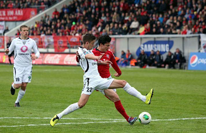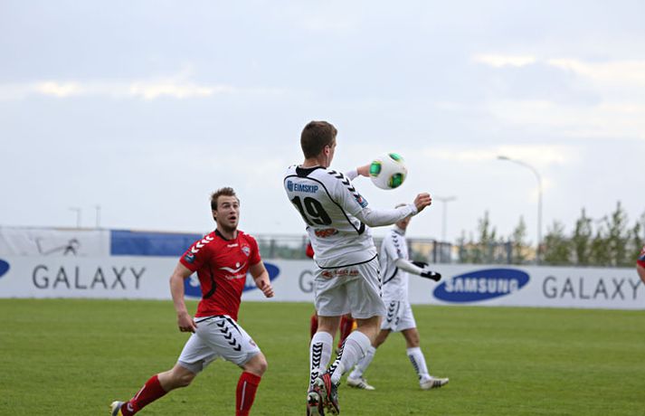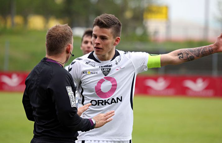 Umfjöllun, viðtöl, einkunnir og myndir: Valur - ÍBV 1-1 Stefán Árni Pálsson á Hlíðarenda skrifar 18. júní 2013 16:52 Valur og ÍBV gerðu 1-1 jafntefli í lokaleik sjöundu umferð Pepsi-deildar karla í knattspyrnu í kvöld. Leikurinn fór fram á Vodafone-vellinum en Eyjamenn gerðu eina mark fyrri hálfleiksins og Valsmenn eina mark síðari hálfleiksins. Leikurinn hófst nokkuð rólega og liðin lengi að finna taktinn. Eyjamenn voru aftur á móti örlítið sterkari í fyrri hálfleiknum og mun markvissari í sínum sóknaraðgerðum. Gestirnir sóttu meira og meira í sig veðrið þegar leið á hálfleikinn sem endaði með marki frá Tonny Mawejje fimm mínútum fyrir lok fyrri hálfleik. Gunnar Már Guðmundsson, leikmaður ÍBV, átti skalla í þverslána og þaðan barst boltinn til Mawejje sem potaði honum yfir marklínuna. Skrautlegt mark sem hafði legið í loftinu í töluverðan tíma. Staðan var því 1-0 fyrir gestina í hálfleik. Leikurinn var verulega bragðdaufur í upphafi síðari hálfleiksins en Valsmenn reyndu hvað þeir gátu að koma sér á ný inn í leikinn. Þegar um hálftími var eftir af leiknum setti Magnús Gylfason, þjálfari Vals, Kolbein Kárason inná völlinn og það tók hann aðeins fjórar mínútur til þess að jafna metin fyrir Val. Arnar Sveinn Geirsson átti frábæra fyrirgjöf inn í vítateig Eyjamanna sem Kolbeinn skallaði í gagnstætt horn, alveg óverjandi fyrir David James í marki ÍBV. Eftir mark Valsmanna tóku heimamenn öll völd á vellinum. Heimamenn náðu samt sem áður ekki að nýta sér yfirburði sína í síðari hálfleiknum og leiknum lauk því með 1-1 jafntefli. Valur því enn í fjórða sæti deildarinnar með 15 stig og Eyjamenn með 12 stig í sjötta sæti. Rúnar Már: Svekktur, pirraður og reiður„Ég er svekktur, pirraður og reiður,“ segir Rúnar Már Sigurjónsson, leikmaður Vals, eftir jafnteflið í kvöld. „Maður er sérstaklega pirraður eftir frammistöðu okkar í fyrri hálfleiknum og við erum orðnir gríðarlega leiðir á því að þurfa alltaf að koma til baka eftir að lenda undir. Það sýnir samt sem áður einnig mikinn karakter að við komum alltaf til baka.“ „Það virðist alltaf eins og við þurfum að fá á okkur mark til þess að fara í gang og við verðum einfaldlega að fara finna lausn á því.“ „Við erum alltaf mikið mun betri aðilinn í leiknum eftir að við fáum á okkur mark, sem er einkennilegt.“ Valur er í fjórða sæti deildarinnar með 15 stig. „Ég hefði viljað vera með 2-4 stig í viðbót eftir sjö umferðir en við erum taplausir sem er gott.“ Hægt er að sjá myndband af viðtalinu hér að ofan. Hermann: Haukur Páll fer í þessa tæklingu eins og fljúgandi skítakamar„Þetta voru mjög sanngjörn úrslit,“ sagði Hermann Hreiðarsson, þjálfari ÍBV, eftir leikinn í kvöld. „Við vorum hættulegri aðilinn í fyrri hálfleiknum og áttum betri færi. Liðið náði að nýta þetta eina færi gríðarlega vel.“ „Gott lið eins og Valur fær alltaf að eiga sína góðu kafla í hverjum leik og það gerðist í kvöld. Það var virkilega svekkjandi hvað við duttum aftarlega í síðari hálfleiknum og Valur uppsker mark eftir það.“ „1-0 er stórhættuleg staða og við ætluðum alls ekki að falla til baka, heldur halda okkur við sama leikskipulag en það gekk ekki upp og því var jafntefli sanngjörn úrslit.“ Hermann Hreiðarsson ærðist út í Hauk Pál, leikmann Vals, eftir eina tæklingu í síðari hálfleiknum og lét hann heldur betur heyra það. „Hann kemur hérna eins og fljúgandi skítakamar, allt of seinn í tæklinguna og átti ekki möguleika í boltann. Ég er svosem ekki að biðja um nein spjöld þegar ég bregst svona við en mér fannst þetta bara nokkuð léleg tækling hjá honum. Hann þarf bara að læra svona hluti og ég get alveg tekið hann í smá kennslu í þessu.“Hægt er að sjá myndbandið af viðtalinu við Hermann með því að ýta hér. Pepsi Max-deild karla Mest lesið Alfreð tekur á sig sökina: Gagnrýndur óbeint af leikmanni Handbolti Mætti brjálaður í viðtal og hjólaði í stjórnina Enski boltinn Króatar Dags lentu í kröppum dansi í fyrsta leik á EM Handbolti Stór mistök Alfreðs reyndust Þjóðverjum dýrkeypt Handbolti Stefán Teitur sætti sig ekki við bekkjarsetu: „Það besta í stöðunni“ Fótbolti Fá martraðir um Tryggva eftir leik kvöldsins Körfubolti Norðmenn áfram í milliriðla Handbolti Einar enn í einangrun en aðrir ferskir Handbolti Þróttur skellti KR í Reykjavíkurmótinu Íslenski boltinn Slógu met sem Ísland er fegið að eiga ekki lengur Handbolti Fleiri fréttir Þróttur skellti KR í Reykjavíkurmótinu KR fær tvo unga Ganverja Breytingar hjá Breiðabliki „Á eftir bolta kemur barn“ Viðar Örn leitaði sér aðstoðar við áfengis- og spilafíkn Trúin eykst á Suðurnesjum með komu McLaughlin Blikar farnir að fylla í skörðin Víkingur og Breiðablik mætast í fyrsta leik Bestu deildarinnar Rafael Máni eltir rætur sínar upp á Skaga Tveir ungir varnarmenn til FH Kristín Dís áfram í herbúðum Blika Miðbær Reykjavíkur er Íslandsmeistari Snýr aftur til Íslands og tekur við ÍBV Róbert með þrennu í sigri KR Fram lagði Leiknismenn Landsliðsbræður Palestínu sameinast í Keflavík Bikarhetjan til KA Þrótti berst mikill liðsstyrkur úr Keflavík Jón Guðni aðstoðar Ólaf Inga Blikarnir eru búnir að missa 34 mörk og 25 stoðsendingar Birta eltir ástina og semur við Genoa Júlíus Mar seldur til Kristiansund Bæði Blikaliðin fá sánuklefa fyrir komandi tímabil Feginn að vera fluttur heim úr fátækrahverfinu í Kína Svekktur að fá ekki leyfi til að taka við ÍBV Alfreð hættur hjá Breiðabliki Skipulagsbreytingar á skrifstofu KSÍ Nýliðarnir fá bandarískan markvörð Júlíus sagður á förum fr