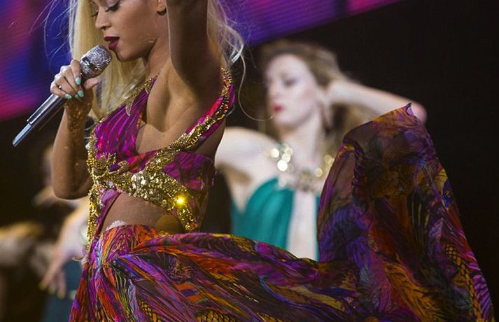Tískuhús Roberto Cavalli sendi frá sér fréttatilkynningu í vikunni með mynd af söngkonunni Beyoncé í silkikjól sem var hannaður sérstaklega fyrir tónleikaferðalag hennar Mrs. Carter. Kvenlegar línur söngkonunnar hafa greinilega ekki vakið lukku hjá Cavalli og er búið að breyta Beyoncé í ofurmjóa konu og líkist hún fremur teikningu en manneskju. Myndin umdeilda. Myndin hefur vægast sagt vakið óánægju á Facebook-síðu Roberto Cavalli og efast aðdáendur Beyoncé að hún sé ánægð með þetta uppátæki. Skemmst er frá því að minnast að hún heimtaði að auglýsingamyndir hennar fyrir H&M væru teknar úr umferð á dögunum því þær voru of fótósjoppaðar. Beyoncé í silkikjólnum. Hjónin saman uppi á sviði á tónleikaferðalaginu. Dragðu Tarotspil dagsins hér.