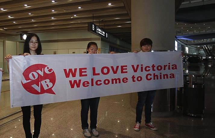 Kryddpían og tískudrottningin Victoria Beckham var fáránlega smart þegar hún lenti á flugvellinum í Peking í gær. Þessi 39 ára pæja klæddist síðum, ermalausum jakka sem vakti svo sannarlega athygli. Aðdáendur Victoriu biðu í röðum til að fagna henni og gaf hún sér tíma til að heilsa uppá þá. Hún ákvað líka að kasta kveðju á aðdáendur sína á Twitter.Hún er alltaf með'etta.“Þakkir til allra yndislegu aðdáenda minna hér í Peking, þvílík móttökunefnd!” skrifaði hún á síðuna.Ekkert bros í boði.Dragðu Tarotspil dagsins hér.