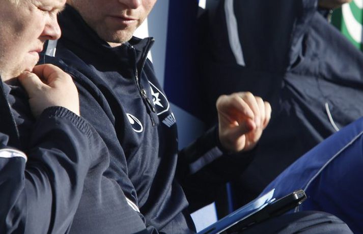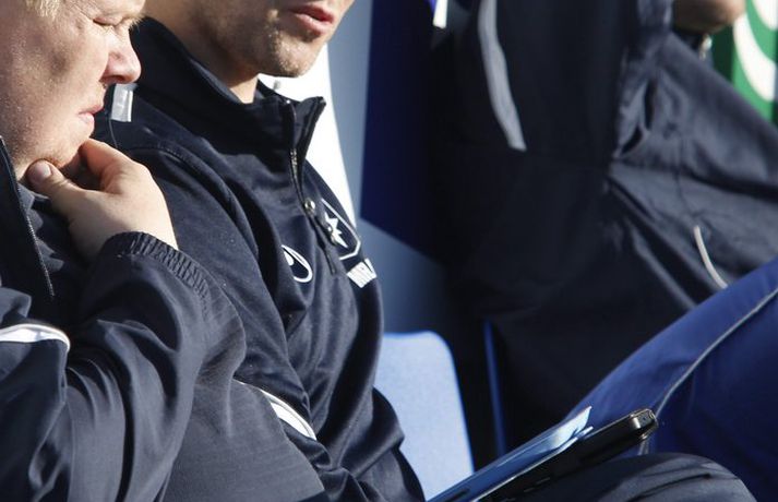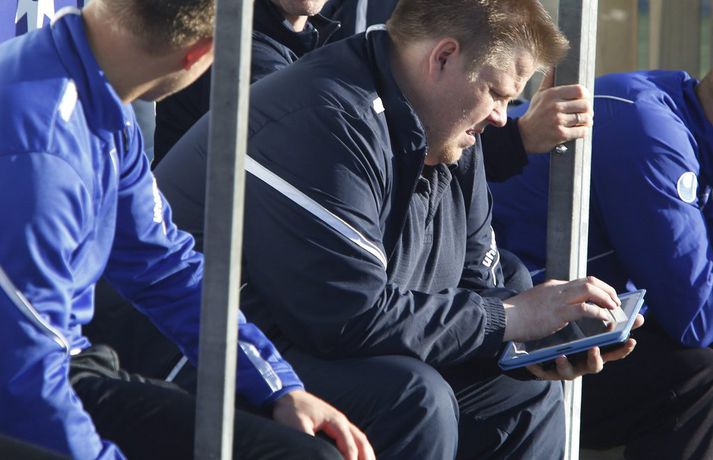 Stjörnumenn með iPad á bekknum | Á gráu svæði Eiríkur Stefán Ásgeirsson skrifar 21. júní 2013 10:49 Mynd/Valli „Ég hreinlega treysti mér ekki til að svara því hvort þetta sé löglegt eða ekki. En þetta er á gráu svæði,“ segir Þórir Hákonarson, framkvæmdarstjóri KSÍ, vegna atviks sem átti sér stað á Stjörnuvellinum í gær. Stjarnan vann í gær 3-1 sigur á FH í 16-liða úrslitum Borgunarbikarkeppni karla. Eins og sést á meðfylgjandi myndum fylgdust menn á varamannabekk Stjörnunnar með beinni útsendingu Stöðvar 2 Sports frá leiknum í gegnum OZ TV-appið á iPad-spjaldtölvu. Það er óheimilt að vera með sjónvarpsskjái við varamannabekkinn sem sýna beina útsendingu frá leiknum og er það í gildi um allan heim. „Ég get þó ekki séð að þetta sé beinlínis bannað enda hafa menn ekki endilega brugðist við nýrri tækni með nýrri reglugerð,“ sagði Þórir við Vísi í dag. „Ég fékk fyrirspurn um þetta í gær og það er vert að íhuga hvernig þessu er nákvæmlega farið. Við þurfum að skoða í kringum okkur og líta til annarra landa.“ Það er þó skýrt í knattspyrnureglum að óheimilt er að endursýna umdeilanleg og vafasöm atvik á risaskjám á knattspyrnuleikvöngum. Pepsi Max-deild karla Mest lesið „Í dag er dagurinn sem þú fæddist, í dag er dagurinn sem þú munt deyja“ Enski boltinn Mætti til leiks berfættur og ber að ofan í snjókomunni Sport „Sé ekkert annað en að dýrasti leikmaður deildarinnar verði áfram á bekknum“ Enski boltinn Ballið búið hjá Chiefs og Mahomes meiddist á hné Sport Þórir í skýjunum: „Sit með lítið tár í augnkróknum“ Handbolti „Troðslan sem þið sjáið núna verður ekki toppuð“ Körfubolti Körfuboltakvöld: Tilþrif tímabilsins til þessa Körfubolti Keyptu nýjan leikvang fyrir Glódísi og Bayern-konurnar Fótbolti Pogba dreymir um að eiga dýrasta úlfalda heims Sport Emelía valin efnilegust hjá danska toppliðinu: „Einstök gleðisprengja“ Fótbolti Fleiri fréttir Strákar Heimis Guðjóns fengu slæman skell í fyrsta leik Axel verður áfram hjá Aftureldingu Kveður pabba sinn í Laugardalnum og fer til FH „Félag sem var í basli með að ná endum saman og greiða laun á réttum tíma“ Skrýtið og taktlaust: „Ég er ekkert sátt með niðurstöðuna“ Fanndís kveður sviðið: „Ég er búin að fella nokkur tár“ Gylfi með tvö og Víkingar byrja á sigri Frá Akureyri til Danmerkur Markadrottningin heldur að landsliðið sé búið spil Strákarnir í 2. flokki Vals þeir einu sem ekki spila fyrir áramót Dæturnar vildu norður: „Mun alltaf gera allt fyrir þær“ Stjarnan sækir markvörð í 3. deildina „Ég var orðinn algjörlega bugaður“ Jónatan áfram á Hlíðarenda: „Var alltaf jákvæður fyrir því að framlengja“ Óli Jó kallar ráðninguna á Jóa Kalla algjört bull „Ég elska þig Ísland, takk fyrir allt!“ Sextán ára með fernu fyrir meistara Víkings Valur dregur sig úr Bose-bikarnum „Sagði bara við hann: Djöfulsins fíflið þitt“ Yngir upp í allt of gamalli deild Þróttur keypti Adam Árna frá Grindavík Ástæðan fyrir því að Þorlákur hætti: „Ég var ekki hrifinn af þessu“ Þorlákur sagði upp störfum hjá ÍBV Þrjár ungar KR-konur leggja skóna á hilluna Murielle elti Óskar í Garðabæinn Segir dökk ský yfir íslensku knattspyrnuhreyfingunni Rúnar sækir gamlan félaga sinn inn í þjálfarateymið Fór frá því að mæta á landsliðsæfingu í það að vera fárveikur í öndunarvél Jasmín kom til að vinna titla og er farin frá Val Framlengir við Breiðablik og nálgast fimm hundruð leikina Sjá meira