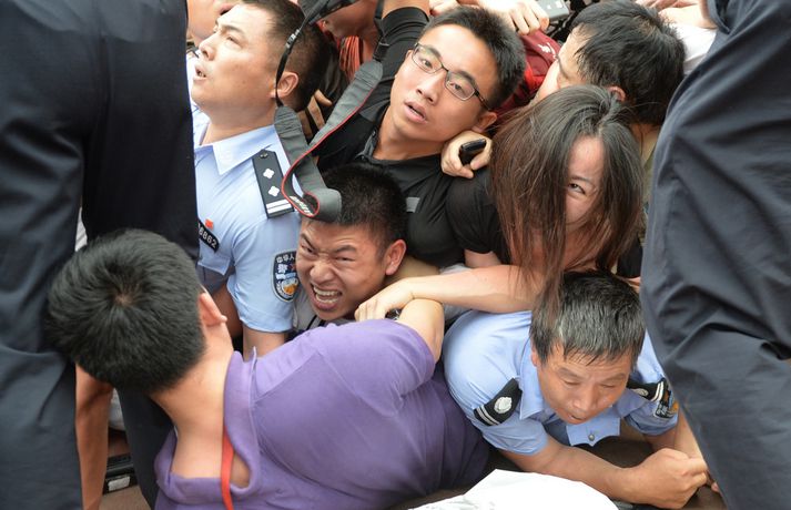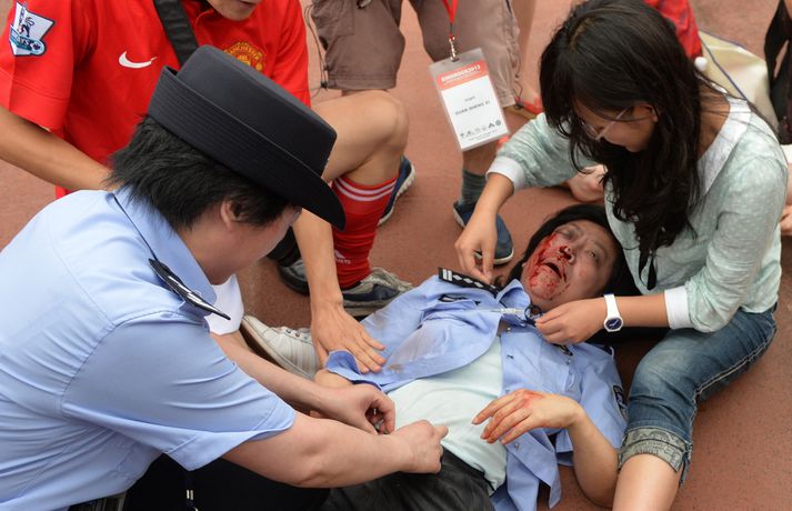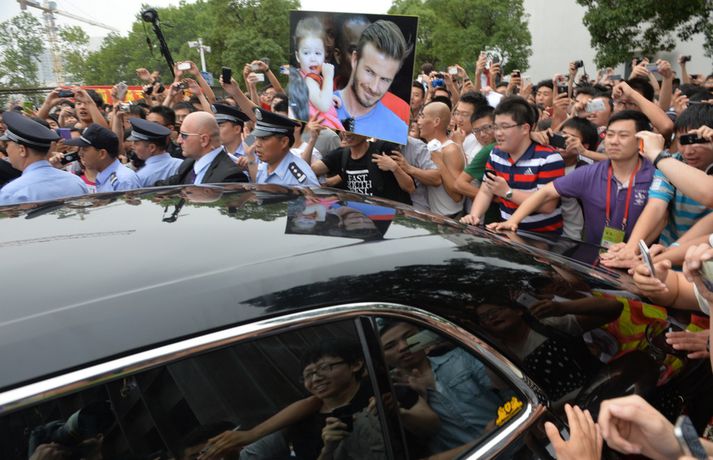 Beckham gerði allt vitlaust í Kína | Myndir Eiríkur Stefán Ásgeirsson skrifar 20. júní 2013 13:06 Nordic Photos / AFP Minnst sjö eru slasaðir eftir að stór hópur manna kom saman í Kína til að sjá knattspyrnugoðið David Beckham. Beckham var staddur við háskóla í Kína þar sem ætlunin var að hitta knattspyrnulið skólans. Um þúsund manns komu saman en múgurinn var æstur í að hitta Beckham. Eins og meðfylgjandi myndir bera með sér var troðningurinn heilmikill en minnst þrír lögreglumenn, tveir öryggisverðir og tveir nemendur eru slasaðir eftir atvikið. Ekkert varð úr að Beckham hitti leikmenn knattspyrnuliðsins vegna þessa. Fótbolti Mest lesið Stór mistök Alfreðs reyndust Þjóðverjum dýrkeypt Handbolti Mætti brjálaður í viðtal og hjólaði í stjórnina Enski boltinn Króatar Dags lentu í kröppum dansi í fyrsta leik á EM Handbolti Slógu met sem Ísland er fegið að eiga ekki lengur Handbolti Víti í súginn í fjórða jafntefli Liverpool í röð Enski boltinn Draumabyrjun hjá Carrick Enski boltinn Einar enn í einangrun en aðrir ferskir Handbolti Pólverji dæmdur í tveggja leikja bann og verður ekki með gegn Íslendingum Handbolti Pirrandi kvöld fyrir topplið Arsenal í Skírisskógi Enski boltinn EM í dag: Fullkominn leikur fyrir Gumma Gumm Handbolti Fleiri fréttir Stefán Teitur sætti sig ekki við bekkjarsetu: „Það besta í stöðunni“ Mætti brjálaður í viðtal og hjólaði í stjórnina Pirrandi kvöld fyrir topplið Arsenal í Skírisskógi Salah klúðraði vítaspyrnu er Nígería tók þriðja sætið Þróttur skellti KR í Reykjavíkurmótinu Dagar Frank hjá Tottenham taldir? Benoný skoraði sigurmark Stockport Kærkominn sigur í fyrsta deildarleik Rosenior með Chelsea Víti í súginn í fjórða jafntefli Liverpool í röð Ísaki fórnað í langþráðum sigri Kölnar Birta hetja Genoa í frumrauninni Markaskorarinn Mbeumo: „Old Trafford var ótrúlegur í dag“ Mbappé á skotskónum í fyrsta sigrinum undir stjórn Arbeloa Draumabyrjun hjá Carrick KR fær tvo unga Ganverja „Stoltur að fá þetta tækifæri og tek því ekki sem sjálfsögðum hlut“ Alveg sama hvað Roy Keane hefur að segja Hákon horfði upp á tap er PSG tók toppsætið Líklegra að Vinícius Jr. framlengi við Real Madrid eftir brottför Xabi Alonso Slot segir Salah enn vera mjög mikilvægan fyrir Liverpool Glasner hættir með Crystal Palace í vor og Guehi fer nú í janúar Gamla Íslendingafélagið gæti breytt aftur um nafn Breytingar hjá Breiðabliki Félagsfærni og persónuleiki skiptir miklu máli þegar Tuchel velur HM-hópinn Albert fær liðsfélaga frá Leeds Nýr þjálfari Chelsea minnti leikmenn á að þvo sér um hendur Í lífstíðarbann fyrir þessa óhuggulegu tæklingu Kenna Donald Trump og falli Bandaríkjadals um sjö milljarða tap „Á eftir bolta kemur barn“ Rúmlega hálfur milljarður manna sótti um miða á HM Sjá meira