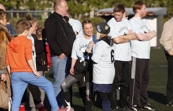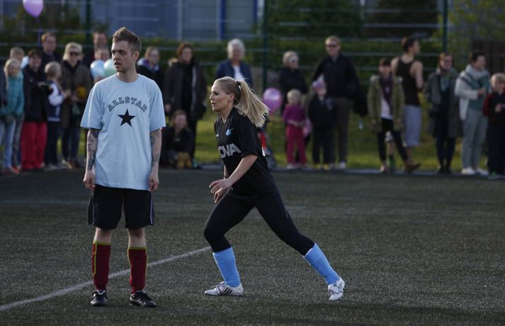 Stelpurnar í FC Ógn sigruðu selebin Ellý Ármanns skrifar 20. júní 2013 10:30 Myndir/Valgarður Gíslason Meðfylgjandi myndir tók Valgarður Gíslason ljósmyndari á styrktarknattspyrnuleik þekktra söngvara og FC Ógnar sem fram fór á gervigrasinu í Frostaskjóli í gærkvöldi. Eins og sjá má á myndunum lögðu allir leikmenn sig þvílíkt fram en leikurinn var hnífjafn þar til FC Ógn sigraði í vítaspyrnukeppni. Bæði liðin sendu kveðju á Facebook „Við í FC Ógn þökkum mótherjum fyrir glæsilega og skemmtilega keppni... algjörir snillingar þar á ferð...einnig þökkum við öllum þeim sem komu og tóku þátt í leiknum með okkur.. .og öllum hinum sem voru með í anda.... Saman getum við flest.... TAKK," skrifaði Rakel Garðarsdóttir, verkefnastjóri hjá Vesturporti og leikmaður knattspyrnuliðsins FC Ógnar.Við áttum engin svör Eftirfarandi skrifaði Jón Ólafsson tónlistarmaður og mótherji FC Ógnar: „Eftir hnífjafnan leik sýndu stúlkurnar úr Ógninni mátt sinn og megin í vítaspyrnukeppni og sigruðu. Þar áttum við engin svör. Þetta var rosalega skemmtilegt og ég þakka kærlega fyrir mig og mitt lið."Ágóði leiksins rennur óskertur til Ágústu Allur ágóði leiksins rennur óskertur til Ágústu Amalíu Sigurbjörnsdóttir sem greindist með Hodgins eitilfrumuæxli fyrir stuttu. Ágústa er þriggja barna móðir og kennir við Flataskóla, en er um þessar mundir í lyfjameðferð og er því frá vinnu. Þeir sem vilja leggja málefninu lið er bent á styrktarreikninginn: 0536-14-300768, Kt. 150174-5899. Smelltu á efstu mynd í fréttinni til að skoða allt albúmið. Sjón er sögu ríkari.Magni Ásgeirsson tók sig vel út í gallanum.Sóknin var öflug.Jón Ólafsson hefur engu gleymt en hann tæklaði liðið eins og honum einum er lagið.Sigríður Beinteinsdóttir var öflug. Sjáið David James fylgjast þetta líka svona vel með leiknum.Hreimir Örn Heimisson - Kaflaskiptur líkami með sexappeal svo fullkominn.Klárar, fimar og fallegar.Flottir feðgar Garðar Thor Cortes með son sinn Kormák.Krafturinn og samheldnin sést svo greinilega á þessari mynd. Mest lesið Helvíti á jörðu: Emmsjé Gauti minnti á líkamsræktarþjálfara í maníu Gagnrýni Hefur misst vini og kunningja vegna skoðana sinna Lífið Veikindi eyðilögðu líka stóru stund Manúelu Lífið Leitin á Svínafellsjökli sem hefur enn ekki skilað árangri Lífið Einmana um jólin og sex góð ráð Áskorun „Ég hugsa til þín á hverjum einasta degi“ Lífið Stjörnulífið: Óskar tíkunum gleðilegra jóla Lífið Bestu, stærstu, slökustu og verstu myndir ársins 2025 Bíó og sjónvarp Jólatónleikar eru ekki tónlist. Þeir eru neyðaraðgerð Gagnrýni „Sat í átta klukkutíma á dag og horfði út um gluggann“ Menning Fleiri fréttir „Ég hugsa til þín á hverjum einasta degi“ Stjörnulífið: Óskar tíkunum gleðilegra jóla Veikindi eyðilögðu líka stóru stund Manúelu Hefur misst vini og kunningja vegna skoðana sinna Leitin á Svínafellsjökli sem hefur enn ekki skilað árangri Krakkatía vikunnar: Ísskápastríð, Eivör og Grafarvogur „Við byrjuðum að hlusta á jólalög í júlí“ Frægir fundu ástina 2025 Íslenska stelpan sem gerðist mormóni „Við erum öll dauð hvort sem er“ Fréttatía vikunnar: Rob Reiner, Dóra Björt og fullir unglingar 500 Esjuferðir á árinu: „Sumir hrista bara hausinn og lygna augunum“ Útgefandi Walliams lætur hann róa Fáklæddir barþjónar þegar Regnboginn opnaði í Bíó Paradís Þriðja stigs krabbameinið það besta sem kom fyrir hann Dúnninn bakaður í fjóra sólarhringa til að drepa allt í honum Heilsu krónprinsessunnar hrakar gríðarlega Pete orðinn pabbi Nýkominn úr meðferð og „sjaldan verið betur nýsleginn túskildingur“ Laufey á lista Obama „Ég heyrði þá kalla á mig en gat engu svarað“ Opnar sig í fyrsta sinn: Kyssti yfirmanninn í fyrsta sinn þetta kvöld Sex hundruð ára kastali Björns í Frakklandi svo gott sem klár Fyrirsát að Valgerði, Stund Pírata og meint alzheimer Þráins Bertelssonar „Það jafnar sig enginn eftir svona og við munum aldrei gera það“ Ungir sjálfstæðismenn gefa út vandræðalegt fjölskyldudagatal Keough sögð líffræðileg móðir Benjamin Travolta Rússland aftur í Eurovision - undirskriftasöfnun Óskarsverðlaununum streymt á Youtube Karmað muni bíta þjófinn í rassinn þegar títan og glyttan byrja að dansa í hitanum Sjá meira