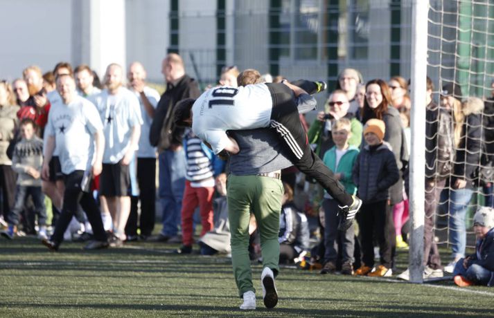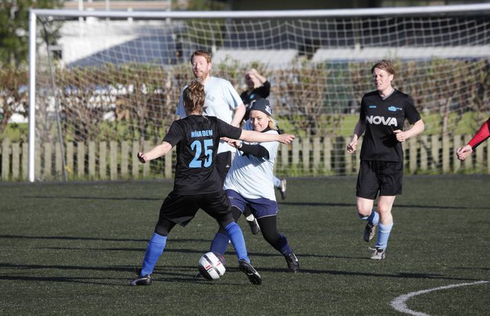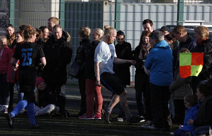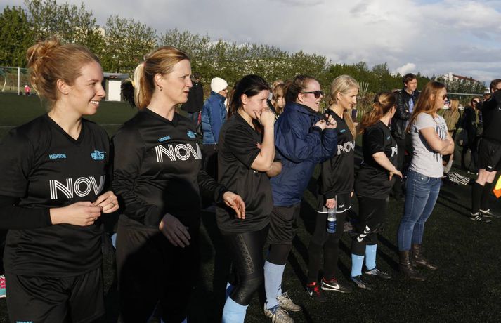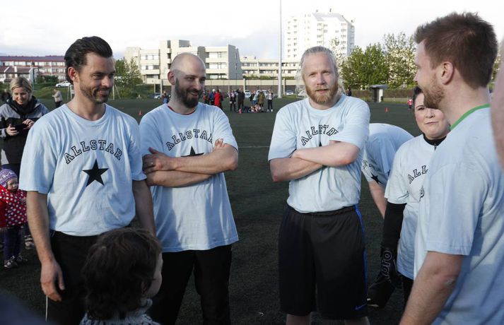 Meðfylgjandi myndir tók Valgarður Gíslason ljósmyndari á styrktarknattspyrnuleik þekktra söngvara og FC Ógnar sem fram fór á gervigrasinu í Frostaskjóli í gærkvöldi. Eins og sjá má á myndunum lögðu allir leikmenn sig þvílíkt fram en leikurinn var hnífjafn þar til FC Ógn sigraði í vítaspyrnukeppni. Bæði liðin sendu kveðju á Facebook „Við í FC Ógn þökkum mótherjum fyrir glæsilega og skemmtilega keppni... algjörir snillingar þar á ferð...einnig þökkum við öllum þeim sem komu og tóku þátt í leiknum með okkur.. .og öllum hinum sem voru með í anda.... Saman getum við flest.... TAKK," skrifaði Rakel Garðarsdóttir, verkefnastjóri hjá Vesturporti og leikmaður knattspyrnuliðsins FC Ógnar.Við áttum engin svör Eftirfarandi skrifaði Jón Ólafsson tónlistarmaður og mótherji FC Ógnar: „Eftir hnífjafnan leik sýndu stúlkurnar úr Ógninni mátt sinn og megin í vítaspyrnukeppni og sigruðu. Þar áttum við engin svör. Þetta var rosalega skemmtilegt og ég þakka kærlega fyrir mig og mitt lið."Ágóði leiksins rennur óskertur til Ágústu Allur ágóði leiksins rennur óskertur til Ágústu Amalíu Sigurbjörnsdóttir sem greindist með Hodgins eitilfrumuæxli fyrir stuttu. Ágústa er þriggja barna móðir og kennir við Flataskóla, en er um þessar mundir í lyfjameðferð og er því frá vinnu. Þeir sem vilja leggja málefninu lið er bent á styrktarreikninginn: 0536-14-300768, Kt. 150174-5899. Smelltu á efstu mynd í fréttinni til að skoða allt albúmið. Sjón er sögu ríkari.Magni Ásgeirsson tók sig vel út í gallanum.Sóknin var öflug.Jón Ólafsson hefur engu gleymt en hann tæklaði liðið eins og honum einum er lagið.Sigríður Beinteinsdóttir var öflug. Sjáið David James fylgjast þetta líka svona vel með leiknum.Hreimir Örn Heimisson - Kaflaskiptur líkami með sexappeal svo fullkominn.Klárar, fimar og fallegar.Flottir feðgar Garðar Thor Cortes með son sinn Kormák.Krafturinn og samheldnin sést svo greinilega á þessari mynd.