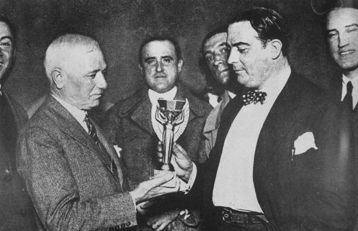 FIFA vill að Argentína og Úrúgvæ haldi saman HM 2030 Óskar Ófeigur Jónsson skrifar 4. júlí 2013 23:00 Frá HM 1930. Mynd/NordicPhotos/Getty Heimsmeistarakeppnin í knattspyrnu mun halda upp á hundrað ára afmælið sitt árið 2030 og Julio Grondona, formaður argentínska knattspyrnusambandsins segir að Alþjóðaknattspyrnusambandið hafi óskað eftir því að Argentínumenn og Úrúgvæmenn haldi keppnina saman. Úrúgvæ hélt fyrstu heimsmeistarakeppnina árið 1930 og tryggði sér þá fyrsta heimsmeistaratitilinn með því að vinna 4-2 sigur á Argentínu í úrslitaleiknum í Montevideo. Argentínumenn héldu keppnina 1978 og urðu þá heimsmeistarar. „FIFA óskar eftir því að halda upp á hundrað ára afmælið í Argentínu og Úrúgvæ. Ég get staðfest það," sagði Julio Grondona, formaður argentínska knattspyrnusambandsins, í útvarpsviðtali í Argentínu. „Knattspyrnusambönd þjóðanna tveggja hafa þegar undirritað samkomulag og svo kemur bara í ljós hvað við gerum," sagði Grondona. HM hefur bara einu sinni farið fram í tveimur löndum en Japanir og Suður-Kóreumenn héldu keppnina saman árið 2002. HM 2014 fer fram í Brasilíu, Rússar halda HM 2018 og HM 2022 fer fram í Katar. Það er ekki búið að ákveða hvar keppnin fer fram 2026 en bæði Kanada og Mexíkó hafa áhuga. HM 2014 í Brasilíu Mest lesið Lofsamar starfið á Íslandi og segir það vanmetið: „Að mínu mati ótrúlegt“ Handbolti Viðar Örn leitaði sér aðstoðar við áfengis- og spilafíkn Íslenski boltinn Ekki innistæða fyrir því að vera kokhraustir Handbolti Stjörnuleikmaður fékk borgaðar tugi milljóna fyrir að spila illa Körfubolti Svona er leiðin að verðlaunum: Ísland sleppur við allra bestu liðin Handbolti Ísland - Ítalía | Óvenjulegur fyrsti mótherji á EM Handbolti „Á eftir bolta kemur barn“ Íslenski boltinn Kenna Donald Trump og falli Bandaríkjadals um sjö milljarða tap Fótbolti Í lífstíðarbann fyrir þessa óhuggulegu tæklingu Fótbolti Þjálfari Ítalíu smeykur við Gísla og Ómar Handbolti Fleiri fréttir Glasner hættir með Cryctal Palace í vor og Guehi fer nú í janúar Gamla Íslendingafélagið gæti breytt aftur um nafn Breytingar hjá Breiðabliki Félagsfærni og persónuleiki skiptir miklu máli þegar Tuchel velur HM-hópinn Albert fær liðsfélaga frá Leeds Nýr þjálfari Chelsea minnti leikmenn á að þvo sér um hendur Í lífstíðarbann fyrir þessa óhuggulegu tæklingu Kenna Donald Trump og falli Bandaríkjadals um sjö milljarða tap „Á eftir bolta kemur barn“ Rúmlega hálfur milljarður manna sótti um miða á HM Börsungar sluppu fyrir horn Nökkvi og félagar féllu úr leik í bikarnum Stórleikur hjá Rabiot í mikilvægum sigri AC Milan Viðar Örn leitaði sér aðstoðar við áfengis- og spilafíkn Guðrún klæðist grænu á nýjan leik Engin mistök þegar „rangstöðumark“ Wirtz var dæmt gilt KR í samstarf við akademíu í Gana Ekki viss um framtíð sína hjá Liverpool Samuel Eto'o settur í bann fyrir slæma hegðun en sambandið kvartar Sláandi mynd af þjálfurum þriggja stærstu spænsku félaganna frá 2011 Sjáðu bæði mörk Viktors í gær Nýr stjóri Chelsea sagðist sjálfur bera ábyrgð á mistökum markvarðarins Heimamenn Marokkó í úrslitaleikinn eftir vítaspyrnukeppni „Þetta get ég og þarf að gera oftar“ Martraðarbyrjun hjá Arbeloa í Madríd Skytturnar með forystuna en Garnacho stal þrumunni af Gyökeres Tómas Bent gulltryggði sigurinn Blysin slógu Bæjara ekki út af laginu Hörður skoraði og Sverrir hélt hreinu Mané skaut Senegal í úrslit en Salah sást varla Sjá meira
