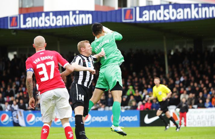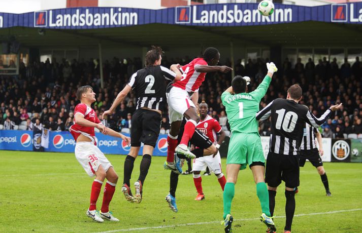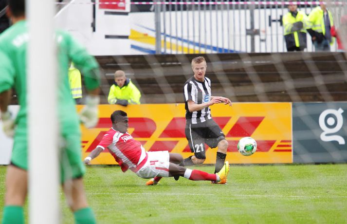 Standard Liege reyndist KR-ingum of stór biti í 3-1 sigri Belganna í Frostaskjólinu í kvöld. Heimamenn náðu forskotinu í fyrri hálfleik en Belgarnir sigu fram úr í seinni hálfleik og unnu að lokum öruggan sigur. Fyrirfram var vitað að verkefnið yrði erfitt. Standard Liege endaði í sjötta sæti í Belgísku deildinni á síðasta ári og hefur verið virkur þáttakandi í Evrópukeppnum síðastliðin ár. Aðstæður voru erfiðar og áttu menn erfitt með að fóta sig á blautum vellinum og mikið um slakar sendingar í upphafi. KR-ingar náðu forskotinu eftir 35 mínútur, þá átti Guðmundur Reynir hættulega fyrirgjöf milli varnar og markmanns sem Kjartan Henry var fyrstur að átta sig á og vippaði boltanum yfir Eiji Kawashima. Rétt fyrir hálfleik náðu Belgarnir að jafna metin, á 44 mínútu fengu þeir hornspyrnu sem fór beint á ennið á Kanu, varnarmanni Standard sem var aleinn og skallaði boltann af öryggi í netið. Sofandiháttur í varnarleik KR-inga því Kanu var einn á auðum sjó í miðjum vítateignum. Eftir þetta fylgdi mikil pressa frá gestunum sem voru nálægt því að ná forskotinu fyrir hálfleik en heimamenn náðu að halda út. Gestirnir höfðu undirtökin í seinni hálfleik og náðu verðskuldað forskotinu eftir rúmlega korter í seinni hálfleik. Þá átti Mujangi-Bia fyrirgjöf sem fann Michy Batshuayi við vítateiginn. Michy náði að skapa sér pláss og skoraði með föstu skoti sem Hannes réði ekki við. Gestirnir gengu svo langt með að klára einvígið þegar þeir skoruðu þriðja markið á 90 mínútu. Dæmd var aukaspyrna við vítateigsbogann sem Paul-José Mpoku skrúfaði í hornið og tryggði sigurinn. Leiknum lauk því með 3-1 sigri Belganna sem gengu langt með að klára einvígið í kvöld. Leikmenn liðsins reyndust of sterkir fyrir heimamenn sem börðust hetjulega í kvöld og voru óheppnir að fá á sig þriðja markið sem gerir verkefnið í næstu viku gríðarlega erfitt. Rúnar: Komu okkur ekki á óvart„Ég er mjög ósáttur með að fá á mig mark bæði á lokamínútu fyrri og seinni hálfleiks, það gerir úrslitin frekar slæm fyrir okkur," sagði Rúnar Kristinsson, þjálfari KR eftir leikinn. „Þetta breyttist mikið í seinni hálfleik, við vorum mjög flottir í fyrri hálfleik og þeir voru oft ráðalausir í sínum leik. Hornspyrnan gefur þeim mark og svo fá þær færi rétt undir lokin, annað fengu þeir ekki í fyrri hálfleik," Jafnt var í hálfleik eftir að heimamenn náðu forskotinu eftir rúmlega hálftíma leik. „Við lékum vel í fyrri hálfleik og áttum skilið að fara inn í hálfleik með forystuna sem hefði eflaust breytt leiknum. Það dróg af okkur í síðari hálfleik og þeir gengu á lagið við það," Aðstæður voru erfiðar í kvöld, völlurinn var blautur og þungur og áttu menn oft í erfiðleikum með að ná upp góðu spili. „Það er alveg rétt, völlurinn var þungur og blautur og það seig svolítið í hjá okkur í seinni hálfleik. Það er búið að vera mikið álag á okkur en við börðumst alveg fram til lokamínútunnar, við reyndum að bæta í sóknina og tókum sénsa." „Við reyndum að sækja jöfnunarmarkið og fórnuðum okkur fram á völlinn þótt við vissum að við gætum fengið mark í andlitið. Maður vonaðist auðvitað til að sleppa með að fá á sig mark, 2-1 hefði verið allt önnur úrslit en 3-1 en strákarnir lögðu allt í þetta og ég er stoltur af þeim í kvöld," Rúnar sagði að KR-ingar hefðu verið vel undirbúnir fyrir leikinn og spilamennska Standard kom honum ekki í opna skjöldu. „Við vorum búnir að sjá nokkra leiki með þeim og þetta var svipað og þeir hafa verið að gera. Þótt það sé nýr þjálfari er þetta sama og þeir hafa verið að gera svo þeir komu okkur ekki mikið á óvart, þeir eru líkamlega sterkir og í góðu standi og leyfðu okkur lítið að spila boltanum," sagði Rúnar. Guy Luzon: Tek hatt minn ofan KR-ingum„Við byrjuðum leikinn ekki vel, við vorum hræddir, ekki nægilega vinnusamir og ekki nógu ákveðnir í fyrri hálfleik," sagði Guy Luzon, þjálfari Standard Liege eftir leikinn. „Í seinni hálfleik snerum við þessu við, við breyttum gangi leiksins og breyttum okkar spilamennsku. Við reyndum að spila boltanum eftir jörðinni og hratt og fengum færi til að skora. Við skoruðum þrjú mörk sem er glæsilegt og við verðum tilbúnir í næsta leik," Guy var hrifinn af spilamennsku KR-inga og hrósaði þeim sérstaklega fyrir fyrri hálfleikinn. „Þeir spiluðu vel, sérstaklega í fyrri hálfleik, ég tek hatt minn ofan fyrir þeim. Í seinni hálfleik vorum við aftur að spila eins og við viljum, spiluðum hraðari fótbolta og unnum sterkan sigur. Við verðum að bæta okkur fyrir seinni leikinn, við munum reyna að spila betri fótbolta og vinna leikinn," Aðstæður voru erfiðar í leiknum, völlurinn var blautur og var eitthvað um polla sem gerði mönnum erfitt fyrir að spila á milli sín. „Í fyrri hálfleik lentum við í miklum vandræðum með völlinn, við áttum í erfiðleikum með að spila boltanum meðfram jörðinni eins og við vildum. Í seinni hálfleik hætti að rigna og við gátum reynt að spila boltanum betur," sagði Guy að lokum. Grétar: Gefum þeim þrjú mörk„Þetta er fínt lið en við gefum þeim þrjú mörk og það er pirrandi að fara með þrjú mörk á okkur út," sagði Grétar Sigfinnur Sigurðsson, leikmaður KR eftir leikinn. „Við ætlum að fara út og reyna að vinna, gera okkar besta, spila fótbolta og hafa gaman. Hvort þetta sé búið í ár veit ég ekki, við ætlum allaveganna að sjá hvað gerist," Verkefnið verður erfitt fyrir KR-inga sem þurfa að eiga stórleik í Belgíu til að komast áfram. „Öll mörkin voru jafn sár, fyrsta markið kemur útaf dekkningin klikkar hjá okkur sem er 
