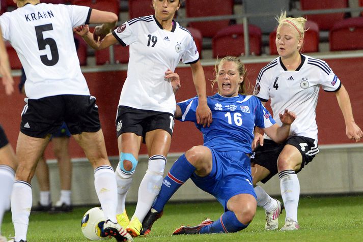 Harpa: Hún er örugglega orðin gráðug Óskar Ófeigur Jónsson í Vaxjö skrifar 17. júlí 2013 11:15 Nordic Photos / AFP Harpa Þorsteinsdóttir vonast eftir því að leikur íslenska landsliðsins á móti Hollandi í dag líkist fyrsta leiknum við Norðmenn þar sem íslenska liðið náði í sitt fyrsta stig á EM. Ísland mætir Hollandi í dag og sigur tryggir íslenska liðinu sæti í átta liða úrslitum EM í Svíþjóð. „Við þurfum að leggja áhersluna á það að stoppa framlínuna hjá þeim. Þær eru með mjög flinka leikmenn fram á við sem eru allar líklegar til að valda usla. Þær hafa ekki skorað á mótinu en liðin hafa líka verið að liggja til baka á móti þeim. Það hefur greinilega virkað þannig að ætli við leggjum ekki upp með eitthvað svipað," segir Harpa. „Þetta verður vonandi líkara Noregsleiknum heldur en Þýskalandsleiknum. Við eigum mun meiri möguleika í sóknarleiknum á móti þessu liði heldur en á móti Þýskalandi. Við erum nær Hollandi í styrkleika. Þetta kemur því til með að ráðast meira á baráttu og dagsformi," segir Harpa. Stjörnuleikmaður Hollendinga Manon Melis er mikill markaskorari en hún hefur ekki fundið sig á mótinu til þessa. Það breytir því ekki að íslenska liðið þarf að passa sérstaklega að hún komist ekki á flug í dag. „Það þarf að hafa miklar gætur á Manon Melis. Hún getur unnið leiki upp á eigin spýtur. Hún er örugglega orðin gráðug en gæti líka orðið fljótt pirruð ef við tökum fast á henni í byrjun. Við verðum að gera það," segir Harpa. Mest lesið Uppgjörið: Ísland - Ítalía 39-26 | Afar öruggur sigur gegn óvenjulegu liði Handbolti Vikor Gísli rændur á tölfræðiblaðinu Handbolti Sjáðu gleðina hjá Íslendingum í Kristianstad Handbolti Lofsamar starfið á Íslandi og segir það vanmetið: „Að mínu mati ótrúlegt“ Handbolti Uppgjörið: Grindavík - Álftanes 83-78 | Sigurganga toppliðsins heldur áfram eftir mikla spennu Körfubolti Viðar Örn leitaði sér aðstoðar við áfengis- og spilafíkn Íslenski boltinn Tölfræðin á móti Ítalíu: Þrír í íslenska liðinu með yfir 9,55 af tíu í sóknareinkunn Handbolti Einkunnir Strákanna okkar á móti Ítalíu: Her Napóleons gjörsigraður Handbolti EM í dag: Fullkominn leikur fyrir Gumma Gumm Handbolti Óli Stef greindi frá fjarveru sonarins yfir lambalæri hjá Þrótturum Handbolti Fleiri fréttir Hákon horfði upp á tap er PSG tók toppsætið Líklegra að Vinícius Jr. framlengi við Real Madrid eftir brottför Xabi Alonso Slot segir Salah enn vera mjög mikilvægan fyrir Liverpool Glasner hættir með Crystal Palace í vor og Guehi fer nú í janúar Gamla Íslendingafélagið gæti breytt aftur um nafn Breytingar hjá Breiðabliki Félagsfærni og persónuleiki skiptir miklu máli þegar Tuchel velur HM-hópinn Albert fær liðsfélaga frá Leeds Nýr þjálfari Chelsea minnti leikmenn á að þvo sér um hendur Í lífstíðarbann fyrir þessa óhuggulegu tæklingu Kenna Donald Trump og falli Bandaríkjadals um sjö milljarða tap „Á eftir bolta kemur barn“ Rúmlega hálfur milljarður manna sótti um miða á HM Börsungar sluppu fyrir horn Nökkvi og félagar féllu úr leik í bikarnum Stórleikur hjá Rabiot í mikilvægum sigri AC Milan Viðar Örn leitaði sér aðstoðar við áfengis- og spilafíkn Guðrún klæðist grænu á nýjan leik Engin mistök þegar „rangstöðumark“ Wirtz var dæmt gilt KR í samstarf við akademíu í Gana Ekki viss um framtíð sína hjá Liverpool Samuel Eto'o settur í bann fyrir slæma hegðun en sambandið kvartar Sláandi mynd af þjálfurum þriggja stærstu spænsku félaganna frá 2011 Sjáðu bæði mörk Viktors í gær Nýr stjóri Chelsea sagðist sjálfur bera ábyrgð á mistökum markvarðarins Heimamenn Marokkó í úrslitaleikinn eftir vítaspyrnukeppni „Þetta get ég og þarf að gera oftar“ Martraðarbyrjun hjá Arbeloa í Madríd Skytturnar með forystuna en Garnacho stal þrumunni af Gyökeres Tómas Bent gulltryggði sigurinn Sjá meira