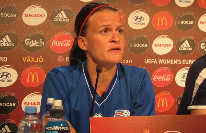 Katrín rifjaði upp annan landsleikinn sinn frá 1994 Óskar Ófeigur Jónsson í Vaxjö skrifar 16. júlí 2013 20:15 Katrín Jónsdóttir á fundinum í kvöld. Mynd/ÓskarÓ Katrín Jónsdóttir, fyrirliði íslenska kvennalandsliðsins, var spurð út í leik Íslands og Hollands fyrir 19 árum en hún var þá að stíga sín fyrstu skref með landsliðinu. Katrín kom þá inn á sem varamaður í 1-0 sigri á Hollandi en íslenska landsliðið tryggði sér þar með sæti í átta liða úrslitum Evrópukeppninnar í fyrsta sinn í sögunni. „Já ég man eftir þessum leik. Ég stóð á hliðarlínunni og það voru allir að vonast til að leikurinn myndi klárast. Ég held að það hafi verið 1-0 fyrir Íslandi þá en mér langaði ógeðslega mikið að koma inná," sagði Katrín og bætti við: „Ég kom inná í eina mínútu og þessi sigur kom okkur inn í átta liða úrslit í fyrsta sinn," sagði Katrín sem kom þá inn fyrir Ástu B. Gunnlaugsdóttur. Logi Ólafssson var þjálfari íslenska liðsins á þessum tíma. Það var Olga Færseth sem skoraði eina mark þessa leiks á 60. mínútu. Ísland mætti Englandi í átta liða úrslitunum og tapaði báðum leikjum, fyrst 1-2 á Laugardalsvellinum og svo 1-2 í Englandi. Mest lesið Uppgjörið: Ísland - Ítalía 39-26 | Afar öruggur sigur gegn óvenjulegu liði Handbolti Lofsamar starfið á Íslandi og segir það vanmetið: „Að mínu mati ótrúlegt“ Handbolti Sjáðu gleðina hjá Íslendingum í Kristianstad Handbolti Viðar Örn leitaði sér aðstoðar við áfengis- og spilafíkn Íslenski boltinn Vikor Gísli rændur á tölfræðiblaðinu Handbolti Grindavík - Álftanes | Toppliðið með nýja teymið Körfubolti Tölfræðin á móti Ítalíu: Þrír í íslenska liðinu með yfir 9,55 af tíu í sóknareinkunn Handbolti Svona er leiðin að verðlaunum: Ísland sleppur við allra bestu liðin Handbolti Pallborðið: Rýndu í möguleika Íslands á EM Handbolti Stjörnuleikmaður fékk borgaðar tugi milljóna fyrir að spila illa Körfubolti Fleiri fréttir Líklegra að Vinícius Jr. framlengi við Real Madrid eftir brottför Xabi Alonso Slot segir Salah enn vera mjög mikilvægan fyrir Liverpool Glasner hættir með Crystal Palace í vor og Guehi fer nú í janúar Gamla Íslendingafélagið gæti breytt aftur um nafn Breytingar hjá Breiðabliki Félagsfærni og persónuleiki skiptir miklu máli þegar Tuchel velur HM-hópinn Albert fær liðsfélaga frá Leeds Nýr þjálfari Chelsea minnti leikmenn á að þvo sér um hendur Í lífstíðarbann fyrir þessa óhuggulegu tæklingu Kenna Donald Trump og falli Bandaríkjadals um sjö milljarða tap „Á eftir bolta kemur barn“ Rúmlega hálfur milljarður manna sótti um miða á HM Börsungar sluppu fyrir horn Nökkvi og félagar féllu úr leik í bikarnum Stórleikur hjá Rabiot í mikilvægum sigri AC Milan Viðar Örn leitaði sér aðstoðar við áfengis- og spilafíkn Guðrún klæðist grænu á nýjan leik Engin mistök þegar „rangstöðumark“ Wirtz var dæmt gilt KR í samstarf við akademíu í Gana Ekki viss um framtíð sína hjá Liverpool Samuel Eto'o settur í bann fyrir slæma hegðun en sambandið kvartar Sláandi mynd af þjálfurum þriggja stærstu spænsku félaganna frá 2011 Sjáðu bæði mörk Viktors í gær Nýr stjóri Chelsea sagðist sjálfur bera ábyrgð á mistökum markvarðarins Heimamenn Marokkó í úrslitaleikinn eftir vítaspyrnukeppni „Þetta get ég og þarf að gera oftar“ Martraðarbyrjun hjá Arbeloa í Madríd Skytturnar með forystuna en Garnacho stal þrumunni af Gyökeres Tómas Bent gulltryggði sigurinn Blysin slógu Bæjara ekki út af laginu Sjá meira