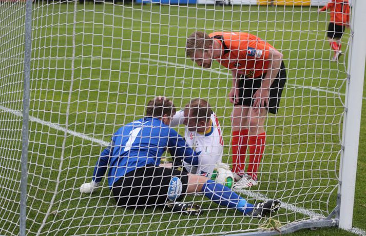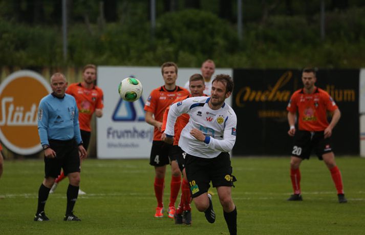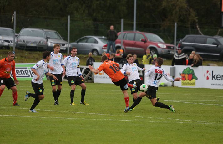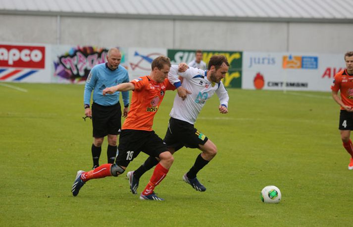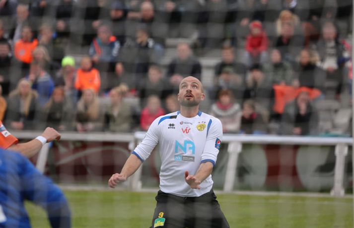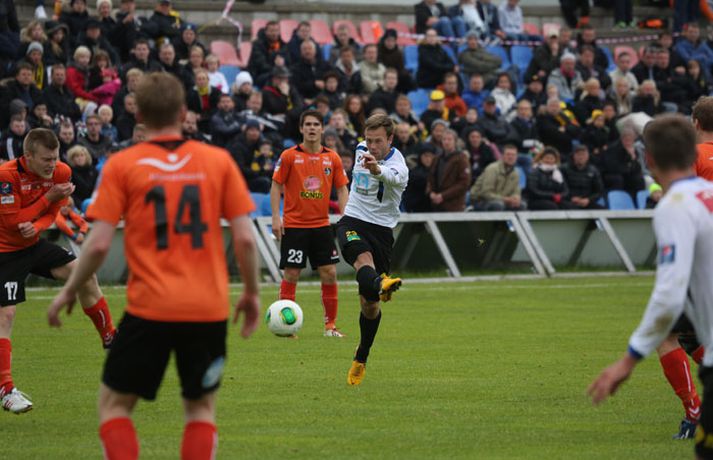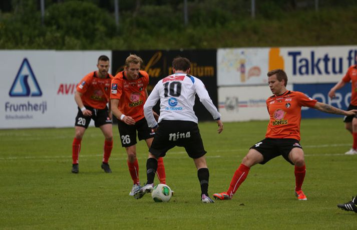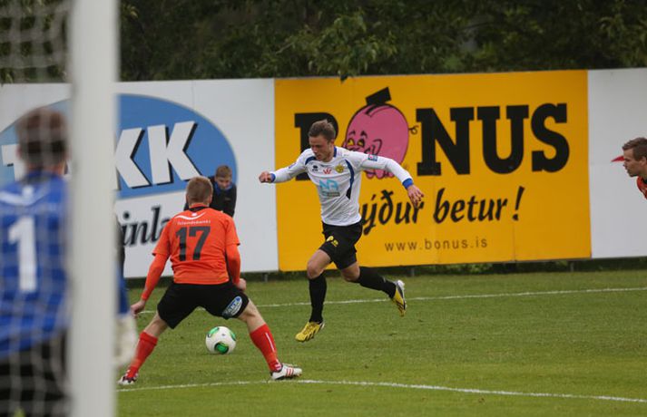 Fylkir og ÍA skildu jöfn í botnslag Pepsi-deildar karla í Árbænum í viðburðarríkum leik í kvöld. Fylkismenn náðu að jafna á lokamínútunum þrátt fyrir að hafa misst mann af velli með rautt spjald í fyrri hálfleik. Tómas Þorsteinsson fékk tvær áminningar í fyrri hálfleik og þar með rautt. Skagamenn komust svo yfir með marki Ármanns Smára Björnssonar á 72. mínútu en Finnur Ólafsson skoraði gott jöfnunarmark fyrir heimamenn undir lokin. Þar með er ljóst að liðin eru enn jöfn að stigum í tveimur neðstu sætum deildarinnar með fjögur stig hvort. Fylkismenn eru enn að bíða eftir fyrsta sigri sínum í sumar en þetta var fyrsta stig liðsins á heimavelli í sumar. Þetta var einnig fyrsta stig Þorvalds Örlygssonar sem þjálfara ÍA. Fylkismenn voru sterkari aðilinn í fyrri hálfleik og duglegir að sækja upp báða vængina. Andrés Már og Ásgeir Örn voru sprækir og þá var Viðar Örn líklegur þegar hann fékk boltann við teig Skagamanna. Heimamönnum gekk þó á löngum köflum ekki nógu vel að skapa sér almennileg færi en þeir náðu þó að halda leikmönnum ÍA algjörlega í skefjum. Gestirnir áttu varla almennilegt færi í fyrri hálfleik og ekkert skot sem rataði í markið. Bakvörðurinn Tómas Þorsteinsson hafði verið duglegur að sækja fram og var misfljótur að skila sér til baka. Hann var ekki í stöðu þegar að Eggert Kári, hægri kantmaður Skagamanna, lagði af stað í sókn. Tómas, sem var með gult á bakinu, renndi sér í boltann en tók Eggert niður um leið. Erlendur Eiríksson, dómari, mat brotið svo að það verðskuldaði aðra áminningu og því var Tómas rekinn í sturtu. Fylkismenn voru ósáttir við þessa niðurstöðu enda virtist tæklingin ekki harkaleg. Fylkismenn fengu þó besta færi fyrri hálfleiksins eftir þetta. Andrés Már sótti aukaspyrnu á hættulegum stað og Árni Freyr átti gott skot að marki sem Páll Gísli varði í stöng. Skagamenn voru því stálheppnir að fara inn í leikhlé með markalausa stöðu. Skagamenn, í yfirtölu, tóku völdin hægt og rólega í seinni hálfleik. Garðar Gunnlaugsson kom boltanum í netið strax á 51. mínútu en það var dæmt af vegna brots á Bjarna Þórði, markverði Fylkis. Bjarni var svo í aðalhlutverki næstu mínúturnar og varði nokkrum sinnum glæsilega frá gestunum. Fylkismenn reyndu að sækja inn á milli en sköpuðu sér lítið meira en nokkur hálffæri. Það kom svo að því að ísinn brotnaði. Bakvörðurinn Joakim Wrele fékk góða sendingu á vinstri kantinum og lagði boltann fyrir markið með fastri sendingu. Ármann Smári var þar mættur á fjærstöng og sendi boltann í markið. Fylkismenn gáfust þó ekki upp og náðu að vinna sig aftur inn í leikinn eftir þetta. Skagamenn ætluðu greinilega að verja stöðuna en pressa heimamanna bar á endanum árangur. Fylkir fór í sókn á 86. mínútu sem hófst úti á vinstri kantinum. Boltinn barst þar inn á teig en Skagamenn lentu í vandræðum með að hreinsa frá. Finnur tók boltann til sín, lék framhjá tveimur varnarmönnum og afgreiddi knöttinn snyrtilega í netið. Fylkir hefði svo getað tryggt sér sigur í uppbótartíma en Páll Gísli varði tvö skot í sömu sókninni. Eftir það fjaraði leikurinn út og liðin þurftu því að sættast á skiptan hlut.Viðar Örn: Ég hef ekkert fengið eftir viðtalið við þjálfara KR „Þetta var ágæt niðurstaða úr því sem komið var en mér fannst bara eitt lið vera á vellinum í kvöld,“ sagði sóknarmaðurinn Viðar Örn Kjartansson eftir 1-1 jafntefli Fylkis og ÍA í kvöld. „Þeir áttu ágætar 20 mínútur en heilt yfir fannst mér þeir vera að reyna að drepa leikinn. Ég veit hreinlega ekki hvað þeir voru að gera,“ sagði hann. „Jafntefli var kannski sanngjarnt úr því sem komið var en við hefðum getað stolið þessu í lokin.“ Tómas Þorsteinsson fékk tvær áminningar í fyrri hálfleik og þar með rautt. Viðar segir ákvörðun dómarans umdeilanlega. „Mér fannst þetta nokkuð „soft“ og kannski klaufalegt hjá okkur. Þeir komust upp með ýmsilegt í leiknum og það má deila um fleiri atvik.“ Leikurinn í kvöld var ekki sá fyrsti í sumar þar sem að Fylkismenn spila betur en úrslitin gefa til kynna. „Mér finnst dæmigært að hafa fengið rautt spjald og svo mark í andlitið í seinni þegar við vorum búnir að vera betri í fyrri hálfleik.“ „Þetta hlýtur að vera eitthvað sálrænt því undir venjulegum kringumstæðum ættum við að vera búnir að skora í fyrri hálfleik. Við verðum að takast á við það - það gerir það enginn annar.“ Viðar Örn fékk gult spjald fyrir leikaraskap í leiknum og hann var ekki ánægður með þann dóm Erlendar Eiríkssonar dómara. „Kári Ársælsson stígur mig út. Ég fékk boltann óvænt og var ekki í neinu jafnvægi. Þetta var því ekki neitt og ég sagði dómaranum það. Samt gefur hann mér gult spjald.“ „Þetta er bara grín. Ég hef varla fengið aukaspyrnu eftir viðtalið við þjálfara KR. Ég var bombaður niður fyrir utan teig í fyrri hálfleik en dómarinn lét leikinn halda áfram.“ „Ég get ekki sagt neitt og skil þetta hreinlega ekki. En ég verð bara að halda áfram.“Þorvaldur: 1-0 forysta á að vera nóg „Miðað við það sem við vorum komnir með í hendi þá er ég ekki ánægður með þessa niðurstöðu,“ sagði Þorvaldur Örlygsson, þjálfari ÍA, eftir leikinn. „En við vorum líka þokkalega heppnir að fá ekki á okkur mark í lokin. En heilt yfir gekk þetta þokkalega vel og leikurinn þróaðist eins og við vildum. Það vantaði bara að klára þetta.“ Garðar Gunnlaugsson skoraði mark í upphafi síðari hálfleiks sem var dæmt af vegna brots í teignum. „Ég er nú ekki alveg viss um á hvað var verið að dæma. Línuvörðurinn flagg