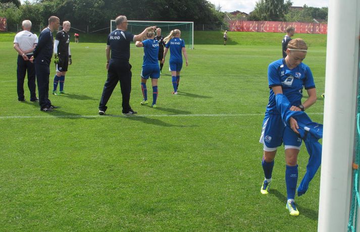 Lars Lagerbäck, þjálfari íslenska karlalandsliðsins í fótbolta, er kominn til Vaxjö og ætlar að aðstoða Sigurð Ragnar Eyjólfsson, þjálfara kvennaliðsins, fram að leiknum á móti Hollandi á miðvikudagskvöld. „Ég er bara kominn til að hjálpa aðeins til," sagði Lars Lagerbäck við íslensku blaðamennina en Sigurður Ragnar var fljótur að redda honum hlutverki. Lars Lagerbäck sá nefnilega um æfingu liðsins í dag ásamt Heimi Hallgrímssyni. Heimir hefur verið með liðinu allan tímann en hann er aðstoðarþjálfari Lars hjá karlaliðinu. Þeir leikmenn íslenska liðsins sem spiluðu á móti Þýskalandi í gær voru reyndar ekki með á þessari æfingu en þar voru aftur á móti allir þeir leikmenn hópsins sem komu ekkert við sögu í gær. Guðný Björk Óðinsdóttir vildi hins vegar vera með og var sú eina sem æfði af þeim fjórtán leikmönnum sem tóku þátt í Þýskalandsleiknum á sunnudagskvöldið.