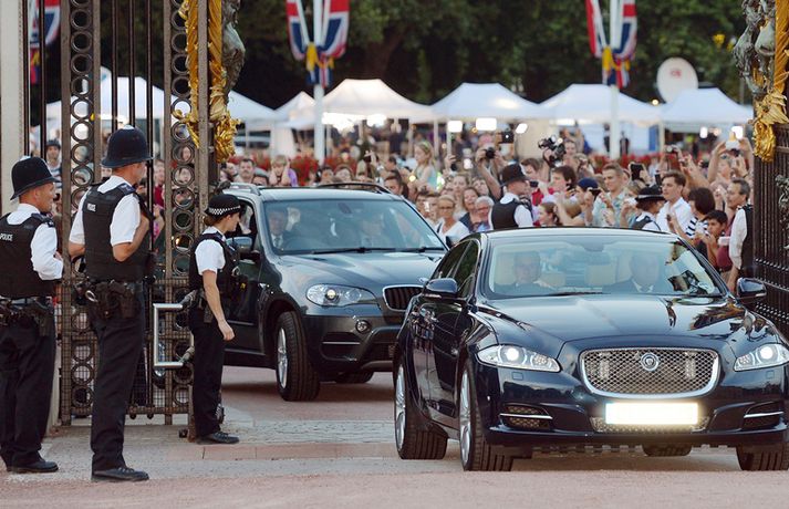 Prinsinn heilsar heiminum Þórhildur Þorkelsdóttir skrifar 23. júlí 2013 18:23 Katrín hertogaynja og Vilhjálmur Bretaprins yfirgáfu St.Mary sjúkrahúsið í Paddington rétt í þessu með nýfæddan son sinn. Þau halda nú heim á leið til Kensington-hallar. Foreldrarnir nýbökuðu ljómuðu af gleði þegar þau gengu út úr sjúkrahúsinu þar sem heimsbyggðin fylgdist með þeim. „Hann er með meira hár en ég," sagði Vilhjálmur meðal annars við fjölmiðla fyrir utan sjúkrahúsið. Þá sagði hann að prinsinn litli líktist móður sinni mikið. Fyrr í dag heimsóttu afar og ömmur litlu fjölskylduna á sjúkrahúsið, foreldrar Katrínar þau Carole og Michael Middleton, og faðir Vilhjálms, Karl Bretaprins kom ásamt Camillu konu sinni. Segja má að breska þjóðin hafi beðið barnsins með mikilli óþreyju síðustu klukkutíma. Talið er að þúsundir blaðamanna og ljósmyndara hafi haldið til fyrir utan sjúkrahúsið síðustu daga, og jafnvel vikur. Drengurinn er 3,8 kíló eða 15 merkur. Hann er númer þrjú í röðinni í erfðaröð bresku krúnunnar. Nafn prinsins hefur ekki enn verið ákveðið.Rikisarfinn litli.Katrín hertogaynja og Vilhjálmur Bretaprins með prinsinn litla á heimleið.Skotið var af fallbyssum til heiðurs prinsinum í dag.Í gærkvöldi kom kallari á tröppur sjúkrahússins og tilkynnti fæðingu prinsins að gömlum sið.Mikill mannfjöldi hefur verið fyrir utan Buckingham-höll síðan í gær og var konungsvörðunum ákaft fagnað við vaktaskiptin í dag.Forsíða The Sun í dag var skondin..Tilkynningin sem var hengd upp fyrir utan Buckingham-höll í gærkvöldi. Tengdar fréttir Prins er fæddur Katrín, hertogaynja af Cambridge, og Vilhjálmur prins eignuðust dreng rétt fyrir klukkan hálf fjögur í dag, eða klukkan 16.24 að staðartíma. 22. júlí 2013 19:39 Erfingjans beðið í beinni Vefmyndavél fylgist grannt með inngangi St. Mary's-spítalans í Lundúnum, þar sem ferða- og fjölmiðlafólk bíður í ofvæni eftir erfingja Katrínar og Vilhjálms. 21. júlí 2013 15:25 Afar og ömmur í heimsókn Katrín hertogaynja af Cambridge og Vilhjálmur Bretaprins hafa fengið heimsókn á spítalann þar sem þau dvelja með nýfæddum syni sínum. 23. júlí 2013 16:09 Konungborið kornabarn kemur í heiminn Katrín, hertogaynja af Cambrigde, er nú komin á St. Mary sjúkrahúsið í Paddington í London. Hún er með hríðir. 22. júlí 2013 09:00 Bretlandsdrottning orðin óþolinmóð Heimsbyggðin bíður þess nú í ofvæni að konunglegt barn komi í heiminn. Sjálf Elísabet bretadrottning er orðin óþreyjufull. 17. júlí 2013 23:37 Bretar bíða barnsfæðingar Mikill mannfjöldi hefur safnast saman við Buckinghamhöll í London þar sem tilkynnt verður þegar nýr ríkisarfi er fæddur. 22. júlí 2013 15:39 Mest lesið Tíu ung börn voru orðin verkjuð og hjólbeinótt vegna beinkramar Innlent Jóhanna ætlar ekki aftur fram Innlent Tortryggnir í garð tolla Trumps Erlent Heiðra minningu Sigurðar Kristófers með Neyðarkallinum í ár Innlent Situr í súpunni eftir að hafa selt bankaþjófi jeppa Innlent Fólk hafi varann á þegar PIN-númer eru slegin inn Innlent Harpa Elín Haraldsdóttir er látin Innlent Játaði hópnauðgun og vildi komast í frí til heimalandsins Innlent Rósa Guðbjarts hætt í bæjarstjórn Innlent Reikna með tveggja daga aðalmeðferð í máli Alberts Innlent Fleiri fréttir Heiðra minningu Sigurðar Kristófers með Neyðarkallinum í ár Jóhanna ætlar ekki aftur fram Rósa Guðbjarts hætt í bæjarstjórn Fólk hafi varann á þegar PIN-númer eru slegin inn Tíu ung börn voru orðin verkjuð og hjólbeinótt vegna beinkramar „Mér finnst þetta bara klaufaskapur“ Vill að þingið skoði mál Ríkisendurskoðanda Fleiri grunaðir en þeir sem voru handteknir Víðfeðm rannsókn, vasaþjófar og börn með beinkröm Þrír vasaþjófar handteknir á Þingvöllum Játaði hópnauðgun og vildi komast í frí til heimalandsins Innsigluðu sex gististaði vegna skorts á leyfum Vasaþjófar höfðu fúlgur fjár af eldri mönnum og ferðamanni „Þau eru mjög æst í stærðfræði!“ „Þetta ástand hefur viðgengist í allt of langan tíma“ Fengu ekki að fylgjast með meintri vændisstarfsemi í leyni Léttir að vinnan í faraldrinum hafi verið lögmæt Níu af hverjum tíu foreldrum leikskólabarna í Reykjavík ánægðir en mælingin ekki samanburðarhæf Situr í súpunni eftir að hafa selt bankaþjófi jeppa Rætt við ráðherra sem svarar gagnrýni og ósáttan Litháa sem flæktist í bankaránið umfangsmikla Bein útsending: Hvernig skilar jarðhitafræðsla sér í sjálfbærri þróun í orkumálum í samstarfslöndum? Ferðin á Keflavíkurflugvöll það erfiðasta við utanlandsferðina Hæstiréttur ógildir skammir Persónuverndar í garð ÍE Óttast að stóru stofurnar gætu orðið einræðisherrar í eftirliti Reikna með tveggja daga aðalmeðferð í máli Alberts Stóladans þingmanna lækkar launatékka Karls Gauta en hækkar Bergþórs Ökutæki viðbragðsaðila verða áberandi vegna æfingar Gat keypt afmælisblómin eftir að ókunnugur mætti með skóflu Íslenskum fulltrúum á loftslagsráðstefnu hríðfækkar milli ára Lokunardagar leikskóla í Reykjavík tíu sinnum algengari en í öðrum stórum sveitarfélögum Sjá meira