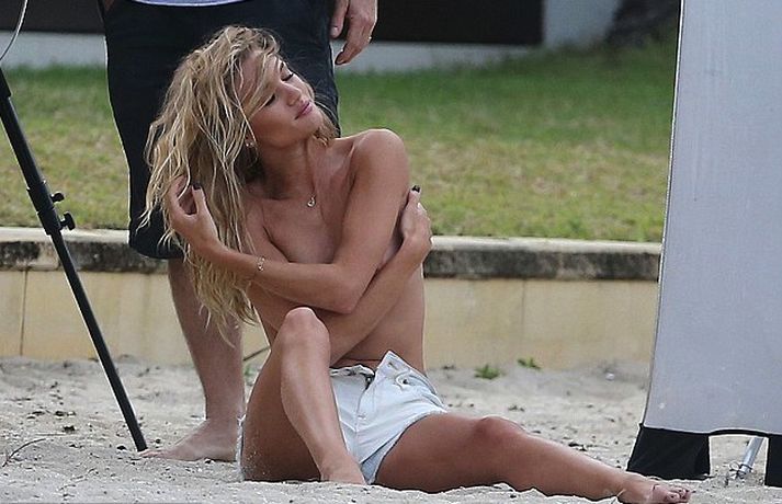 Fyrirsætan Rosie Huntington-Whiteley reif sig úr að ofan til að pósa fyrir myndavélarnar á Hayman-eyjum fyrir stuttu. Rosie var að sjálfsögðu í vinnunni og verða myndirnar notaðar til að auglýsa snyrtivörur frá ástralska fyrirtækinu ModelCo en Rosie er andlit snyrtivaranna.Stuð á ströndinni.Rosie klæddist aðeins stuttbuxum í myndatökunni og sýndi sína frægu, löngu leggie ins og henni einni er lagið.Vindur í hári.Hendur á brjóstum.Dragðu Tarotspil dagsins hér.