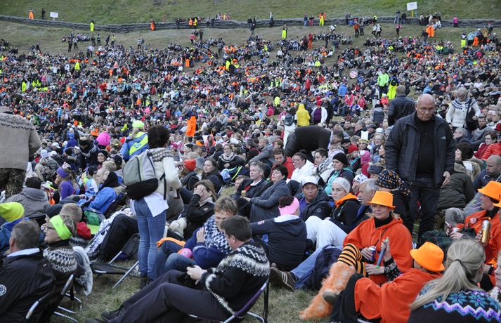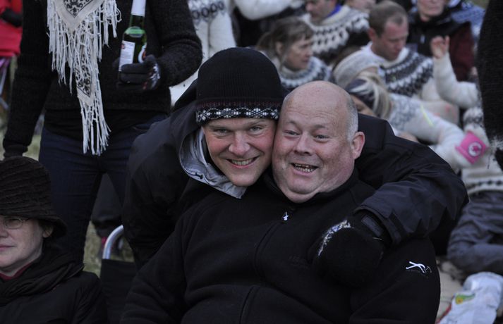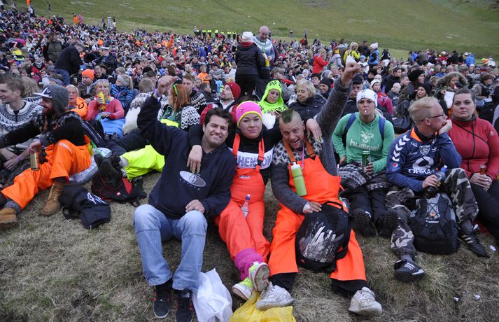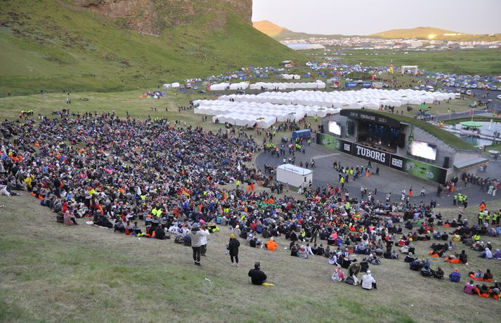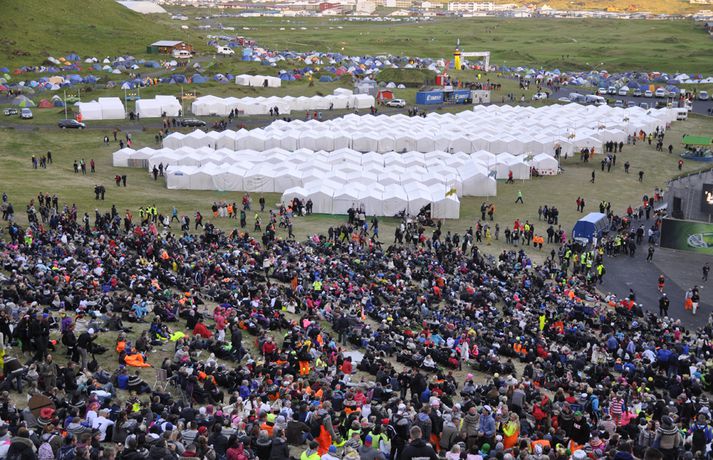 Gríðarlega góð stemning var í Eyjum í gær og skemmtu 13 þúsund manns á öllum aldri sér saman í Dalnum. Dagskráin var þéttskipuð stórum nöfnum og stigu á svið menn á borð við Ásgeir Trausta, Unnsteinn og félagar í Retro Stefson, Gus Gus, Sálin og Ingó og Veðurguðirnir. Flugeldasýningin þótti einstaklega vegleg í ár. Sjá má fjöldann allan af myndum í myndasafninu hér að ofan. Unnsteinn Manuel Stefánsson, söngvari Retro Stefson, spilaði fyrir troðfullan dalinn í gær og sagði það hafa verið mjög gaman. „Við vorum að spila þarna í fyrsta sinn. Sjálfur var ég meira að segja bara að koma til Vestmannaeyja í annað sinn.“ Hann sagðist ekki hafa hitt marga Þjóðhátíðargesta sökum vinnuskipulags hljómsveitarinnar. „Við komum, spiluðum og fórum,“ útskýrir hann en sagðist þó hafa náð að sjá hljómsveitina Gus Gus stíga á stokk. „Það sem var ólíkt við að spila á Þjóðhátíð og á festivölum úti í heimi er að úti þekkir fólk kannski eitt til tvö lög. Í Eyjum þekktu áhorfendur öll lögin og sungu með allan tímann.“ Haraldur Ari Stefánsson, sem er búsettur í London og stundar þar leiklistarnám, slóst í för með hljómsveitinni á nýjan leik eftir stutta pásu. „Það var mjög gaman að hafa Harald með aftur. Við verðum miklu meira rappgengi á stórum sviðum.“ Retro Stefson spila á balli á Mýrarboltanum sem haldinn er á Ísafirði í kvöld.„Það var himneskt í Eyjum,“ segir rapparinn Ágúst Bent Sigbertsson en hann steig á svið á föstudagskvöldi með Rottweiler-hundum. „Það gekk vel að spila. Við dönsuðum og dilluðum okkur,“ segir hann. „Þetta gekk eins og í draugasögu.“ Bent segist vera mikill landshornaflakkari og var hann kominn á Ísafjörð þegar Vísir náði af honum tali. „Það er skemmtilegra fólk hér á Ísafirði en það var eiginlega betra í Eyjum. Þar var mun betra veður, það er frekar leiðinlegt veður hér.“ Hann segir ekki mikla ölvun hafa verið í Dalnum. „Það er ekki hægt að vera of fullur, rétt eins og það er ekki hægt að vera of massaður eða of tanaður.“ Skemmtunin heldur áfram í kvöld. Verður Vísir með beina útsendingu frá Brekkusöngnum undir forystu Ingólfs Þórarinssonar. Búist er við að 15 þúsund manns láti sjá sig í Dalnum í kvöld.