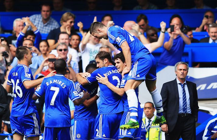 Chelsea vann öruggan sigur í fyrsta leiknum hans Mourinho Óskar Ófeigur Jónsson skrifar 18. ágúst 2013 14:30 Mynd/NordicPhotos/Getty Chelsea byrjar vel undir stjórn Jose Mourinho en liðið vann 2-0 sigur á Hull í fyrstu umferð ensku úrvalsdeildarinnar í dag. Chelsea átti að skora miklu fleiri mörk en þau tvö sem liðið náði að skora. Fernando Torres fiskaði víti strax á 5. mínútu leiksins en Frank Lampard lét verja frá sér spyrnuna. Lampard átti nú eftir að bæta fyrir það. Oscar skoraði fyrsta markið á 13. mínútu eftir frábæra sókn og stoðsendingu frá Kevin De Bruyne. Frank Lampard kom Chelsea síðan í 2-0 með skoti beint úr aukaspyrnu á 25. mínútu. Chelsea-liðið var frábært í fyrri hálfleiknum og gestirnir frá Hull gátu þakkað fyrir að vera bara 0-2 undir í hálfleik. Það gekk aðeins betur hjá Hull í seinni hálfleiknum en sigur Chelsea-liðsins var aldrei í hættu. Mörkin urðu þá ekki fleiri en tvö. Enski boltinn Mest lesið Guðmundur svekktur eftir sniðgöngu: „Finnst þetta dónalegt“ Handbolti Fengu símtal frá brjáluðum Gumma Gumm um niðdimma nótt Handbolti Í bann fyrir „gróft brot“ á kynfærum tveggja mótherja Enski boltinn Hafþór hrósar læknum „Steraleikanna“ og segist treysta þeim alveg Sport Heimasíða EM í handbolta spáir Íslandi á verðlaunapallinn Handbolti City fer með góða forystu inn í seinni leikinn gegn Newcastle Fótbolti Þrír af Strákunum okkar í upptalningu á þeim bestu fyrir EM Handbolti Uppgjöfin fyrir Mbappé hafi markað endalok Alonso Fótbolti Extra-leikarnir: „Fannst þessi einkunnagjöf lykta af smá Kópavogsmeðvirkni“ Körfubolti Samningur í höfn hjá Carrick og Manchester United Enski boltinn Fleiri fréttir Carrick tekinn við Manchester United Hvað sagði verðandi þjálfari United í einkaviðtali við Sýn Sport? Samningur í höfn hjá Carrick og Manchester United Szoboszlai skoraði stórglæsilegt mark en var sakaður um vanvirðingu Í bann fyrir „gróft brot“ á kynfærum tveggja mótherja Liverpool áfram í bikarnum og mætir Brighton í næstu umferð Velur Tottenham fram yfir Aston Villa Mætir spútnikliðinu: Íslendingar í pottinum er dregið var í enska bikarnum Myndi ekki neita ef Carrick byði honum í sitt teymi Búast við því að Carrick verði kynntur hjá United innan tíðar Mátti ekki koma inn á vegna þess að hún var með eyrnalokk Fæstir leikir hjá Man Utd síðan í fyrri heimsstyrjöld Mætir Liverpool en fær gæsahúð þegar hann heyrir „You'll Never Walk Alone“ Carrick nú talinn líklegastur til að taka við Man Utd „Myndum að sjálfsögðu taka honum opnum örmum“ Mikel Arteta hrósaði Arne Slot Bruno Fernandes hakkaður í gærkvöldi Dagskráin í dag: Liverpool í bikarnum og síðasta lausa sætið í NFL Solskjær ekki lengur líklegastur Fletcher segir leikmenn Man. Utd viðkvæma Veik von Man. Utd um titil úr sögunni Loksins unnu Hamrarnir eftir framlengdan leik Martinelli og hornspyrnur hetjurnar Bradley frá út tímabilið | Fer Liverpool á markaðinn? Viðsnúningur hjá Leeds sem fer áfram Miðvarðaæði Liverpool Minntust nýlátins félaga og foreldrarnir mættu í klefann Nýr stjóri Chelsea fékk óskabyrjun Draumur Villa lifir en eru dagar Franks taldir? Draumaprinsinn Benoný sendi aðdáendum kveðju Sjá meira