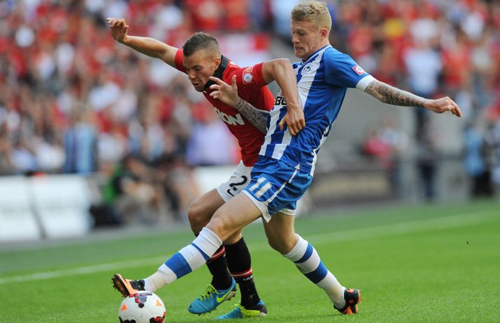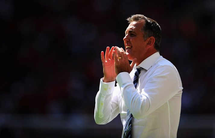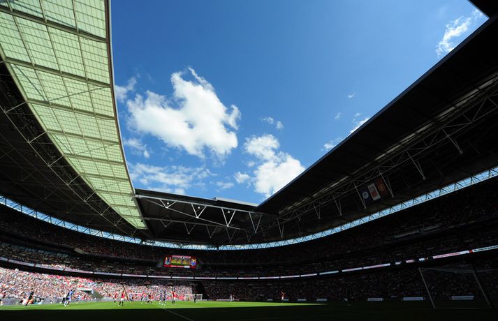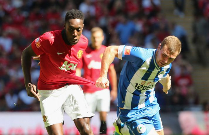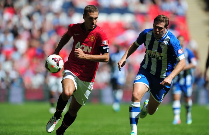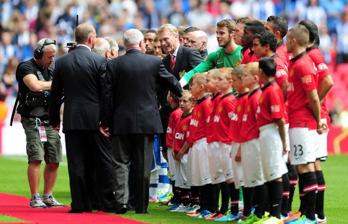 Moyes skilaði fyrsta titlinum í hús Kristinn Páll Teitsson skrifar 11. ágúst 2013 14:51 Manchester United vann nokkuð þægilegan 2-0 sigur á Wigan í leiknum um Samfélagsskjöldinn á Wembley í dag. David Moyes hefur því landað sínum fyrsta titli í starfi sem knattspyrnustjóri Mancheser United. Wigan náði óvænt að leggja nágranna United, Manchester City í bikarúrslitaleiknum á síðasta tímabili þrátt fyrir að falla úr úrvalsdeildinni. Það var hinsvegar aldrei neitt óvænt í myndinni í dag. Robin Van Persie, markakóngur síðasta tímabils, skoraði fyrsta mark leiksins eftir rúmlega sex mínútur með góðum skalla eftir fyrirgjöf frá Patrice Evra. Van Persie skoraði annað mark leiksins þegar tæplega korter var búið af seinni hálfleik. Þá fékk Hollendingurinn boltann við vítateigslínuna en skot hans hrökk af varnarmanni og framhjá Scott Carson í marki Wigan. United menn fóru aldrei úr öðrum gír í leiknum en unnu nokkuð sannfærandi. Sigurinn var kærkominn eftir brösugt gengi á undirbúningstímabilinu þar sem þeir unnu aðeins tvo leiki af sjö. Þetta var síðasti leikur liðsins áður en deildin byrjar næstu helgi þar sem þeir ferðast til Wales og mæta Swansea í fyrstu umferð. Enski boltinn Mest lesið Áhugamaður vann meistarann og milljón dollara Sport Martraðarbyrjun hjá Arbeloa í Madríd Fótbolti „Þetta get ég og þarf að gera oftar“ Enski boltinn Heimamenn Marokkó í úrslitaleikinn eftir vítaspyrnukeppni Fótbolti Skytturnar með forystuna en Garnacho stal þrumunni af Gyökeres Enski boltinn Guðmundur svekktur eftir sniðgöngu: „Finnst þetta skammarlegt“ Handbolti Ungverski línumaðurinn verður ekki með á EM Handbolti Tómas Bent gulltryggði sigurinn Fótbolti Skotinn til bana í jarðarför móður sinnar Fótbolti Eitt félag hefur grætt mest á mistökum VAR Enski boltinn Fleiri fréttir „Þetta get ég og þarf að gera oftar“ Skytturnar með forystuna en Garnacho stal þrumunni af Gyökeres Guardiola segir að Haaland sé úrvinda Segir ósanngjarnt að kalla Arsenal „Set Piece FC“ Eitt félag hefur grætt mest á mistökum VAR Benoný kom inn á og breytti leiknum Carrick tekinn við Manchester United Hvað sagði verðandi þjálfari United í einkaviðtali við Sýn Sport? Samningur í höfn hjá Carrick og Manchester United Szoboszlai skoraði stórglæsilegt mark en var sakaður um vanvirðingu Í bann fyrir „gróft brot“ á kynfærum tveggja mótherja Liverpool áfram í bikarnum og mætir Brighton í næstu umferð Velur Tottenham fram yfir Aston Villa Mætir spútnikliðinu: Íslendingar í pottinum er dregið var í enska bikarnum Myndi ekki neita ef Carrick byði honum í sitt teymi Búast við því að Carrick verði kynntur hjá United innan tíðar Mátti ekki koma inn á vegna þess að hún var með eyrnalokk Fæstir leikir hjá Man Utd síðan í fyrri heimsstyrjöld Mætir Liverpool en fær gæsahúð þegar hann heyrir „You'll Never Walk Alone“ Carrick nú talinn líklegastur til að taka við Man Utd „Myndum að sjálfsögðu taka honum opnum örmum“ Mikel Arteta hrósaði Arne Slot Bruno Fernandes hakkaður í gærkvöldi Dagskráin í dag: Liverpool í bikarnum og síðasta lausa sætið í NFL Solskjær ekki lengur líklegastur Fletcher segir leikmenn Man. Utd viðkvæma Veik von Man. Utd um titil úr sögunni Loksins unnu Hamrarnir eftir framlengdan leik Martinelli og hornspyrnur hetjurnar Bradley frá út tímabilið | Fer Liverpool á markaðinn? Sjá meira