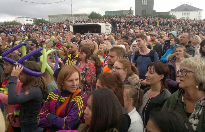 Gleðiganga Hinsegin daganna lagði af stað klukkan 14 í dag og er margt um manninn í miðbæ Reykjavíkur. Borgarstjóri Reykvíkinga, Jón Gnarr, er á meðal þeirra fjölmörgu sem tóku þátt í göngunni í ár en að þessu sinni klæddist hann íslenskum þjóðbúningi frá Þjóðdansafélagi Íslands. Poppkóngurinn Páll Óskar var aldrei þessu vant ekki á palli í göngunni en var þó að sjálfsögðu á meðal þeirra sem veifuðu skiltum, samkynhneigðum til stuðnings. Að sögn viðstaddra er gríðarlegur mannfjöldi í miðbænum en tónleikar hefjast nú kl. 16 á Austurvelli með mörgum af okkar allra vinsælustu skemmtikröftum.