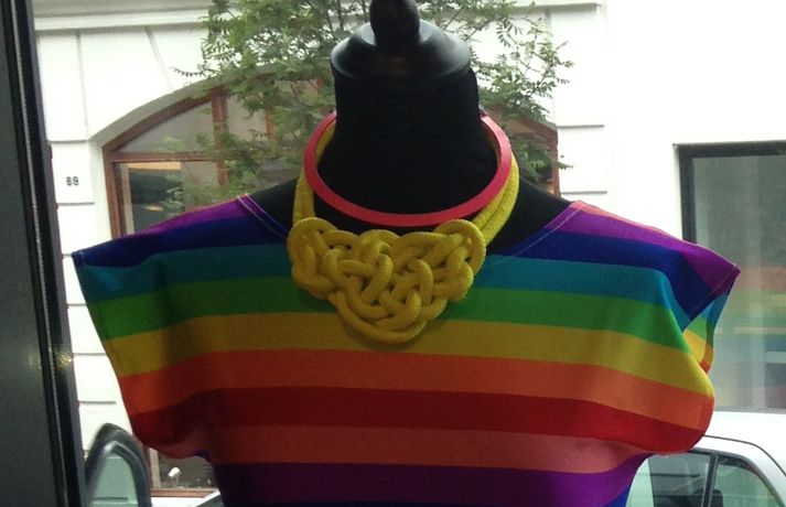 Verslunin Kjólar & konfekt heldur rækilega upp á hinsegin dagana í dag og bjóða starfsmenn verslunarinnar meðal annars upp á heimabakaða regnbogaköku með kaffinu. Er dagurinn í dag sannkallaður regnbogadagur í versluninni þar sem allir starfsmenn verða klæddir í regnbogakjóla og útstillingin í glugganum er í öllum regnbogans litum.Anna Kristín Magnúsdóttir, eigandi Kjólar & konfekt, hlakkar gífurlega til dagsins þó hún hafi verið að baka regnbogakökuna langt fram eftir miðnætti í gær. “Það verður mikið húllumhæ í bænum í dag og við ætlum svo sannarlega að taka þátt í því. Við vildum gera eitthvað skemmtilegt í búðinni í tilefni hinsegin daga og fagna þeim rækilega,” segir hún í dúndurstuði á þessum laugardagsmorgni.Hægt er að fá naglalakk í öllum regnbogans litum í Kjólar & konfekt.Þetta er ekki í fyrsta sinn sem Anna Kristín tekur upp á því að gefa lífinu lit á Laugaveginum. Starfsmenn verslunarinnar vöktu óskipta athygli á sjómannadaginn þegar þeir klæddust allir glæsilegum matrósakjólum. Alltaf líf og fjör í þessari fallegu kjólabúð á Laugavegi 92 en gestir geta gætt sér á regnbogakökunni frægu frá klukkan 13 til 17 í dag.Facebook-síða Kjóla & konfekts.Hver sem er getur fjárfest í regnbogakjól í tilefni dagsins.Hér er Anna Kristín önnur til vinstri. Þessi mynd er tekin á sjómannadaginn síðasta.Dragðu Tarotspil dagsins hér.