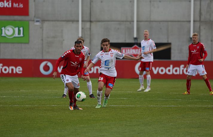 Valur og Þór gerðu 2-2 jafntefli á Vodafone vellinum í kvöld. Þór var 1-0 yfir eftir bragdaufan fyrri hálfleik en mikið fjör var í þeim seinni en Valsmenn voru einum færri í tæpan hálftíma. Valsmenn byrjuðu leikinn betur en Þór náði að vinna sig inn í leikinn er leið á hálfleikinn og voru mun sterkari seinni hluta fyrri hálfleiks og komust verðskuldað yfir þegar Mark Tubæk skoraði á 37. mínútu eftir laglegan samleik í teig Vals. Valsmenn komu mjög ákveðnir út í seinni hálfleik og jafnaði Matarr Jobe metin strax á 49. mínútu. Þór tók miðju, lék upp vinstri vænginn og Jóhann Helgi Hannesson skallaði boltann í netið þó skallinn hafi verið svo gott sem beint á Fjalar Þorgeirsson markvörð Vals. Fjörið var ekki búið því átta mínútum síðar jafnaði Valur metin á nýjan leik. Patrick Pedersen skoraði þá eftir glæsilegan samleik í teig Þórs. Mínútu síðar fékk Daniel Craig Racchi gula spjaldið og tveimur mínútum síðar fékk hann annað gult spjald og Valsmenn því einum færri í tæpan hálftíma. Valsmenn náðu að loka vel á Þór einum færri en samt sem áður þurfti Fjalar að verja í tvígang og bjargaði þar stigi fyrir Val. Þetta var þriðja jafntefli Þórs í röð en liðið er þremur stigum frá fallsæti í þéttum pakka í botnbaráttunni. Valur er með 25 stig í 5. sæti, með öruggt sæti í deildinni og búið að missa af toppbaráttunni. Magnús: Svona hefur ekki gerst í yngri flokkum„Við ætluðum okkur sigur hér á heimavelli og erum gríðarlega svekktir með þetta,“ sagði Magnús Gylfason þjálfari Vals. „Fyrri hálfleikur var jafn. Við byrjuðum leikinn ágætlega en duttum svo niður og þeir komast inn í leikinn og komast yfir. Við rifum okkur upp af rassgatinu í seinni hálfleik og náðum að jafna. „Það gerist eitthvað ótrúlegt sem ég fatta ekki. Þeir spila boltanum inn í okkar eigið mark án þess að við snertum hann aftur. Það hefur aldrei gerst, ekki einu sinni í yngri flokkum þegar ég hef þjálfað. Þetta óskiljanlegt mark að mínu viti en svona gerast hlutirnir. Við héldum áfram og spiluðum seinni hálfleikinn ágætlega en þetta er ekki í þeim gæðaflokki sem ég ætlast til að Valsliðið sé. „Ég var gríðarlega svekktur með að fá rautt spjald. Menn eiga að geta spilað með gult á bakinu. Hann er óheppinn þegar hann fær seinna gula spjaldið. Leikmaður Þórs rekur hælana í hann en hann var allt of nálægt honum. Hann var æstur á þessum tíma og hefði átt að róa sig en hann var ekki að sparka einhvern niður eða hlaupa á eftir mönnum eða stökkva með tvær fætur á undan sér. Hann fékk bara einhver tvö gul spjöld og við verðum að sætta okkur við það,“ sagði Magnús sem gat ekki notað Hauk Pál Sigurðsson vegna meiðsla í dag. Annar miðjumaður Iain James Williamson fór meiddur af leikvelli undir lok fyrri hálfleiks. „Þetta er staðan sem við höfum verið í í sumar, að ströggla með miðjumenn. Þeir eru seldir og meiddir. Þeir fá spjöld, gul og rauð og allan pakkann. Við verðum að skoða það fyrir næsta leik, það er stutt í næsta leik sem betur fer. Það er gott að það sé stutt í næsta leik þegar maður er svekktur og lítill tími til að velta hlutunum of mikið fyrir sér. „Williamson verður ekki með gegn KR en við getum vonandi tjaslað Hauki Páli saman,“ sagði Magnús. Páll: Fórum aftur til fortíðar og börðumst„Ég er búinn að telja upp að tíu og þetta er klárlega eitt stig unnið fyrir okkur,“ sagði Páll Viðar Gíslason þjálfari Þórs. „Leikurinn gat dottið okkar megin, það er ekki spurning. Við vorum ekki alveg nógu graðir en hann bjargaði þeim á loka mínútunum. Að sama skapi hleyptum við þeim í aksjón í hinum teignum. Fyrirfram hefði ég tekið stigið miðað við söguna, okkur hefur gengið erfiðlega með Val,“ sagði Páll en Þór hefur ekki unnið Val í deildarkeppni síðan í júní 1994. „Það sem ég tek út úr þessu er að Þórsliðið barðist hver fyrir annan hér í kvöld. Menn gerðu það sem fyrir var lagt en við erum ennþá að glíma við einstaklings mistök sem eru að kosta okkur mikið. Heilt yfir er ég sáttur við leik okkar í kvöld og það hefði ekki þurft miklu að muna til að við næðum þremur stigum. „Við náðum að klára, tvær, þrjár sóknir sem markmaðurinn varði mjög vel. Það stóð tæpt en við fengum líka á okkur færi einum fleiri og erum kannski ekki nógu graðir fram á við en auðvitað verðum við að virða stigið sem við erum með og vera ekki of æstir fram á við. „Við erum í harðri baráttu og nú erum við í þeim kafla þar sem við mætum þessum liðum sem við reyttum stig af í fyrri umferðinni. Liðin sem eru í kringum okkur eins og Víkingur Ólafsvík og Fylkir. Við erum með fjögur stig á móti þessum liðum og eigum eftir að mæta þeim fleirum. Þetta eru stóru stigin þó við teljum okkur eiga efni á að stríða honum liðunum líka. Það er ekki svo að við séum að fara í þá með hangandi haus. Það sást í kvöld að okkur langaði mikið til að fá þrjú stig en það tókst ekki. Ég er ánægður að við fórum aftur til fortíðar og börðumst á kostnað kannski knattspyrnunnar og við fengum stig. Við það er ég sáttur,“ sagði Páll.