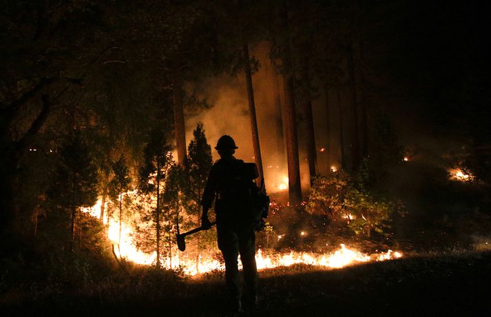 Neyðarástand í San Francisco: 5.500 heimili í hættu Hjörtur Hjartarson skrifar 25. ágúst 2013 10:26 Eldurinn hefur nú logað í um vikutíma í vesturhluta Sierra Nevada fjallgarðinum Myndir/AP Ríkisstjóri Kaliforníu, Jerry Brown, hefur lýst yfir neyðarástandi í San Francisco vegna skógarelda sem nú geisa í Yosemite-þjóðgarðinum, rúmlega 200 kílómetra frá borginni. Yfirvöld telja að eldurinn geti ógnað raforku og vatnsbirgðum borgarinnar. Eldurinn hefur nú logað í um vikutíma í vesturhluta Sierra Nevada fjallgarðinum og eru um 5.500 heimili talin eiga það á hættu að verða eldinum að bráð. Ríflega 2.600 slökkviliðsmenn berjast nú við eldinn en illa gengur þó að koma böndum á eldinn. Í gær hafði eldurinn þrefaldast að styrk á einum sólahring. Allt kapp er nú lagt á að stöðva útbreiðslu eldsins í þjóðgarðinum sem er einn af vinsælustu ferðamannastöðum í ríkinu. Mest lesið Fátækari eftir að hafa svindlað á ferðakonum Innlent Tveir lögreglumenn sprengdir í loft upp Erlent Hvar er opið á aðfangadag? Innlent Blússandi hagvöxtur í Bandaríkjunum Erlent Minni rekstrarkostnaður fyrir eigendur bensínháka Innlent Bæta við allt að 200 íbúðum og mathöll í Spöngina Innlent Foreldrar skipverjans fá áheyrn í Hæstarétti Innlent Maður í umferðarslysi reyndist fíkniefnasali Innlent Innflytjendamálin almenningi efst í huga Innlent Innanlandsflugi aflýst Innlent Fleiri fréttir Tveir lögreglumenn sprengdir í loft upp Blússandi hagvöxtur í Bandaríkjunum Nýjar ákærur á hendur Russell Brand Fleiri Epstein-skjöl birt: Bað um „óviðeigandi vinkonur“ Saka AfD um að ganga erinda Kremlverja Kínverjar og Rússar lýsa yfir stuðningi við Venesúela Skapari Call of Duty lést í bílslysi Trump nefnir nýja kynslóð orrustuskipa í höfuðið á sjálfum sér „Bandaríkin eiga ekki að taka yfir Grænland“ Nýr ritstjóri stöðvaði umfjöllun um brottvísanir Trump Breiddi út faðminn fyrir rasista: „Þið þurfið ekki að biðjast afsökunar á að vera hvít lengur“ Sprengdu rússneskan hershöfðingja í loft upp í Moskvu Undirbúningur árásarinnar stóð yfir í marga mánuði Trump skipar sendifulltrúa fyrir Grænland Segir unnið að því að móta sameiginlega nálgun Bandaríkjanna, Úkraínu og Evrópu Sýknaður af nauðgun eftir að hafa verið skimaður fyrir sjaldgæfri svefnröskun Málið sem Trump getur ekki losað sig við Grunaður um manndráp eftir að tveggja ára drengur féll úr blokk Fóru um borð í vélvana rússneskt skip Baulað á Albanese á minningarathöfn á Bondi-strönd Kvarta yfir ritskoðun Epstein-skjala: „Við vitum ekki hvað við vitum ekki“ Níu skotnir til bana á krá Sextán ára fékk greitt fyrir að færa Epstein stúlkur Ljósmyndir horfnar úr Epstein-skjölunum, þar á meðal ein af Trump Vilja dauðarefsingu af borðinu vegna hagsmunaáreksturs ráðherra Pútín sagður hafa valið Witkoff Gerðu umfangsmiklar árásir gegn ISIS í Sýrlandi Það helsta úr fyrsta skammti Epstein-skjalanna Epstein-skjölin birt Draga tilvist neðanjarðarhafs á Títan í efa Sjá meira