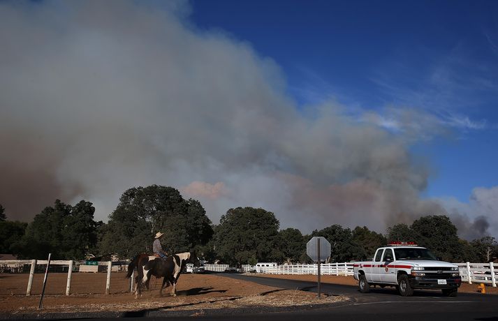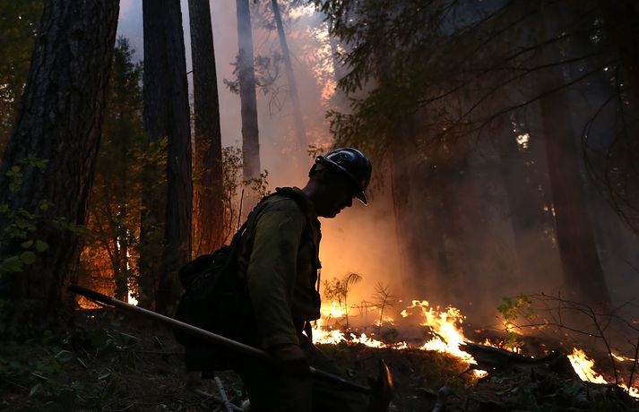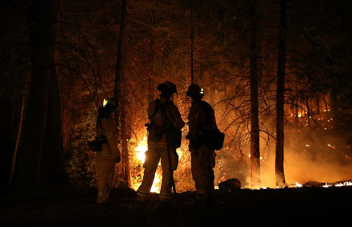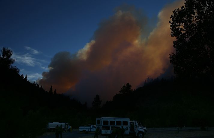 Eldar loga við Yosemite-þjóðgarðinn 23. ágúst 2013 10:55 Eldarnir hafa nú logað í heila viku en tóku verulega við sér í gær. Myndir/AFP Miklir skógareldar í nágrenni Yosemite-þjóðgarðsins í Kalíforníu hafa flæmt ferðamenn í burtu á háannatíma og þá ógna þeir um þúsund heimilum á svæðinu. Eldarnir hafa nú logað í heila viku en tóku verulega við sér í gær og þrefaldaðist svæðið sem nú brennur á. Eldarnir ná nú yfir 217 ferkílómetra. 1.300 slökkviliðsmenn hafa barist við eldinn við erfiðar aðstæður en hafa aðeins náð tökum á einu prósenti af svæðinu. Mest lesið Fátækari eftir að hafa svindlað á ferðakonum Innlent Hvar er opið á aðfangadag? Innlent Tveir lögreglumenn sprengdir í loft upp Erlent Blússandi hagvöxtur í Bandaríkjunum Erlent Minni rekstrarkostnaður fyrir eigendur bensínháka Innlent Bæta við allt að 200 íbúðum og mathöll í Spöngina Innlent Foreldrar skipverjans fá áheyrn í Hæstarétti Innlent Maður í umferðarslysi reyndist fíkniefnasali Innlent Arion banki varar við svikaherferð Innlent Innflytjendamálin almenningi efst í huga Innlent Fleiri fréttir Kynnti drög að nýrri friðaráætlun Tveir lögreglumenn sprengdir í loft upp Blússandi hagvöxtur í Bandaríkjunum Nýjar ákærur á hendur Russell Brand Fleiri Epstein-skjöl birt: Bað um „óviðeigandi vinkonur“ Saka AfD um að ganga erinda Kremlverja Kínverjar og Rússar lýsa yfir stuðningi við Venesúela Skapari Call of Duty lést í bílslysi Trump nefnir nýja kynslóð orrustuskipa í höfuðið á sjálfum sér „Bandaríkin eiga ekki að taka yfir Grænland“ Nýr ritstjóri stöðvaði umfjöllun um brottvísanir Trump Breiddi út faðminn fyrir rasista: „Þið þurfið ekki að biðjast afsökunar á að vera hvít lengur“ Sprengdu rússneskan hershöfðingja í loft upp í Moskvu Undirbúningur árásarinnar stóð yfir í marga mánuði Trump skipar sendifulltrúa fyrir Grænland Segir unnið að því að móta sameiginlega nálgun Bandaríkjanna, Úkraínu og Evrópu Sýknaður af nauðgun eftir að hafa verið skimaður fyrir sjaldgæfri svefnröskun Málið sem Trump getur ekki losað sig við Grunaður um manndráp eftir að tveggja ára drengur féll úr blokk Fóru um borð í vélvana rússneskt skip Baulað á Albanese á minningarathöfn á Bondi-strönd Kvarta yfir ritskoðun Epstein-skjala: „Við vitum ekki hvað við vitum ekki“ Níu skotnir til bana á krá Sextán ára fékk greitt fyrir að færa Epstein stúlkur Ljósmyndir horfnar úr Epstein-skjölunum, þar á meðal ein af Trump Vilja dauðarefsingu af borðinu vegna hagsmunaáreksturs ráðherra Pútín sagður hafa valið Witkoff Gerðu umfangsmiklar árásir gegn ISIS í Sýrlandi Það helsta úr fyrsta skammti Epstein-skjalanna Epstein-skjölin birt Sjá meira