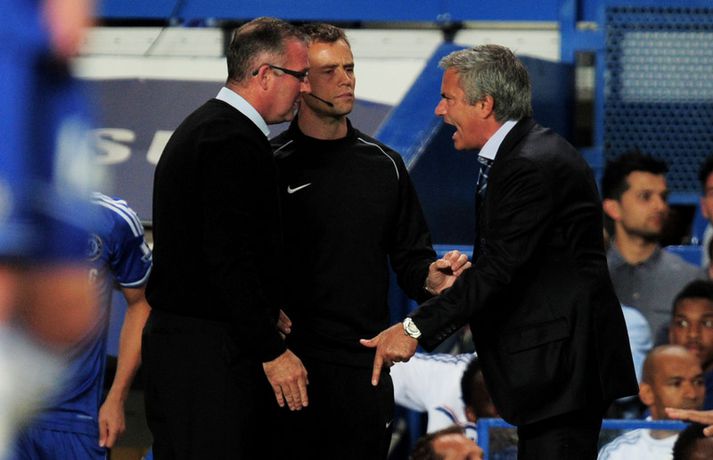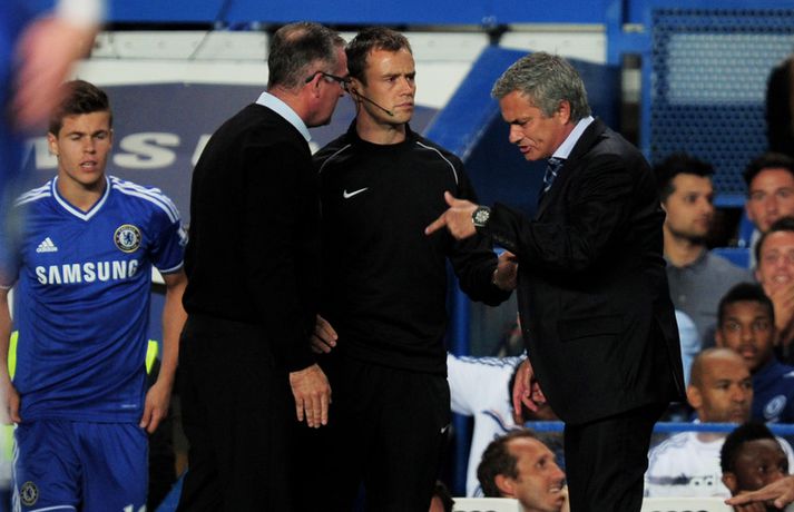 Mourinho: Lambert minnir mig á sjálfan mig þegar ég var ungur Óskar Ófeigur Jónsson skrifar 21. ágúst 2013 21:15 Jose Mourinho og Paul Lambert. Mynd/NordicPhotos/Getty Chelsea er búið að vinna tvo fyrstu leiki sína undir stjórn Jose Mourinho og Portúgalinn var ánægður eftir 2-1 heimasigur á Aston Villa í kvöld. „Þetta var mjög erfiður leikur og það er útaf svona leikjum að ég hef saknað ensku úrvalsdeildarinnar. Við unnum flesta leiki á Bernabeu frekar auðveldlega og en þessi var mjög erfiður. Ég sagði við Paul Lambert að þeir hefðu átt skilið að fá eitt stig," sagði Jose Mourinho við BBC eftir leikinn. „Þeir börðust mikið og spiluðu sinn leikstíl sem er ekki leikstíll sem ég vill spila. Þeir eiga mjög sérstakan leikmann í Christian Benteke og hann er stór strákur sem lætur finna vel fyrir sér. Þeir eru líka hættulegir í skyndisóknunum," sagði Mourinho. „Paul Lambert minnir mig á mig þegar ég var yngri. Núna kvarta ég yfir nokkrum atriðum en á hans aldri kvartaði ég líka yfir öllu. Paul kvartar yfir öllu eins og ég gerði. Benteke og Ivanivic eru tveir risar og þetta var bara 50/50 barátta um stöðu," sagði Jose Mourinho um hvort að Branislav Ivanovic hefði átt að fá rauða spjaldið áður en hann skoraði sigurmark Chelsea. Enski boltinn Mest lesið Þrír af Strákunum okkar í upptalningu á þeim bestu fyrir EM Handbolti Liverpool áfram í bikarnum og mætir Brighton í næstu umferð Enski boltinn Meistaraþjálfari danska landsliðsins segist hafa breytt um stíl Handbolti Þegar Dagur féll á lyfjaprófi: „Var með magasár í hálft ár“ Handbolti Búast við því að Carrick verði kynntur hjá United innan tíðar Enski boltinn KR ekki í teljandi vandræðum með að tryggja sig í undanúrslit Körfubolti Litla liðið í París sló út stórveldi PSG Fótbolti Sjáðu magnaða vörslu hins 43 ára Gordon: „Ein mín besta á ferlinum“ Fótbolti Mætir Liverpool en fær gæsahúð þegar hann heyrir „You'll Never Walk Alone“ Enski boltinn Katarar vilja halda fyrsta HM félagsliða hjá konunum Fótbolti Fleiri fréttir Liverpool áfram í bikarnum og mætir Brighton í næstu umferð Velur Tottenham fram yfir Aston Villa Mætir spútnikliðinu: Íslendingar í pottinum er dregið var í enska bikarnum Myndi ekki neita ef Carrick byði honum í sitt teymi Búast við því að Carrick verði kynntur hjá United innan tíðar Mátti ekki koma inn á vegna þess að hún var með eyrnalokk Fæstir leikir hjá Man Utd síðan í fyrri heimsstyrjöld Mætir Liverpool en fær gæsahúð þegar hann heyrir „You'll Never Walk Alone“ Carrick nú talinn líklegastur til að taka við Man Utd „Myndum að sjálfsögðu taka honum opnum örmum“ Mikel Arteta hrósaði Arne Slot Bruno Fernandes hakkaður í gærkvöldi Dagskráin í dag: Liverpool í bikarnum og síðasta lausa sætið í NFL Solskjær ekki lengur líklegastur Fletcher segir leikmenn Man. Utd viðkvæma Veik von Man. Utd um titil úr sögunni Loksins unnu Hamrarnir eftir framlengdan leik Martinelli og hornspyrnur hetjurnar Bradley frá út tímabilið | Fer Liverpool á markaðinn? Viðsnúningur hjá Leeds sem fer áfram Miðvarðaæði Liverpool Minntust nýlátins félaga og foreldrarnir mættu í klefann Nýr stjóri Chelsea fékk óskabyrjun Draumur Villa lifir en eru dagar Franks taldir? Draumaprinsinn Benoný sendi aðdáendum kveðju Semenyo skoraði eitt af tíu og Hákon hélt hreinu Newcastle áfram eftir bráðabana og mikla dramatík Varði öll þrjú vítin og Sunderland áfram Stoltur af litla bróður eftir sögulegt afrek Benoný tryggði sigurinn á ögurstundu Sjá meira