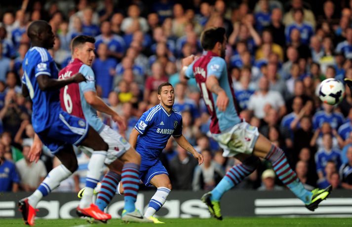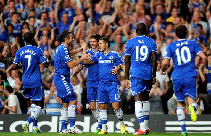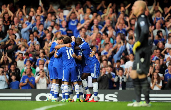 Ivanović tryggði Chelsea öll stigin Óskar Ófeigur Jónsson skrifar 21. ágúst 2013 18:15 Mynd/NordicPhotos/Getty Chelsea hefur fagnað sigri í tveimur fyrstu leikjum sínum á tímabilinu og Jose Mourinho fær því draumabyrjun á Stamford Bridge. Chelsea vann 2-1 sigur á Arsenal-bönunum í Aston Villa á Brúnni í kvöld. Branislav Ivanović tryggði Chelsea öll stigin með laglegu skallamarki 17 mínútum fyrir leikslok en markið átti líklega aldrei að standa auk þess að Serbinn átti jafnvel að vera farinn útaf með rautt spjald. Aston Villa gat fengið eitthvað út úr þessum leik því Andreas Weimann fékk mjög gott færi á lokamínútunum og Aston Villa liðið átti að fá vítaspyrnu í uppbótartíma þegar John Terry fékk boltann í hendina í vítateignum. Chelsea byrjaði af miklum krafti eins og í 2-0 sigrinum á móti Hull um helgina og var komið í 1-0 eftir sex mínútur. Markið skráist sem sjálfsmark Antonio Luna en Brad Guzan, markvörður Aston Villa, varði þá skot Eden Hazard í Luna og í eigið mark. Aston Villa náði óvænt að jafna leikinn á þriðju mínútu í uppbótartíma fyrri hálfleiks þegar Christian Benteke skoraði eftir stoðsendingu frá Gabriel Agbonlahor. Christian Benteke skoraði tvö í 3-1 sigri á Arsenal í fyrstu umferðinni og er því kominn með þrjú mörk. Benteke var hættulegur Branislav Ivanović skoraði sigurmarkið með skalla eftir aukaspyrnu Frank Lampard á 73. mínútu. Það var rangstöðulykt af markinu en það var dæmt gott og gilt. Ivanović hefði líka getað verið farinn útaf með rautt spjald því skömmu áður fékk hann gult spjald eftir viðskipti sín við Christian Benteke. Enski boltinn Mest lesið Uppgjörið: Ísland - Ungverjaland 23-24 | Ísland fer með tvö stig í millirðil Sport Knorr lofaði Alfreð: Enginn egóisti og róaði okkur Handbolti Dagur henti tveimur leikmönnum sínum upp í stúku Handbolti Utan vallar: Ég get ekki meir Handbolti „Besta íslenska landslið sem við höfum mætt“ Handbolti Mikil trú á íslenskum sigri meðal stuðningsmanna Íslands Handbolti Aldrei hlegið jafnmikið og við að horfa á Nablann Körfubolti Átján ára orðin næstfljótust í sögu Íslands Sport Færeyingar úr leik og Danir stigalausir í milliriðil Handbolti City fékk skell í Noregi Fótbolti Fleiri fréttir Leikmaður Liverpool lenti í eltihrelli Vilja sjá þessa stjóra í brúna hjá United Bestu mörkin: Sjáðu glæsilegan hjólhest gríska táningsins „Sumir ungir þjálfarar nú til dags eru hrokafullir“ Benoný til bjargar eftir vandræðalegt sjálfsmark liðsfélaga „Carrick gaf stuðningsmönnum „smjörþefinn“ af Ferguson-tímanum“ Hjólhestaspyrna táningsins tryggði Brighton stig Guéhi genginn til liðs við City „Þetta eru svakaleg kaup“ Sagður fá lengri líflínu „Þegar þú ert ráðinn til Chelsea er bara spurning hvenær þú verður rekinn“ Aston Villa mistókst að höggva í forskot Arsenal Útivallarófarir Newcastle halda áfram „Ekki hrifinn af bauli eigin stuðningsmanna“ Íhuga að reka Glasner eftir reiðikastið Sjáðu hvernig United vann City og öll mörkin úr enska í gær Mætti brjálaður í viðtal og hjólaði í stjórnina Pirrandi kvöld fyrir topplið Arsenal í Skírisskógi Dagar Frank hjá Tottenham taldir? Benoný skoraði sigurmark Stockport Kærkominn sigur í fyrsta deildarleik Rosenior með Chelsea Víti í súginn í fjórða jafntefli Liverpool í röð Markaskorarinn Mbeumo: „Old Trafford var ótrúlegur í dag“ Draumabyrjun hjá Carrick Alveg sama hvað Roy Keane hefur að segja Slot segir Salah enn vera mjög mikilvægan fyrir Liverpool Glasner hættir með Crystal Palace í vor og Guehi fer nú í janúar Félagsfærni og persónuleiki skiptir miklu máli þegar Tuchel velur HM-hópinn Nýr þjálfari Chelsea minnti leikmenn á að þvo sér um hendur Engin mistök þegar „rangstöðumark“ Wirtz var dæmt gilt Sjá meira