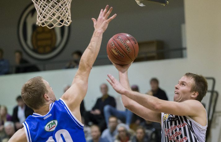 Sjö leikir fóru fram í Lengjubikar karla í körfubolta í kvöld en körfuboltatímabilið er komið aftur að stað eftir sumarfrí. Lengjubikarinn fer að þessu sinni allur fram áður en Domninos-deildin byrjar í október. Vilhelm Gunnarsson, ljósmyndari Vísis og Fréttablaðsins, fór í DHL-höll þeirra KR-inga og náði þessum skemmtilegu myndum hér fyrir ofan. Snæfell og KR hafa bæði unnið tvo fyrstu leiki sína í Lengjubikarnum en þau eru saman í D-riðli. Skallagrímur og Haukar hafa einnig unnið tvo fyrstu leiki sína en Borgnesingar eru að byrja tímabilið af krafti og fylgdu á eftir sigri á Hamar með því að vinna KFÍ í kvöld, 86-81.Landsliðsmiðherjinn Stefán Karel Torfason var með 23 stig og 16 fráköst fyrir Snæfell í 123-73 sigri á Breiðabliki. Jón Ólafur Jónsson skoraði 19 stig á 16 mínútum og Finnur Atli Magnússon var með 18 stig. Sigurður Vignir Guðmundsson skoraði 20 stig fyrir Breiðablik.Brynjar Þór Björnsson skoraði 23 stig í 84-78 sigri KR á ÍR í DHL-höllinni en Martin Hermannsson var með 20 stig og 5 stoðsendingar fyrir Vesturbæjarliðið. Pavel Ermolinskij lék sinn fyrsta leik með KR síðan 2011 og var með 14 stig, 7 fráköst og 7 stolna bolta. Terry Leake skoraði 20 stig fyrir ÍR-liðið.Nýliðar Hauka hafa unnið tvo fyrstu leiki sína í Lengjubikarnum en liðið vann 83-81 sigur á Þór í kvöld. Haukar voru með örugga forystu en Þórsarar voru nálægt því að stela sigrinum í lokin. Davíð Páll Hermannsson skoraði 26 stig fyrir Hauka en Þorsteinn Már Ragnarsson skoraði 17 stig fyrir Þór.Íslandsmeistarar Grindavíkur áttu ekki í miklum vandræðum með nýliða Vals í Röstinni og unnu öruggan 88-51 sigur. Jóhann Árni Ólafsson skoraði 16 stig fyrir Grindavík og Sigurður Gunnar Þorsteinsson var með 11 stig. Benedikt Blöndal, Rúnar Ingi Erlingsson og Oddur Birnir Pétursson skoruðu allir átta stig fyrir Val.