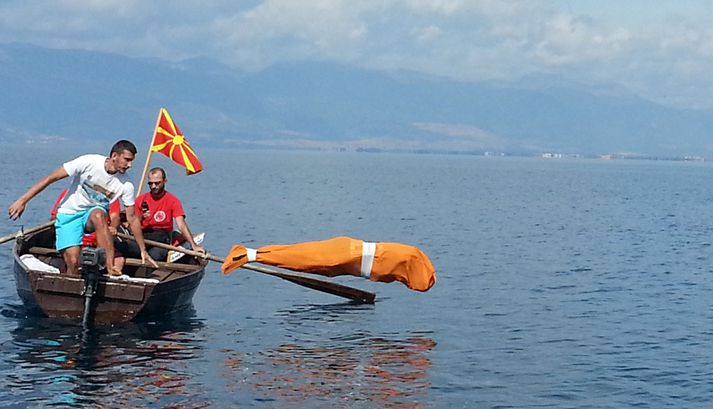 Búlgarskur maður synti tvo kílómetra bundinn inn í poka og vonast þar með til að hafa sett nýtt heimsmet sem verður skráð í Heimsmetabók Guinness. Jane Petkov var í tvær klukkustundir og 45 mínútur að synda í vatninu Ohrid í Makedónía. Petkov var bundinn með hendur að líkamanum og synti með svipaðri aðferð og höfrungar. Þessi 57 ára Búlgari fór ekki hratt yfir því meðalhraðinn var 0,7 km/klst. „Mér var mjög kalt fyrsta klukkutímann en eftir það var þetta ekkert mál. Ef vatnið hefði verið heitara, þá hefði ég jafnvel synt 10 kílómetra,“ hefur BBC eftir Petkov. Allar helstu upplýsingar um sundið voru skráðar og fastlega búist er við því að sundið verði skráð í Heimsmetabók Guinness. Ekki hefur komið nein tilkynning frá forsvarsmönnum Heimsmetabókarinnar enn sem komið er.Jane Petkov var bundinn inn í poka og synti tvo kílómetra.Mynd/AFP